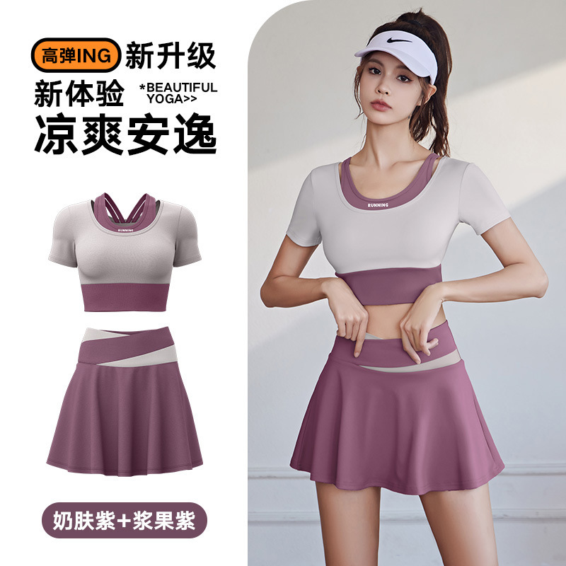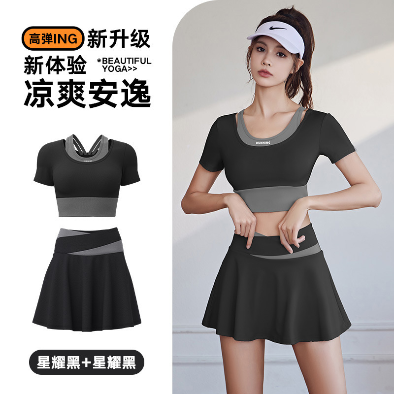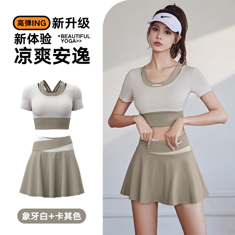 聚衣堂假两件短裙防走光短裤裸感紧身运动短裙跑步健身套装