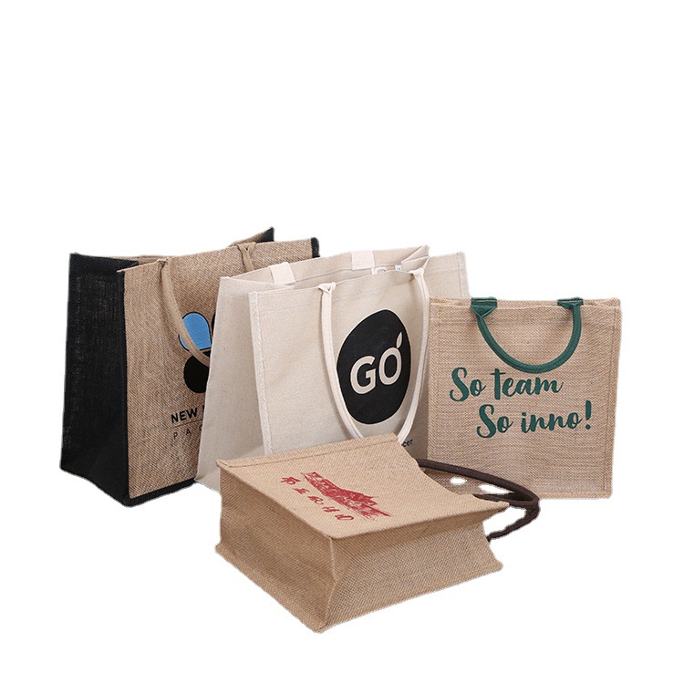 防水覆膜麻布袋定 制 亚麻广告礼品袋印LOGO手提购物袋50个起批发