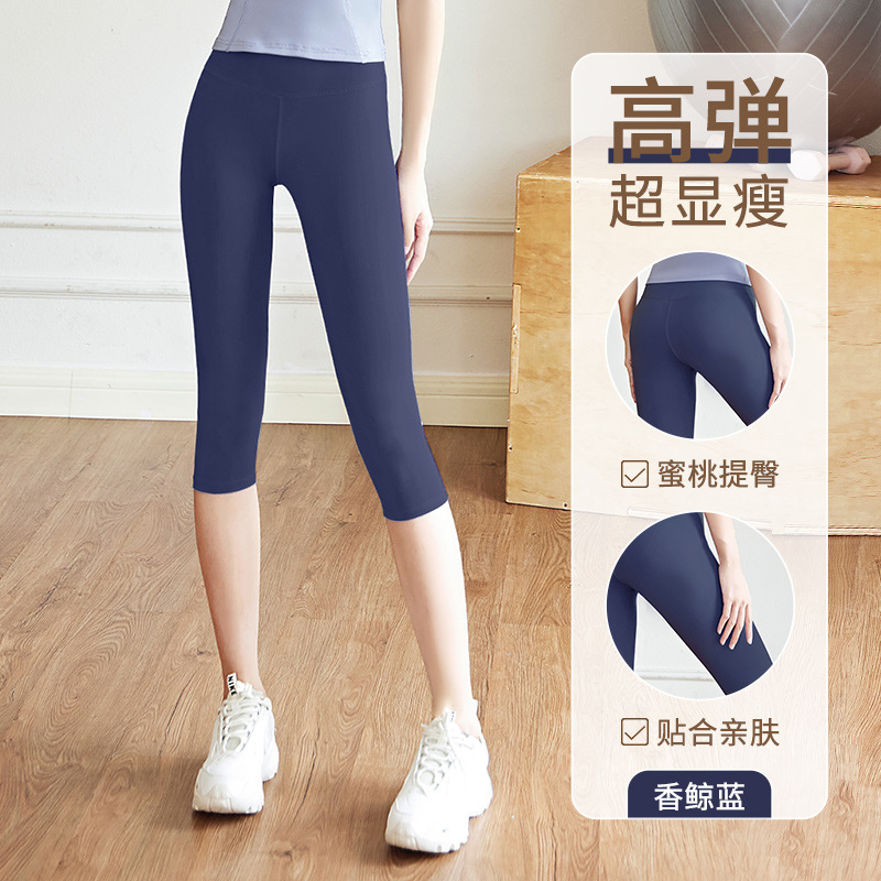 聚衣堂七分健身裤女高腰弹力运动提臀短裤瑜伽蜜桃臀紧身裤