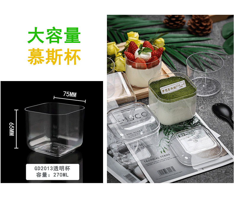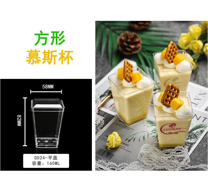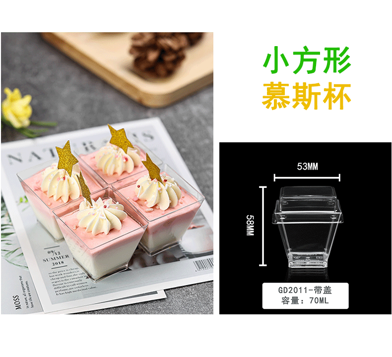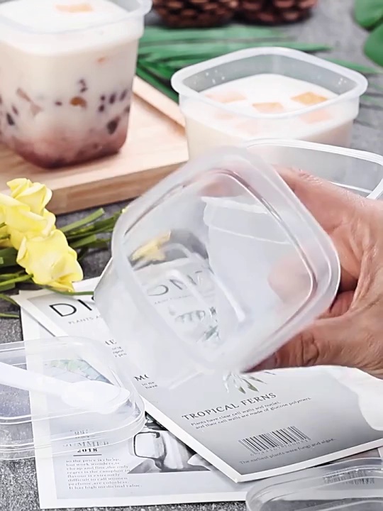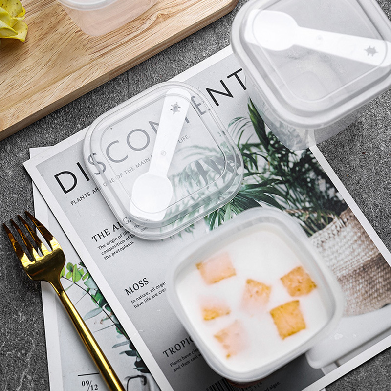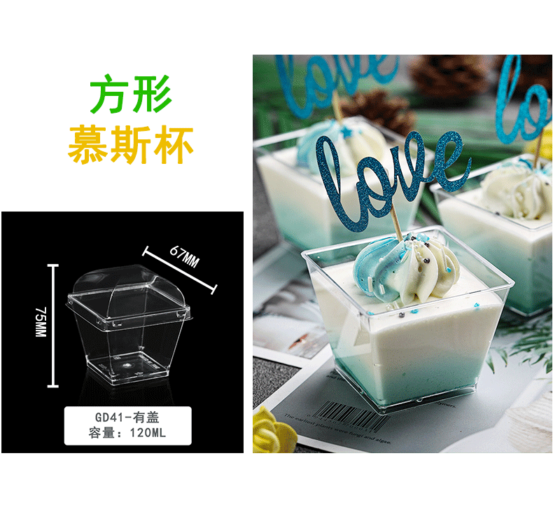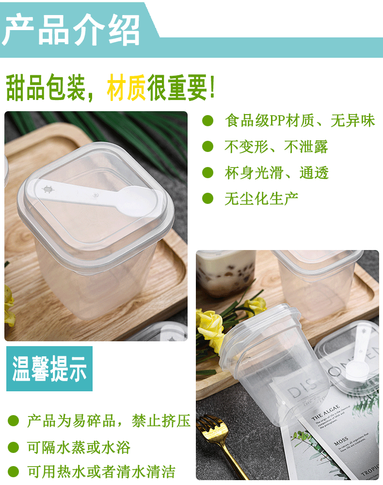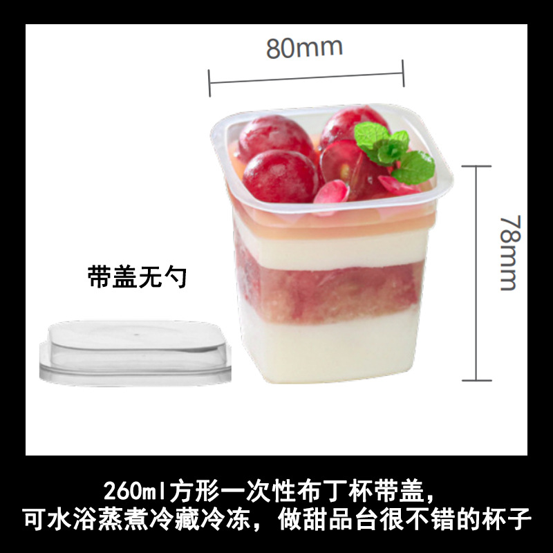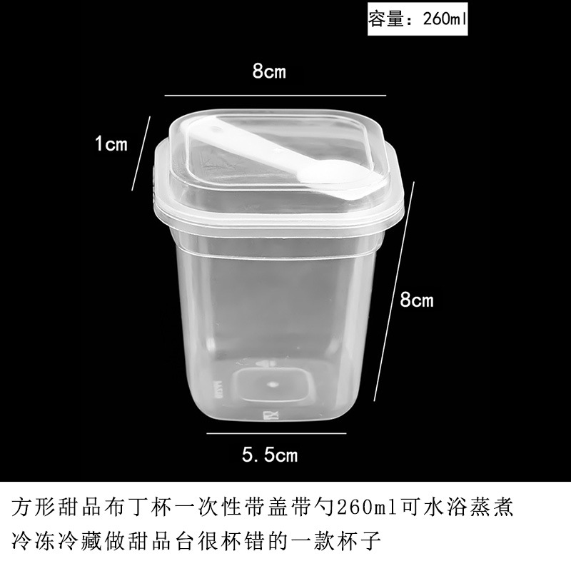 布丁杯子一次性带盖带勺方形塑料酸奶甜品杯双皮奶杯子布丁专用杯