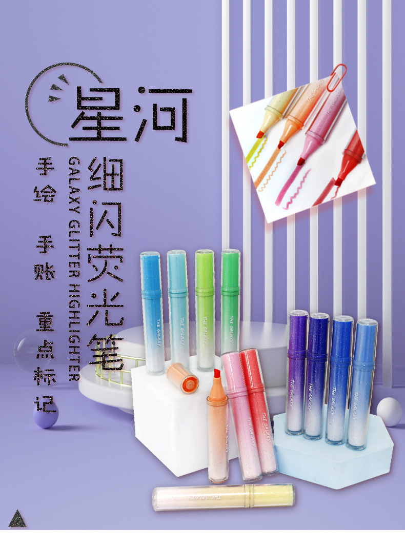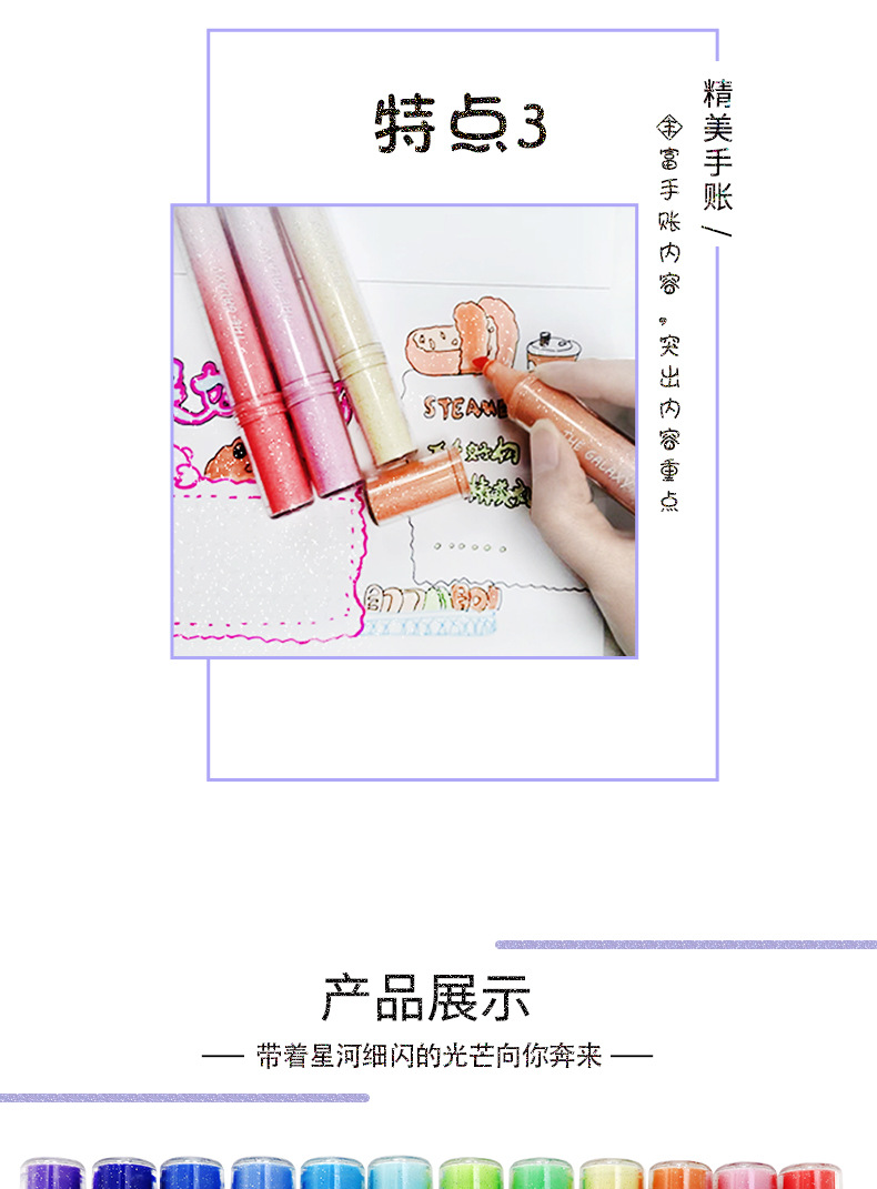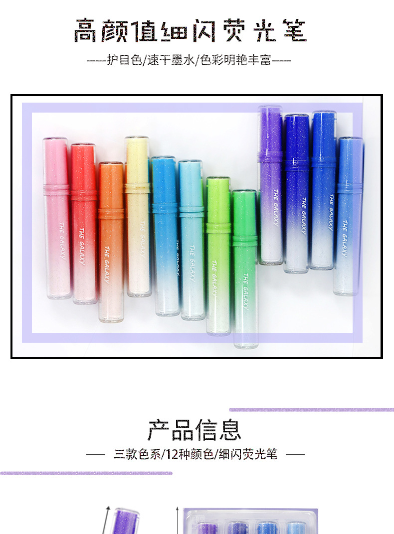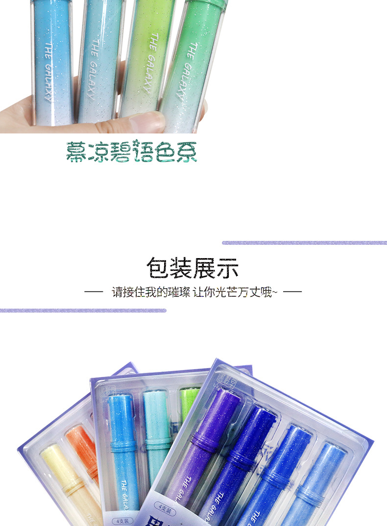 星河系列闪光笔涂鸦细闪笔手账标记笔高颜值梦幻色荧光笔展示架
