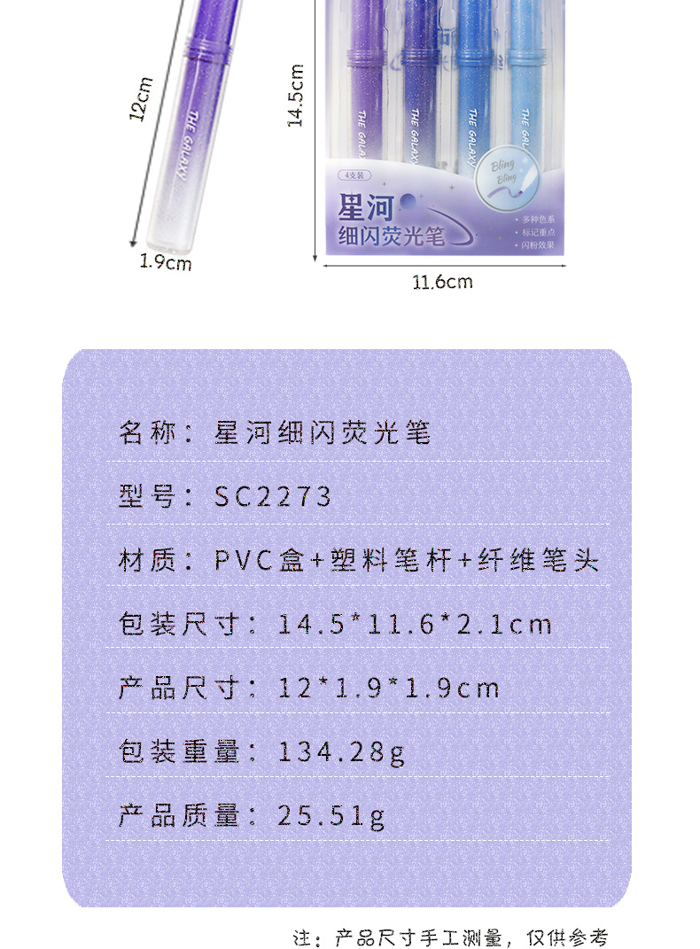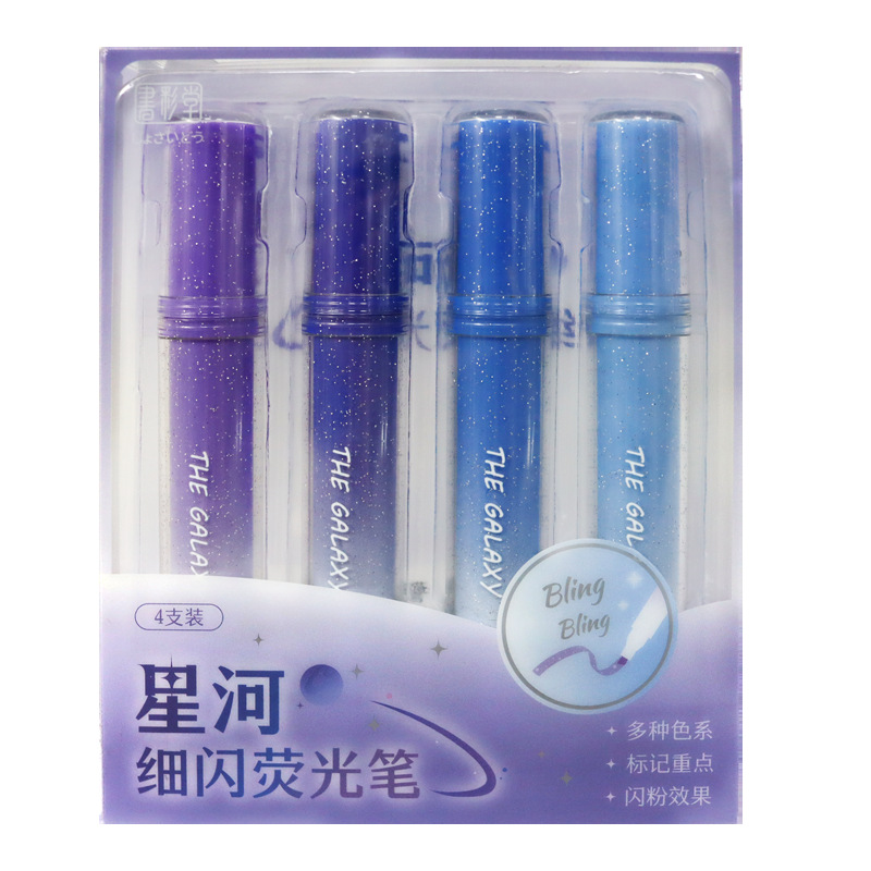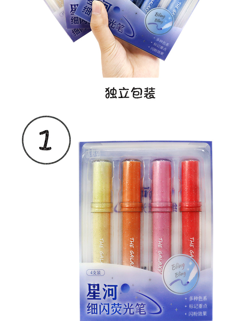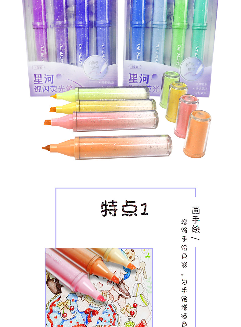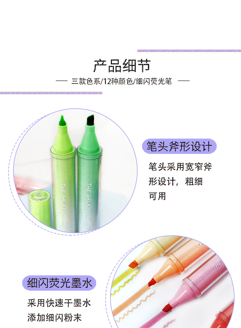 星河系列闪光笔涂鸦细闪笔手账标记笔高颜值梦幻色荧光笔展示架
