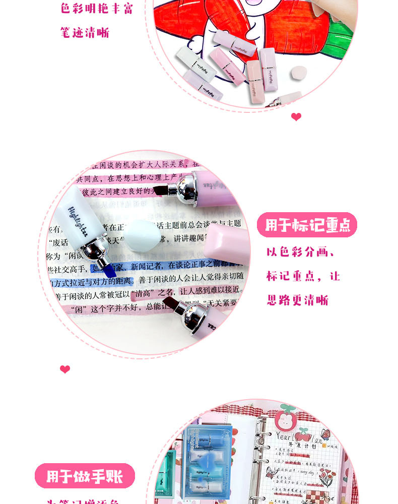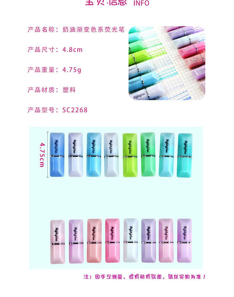 迷你款蓝牙荧光笔奶油渐变色重点标记笔高颜值卡通荧光笔