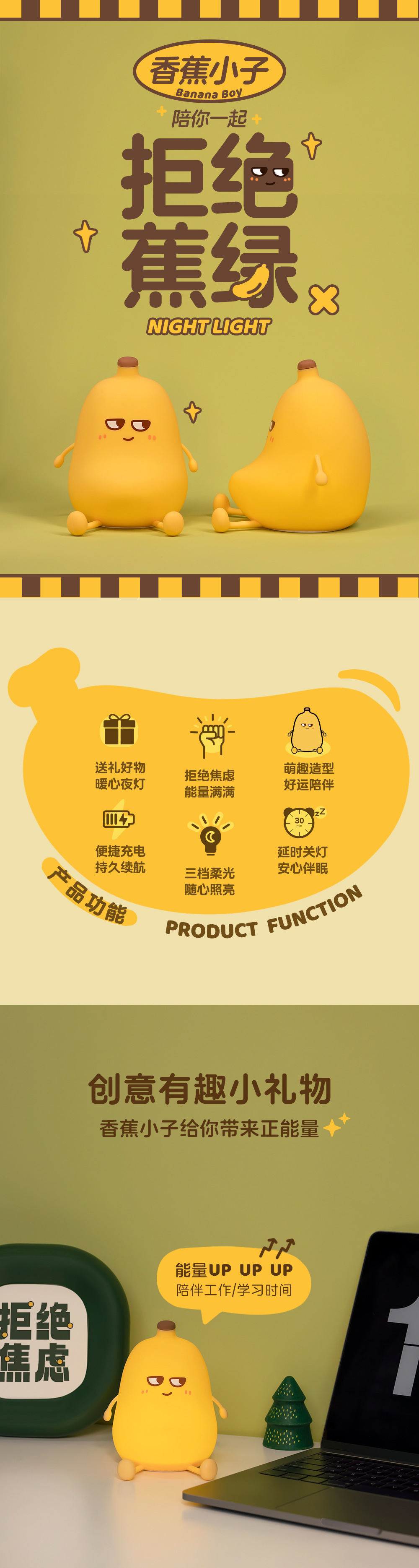 外贸专供新品香蕉小子拍拍灯卧室床头桌面摆件氛围灯小夜灯