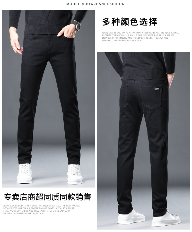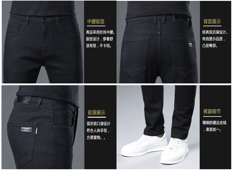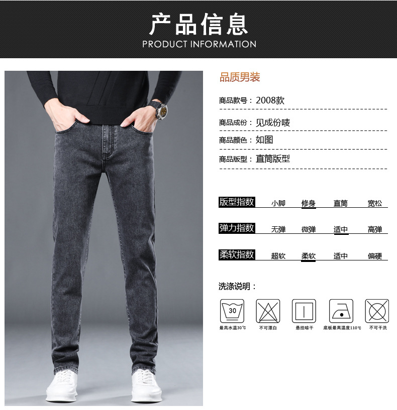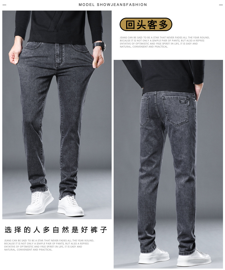 夏季薄款黑色牛仔裤男韩版修身小直筒中腰弹力烟灰色柔软休闲裤男
