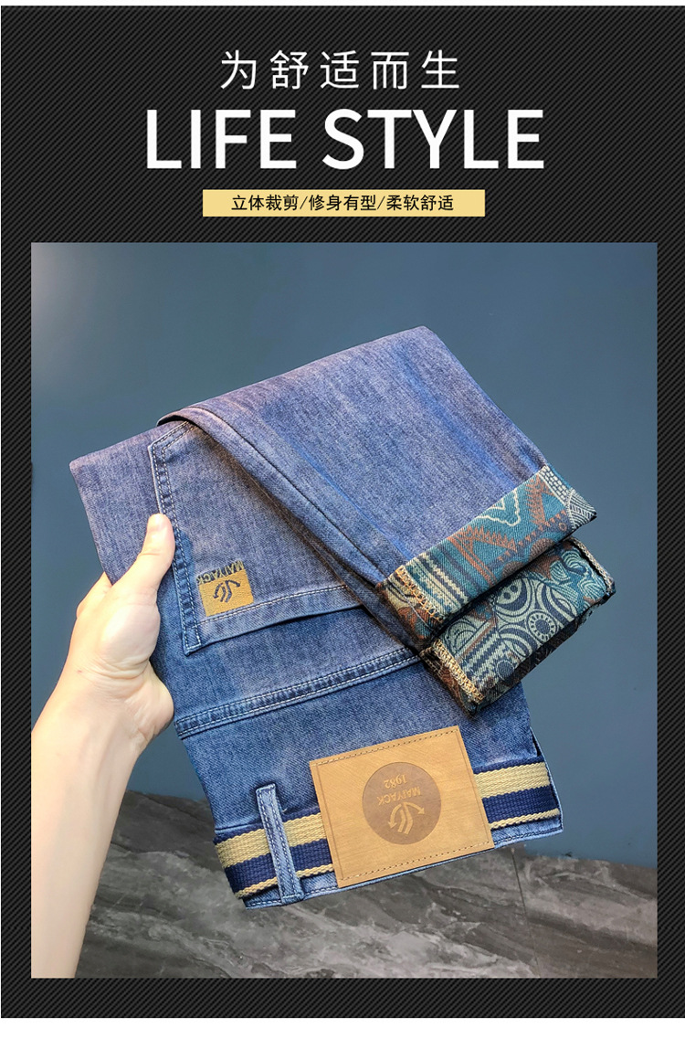 轻奢潮流男士牛仔裤韩版修身男牛仔裤子高端时尚百搭弹力休闲直筒