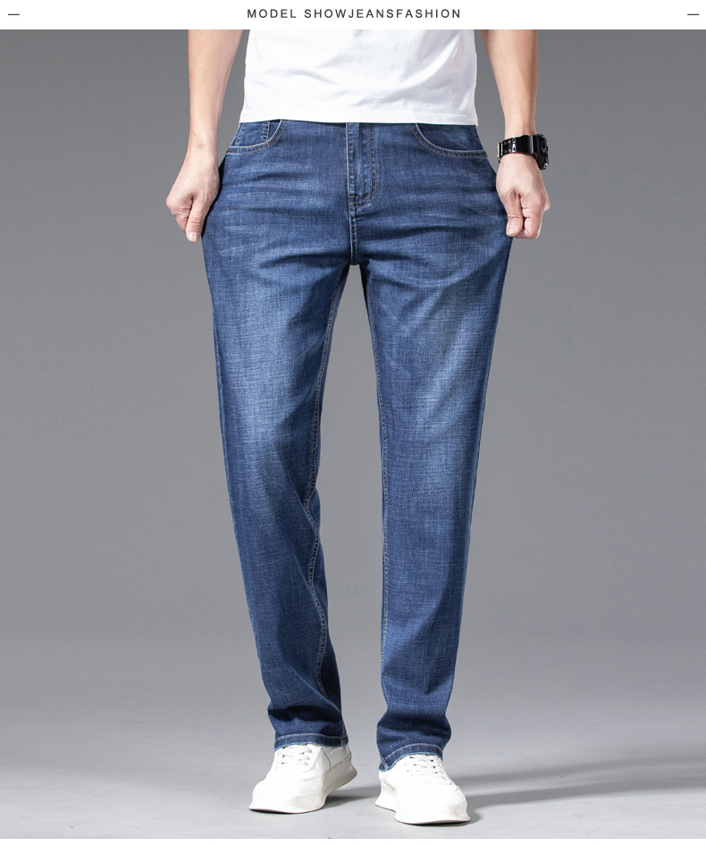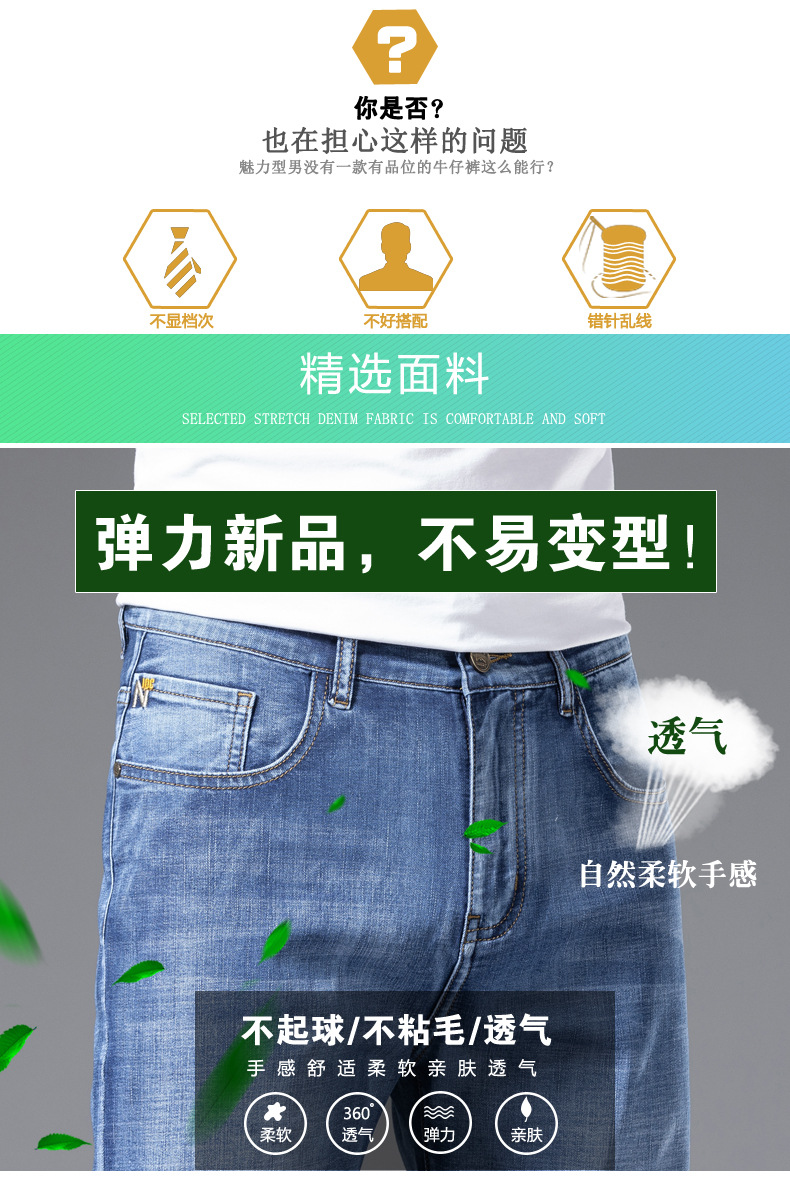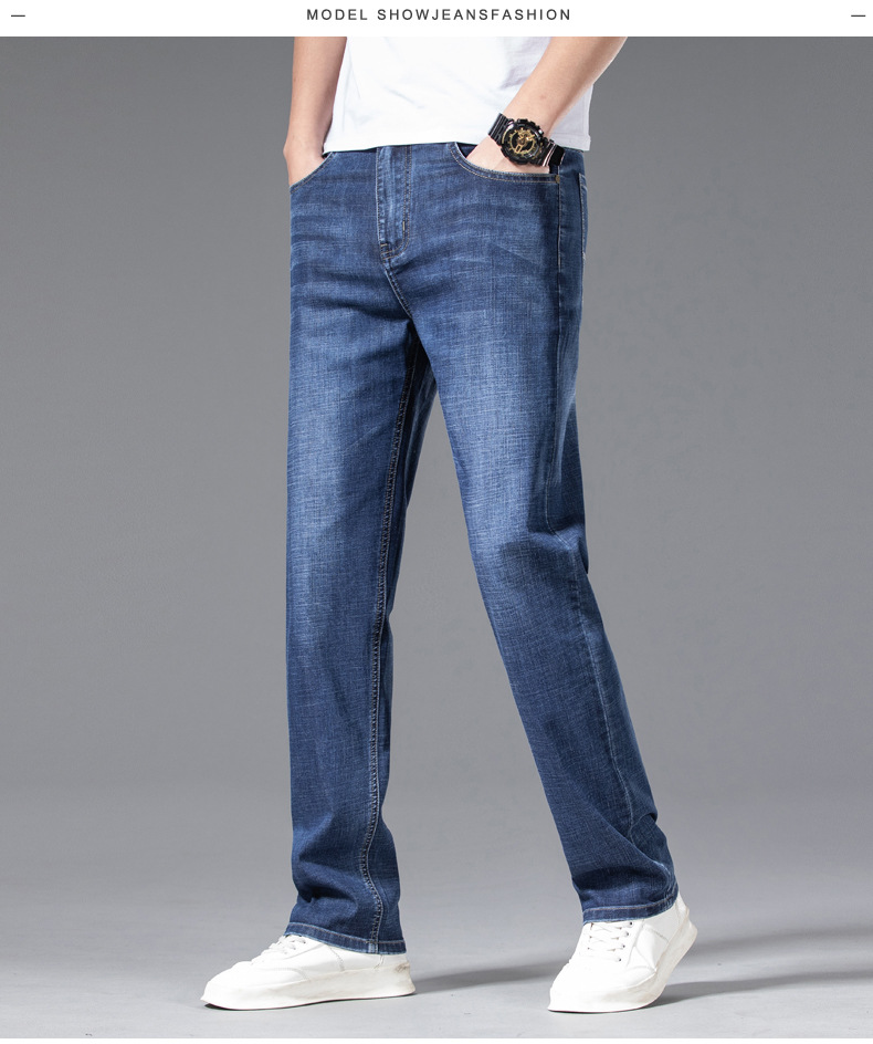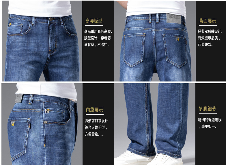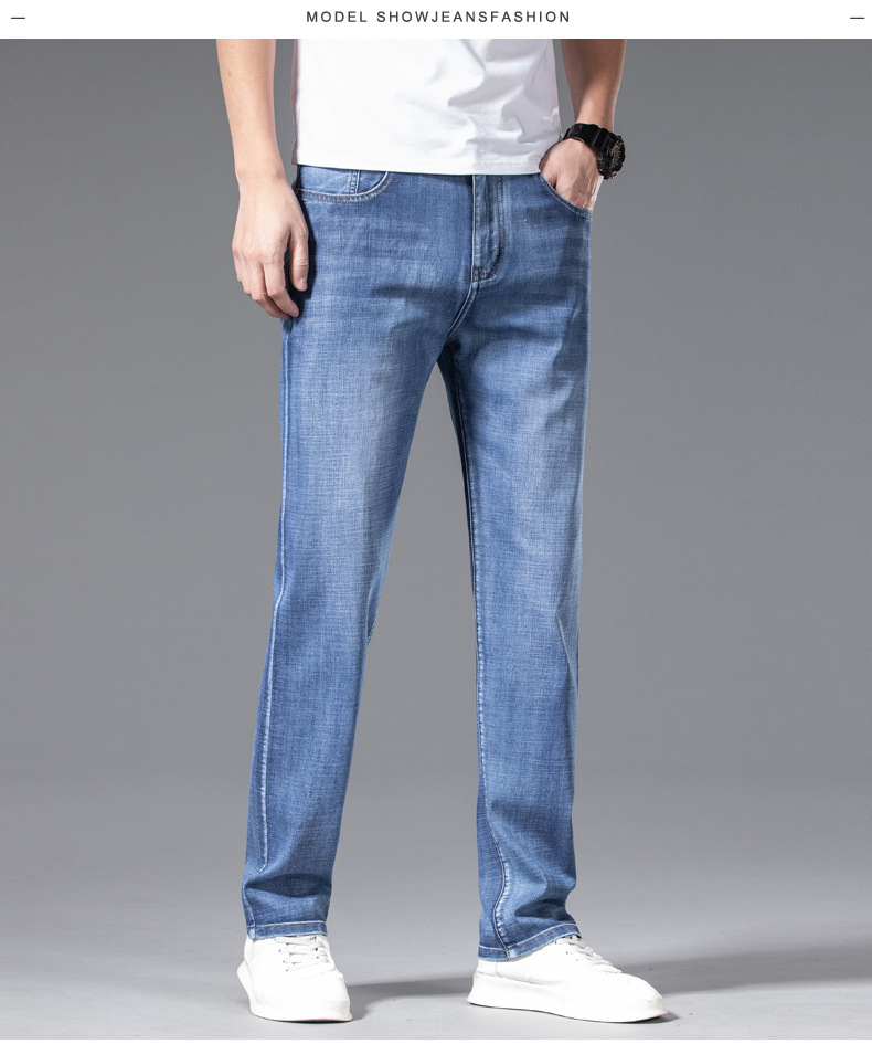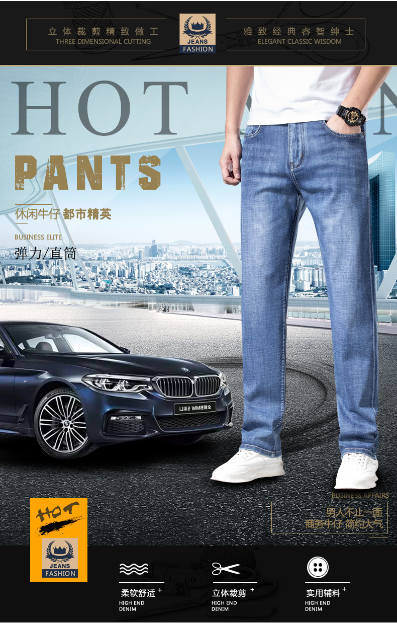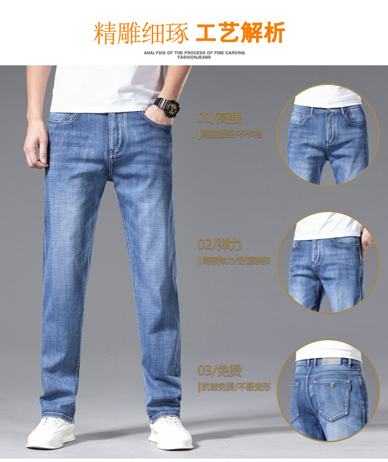 夏季新品弹力宽松修身薄款柔软合体高品质小直筒牛仔裤男装长裤子