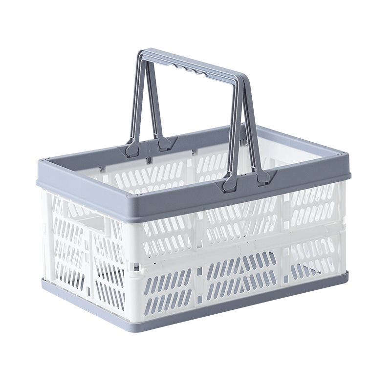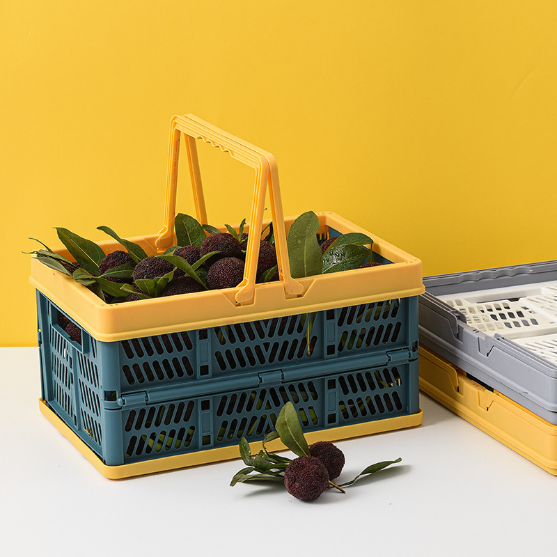 可折叠收纳筐购物手提篮水果蔬菜收纳框户外野餐篮塑料厂家批发