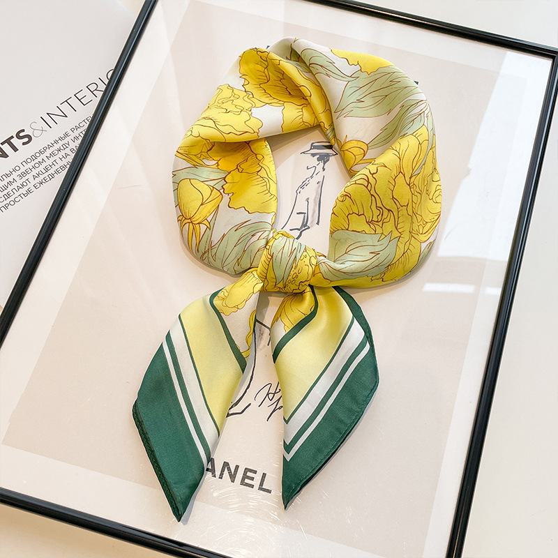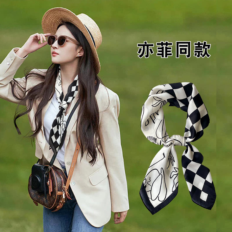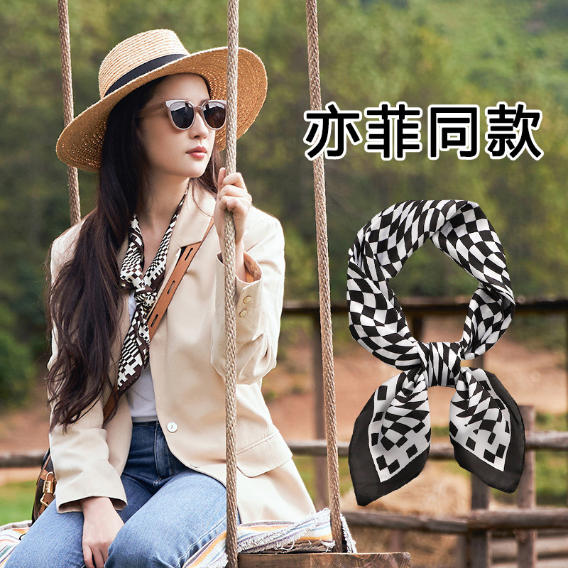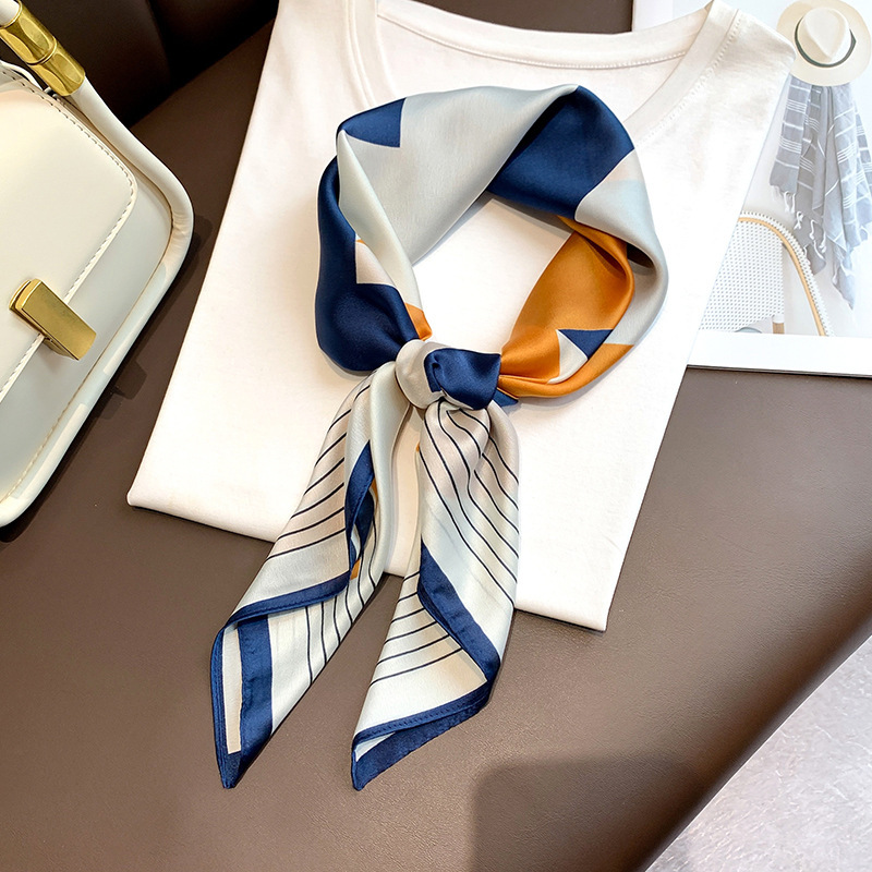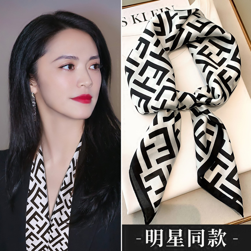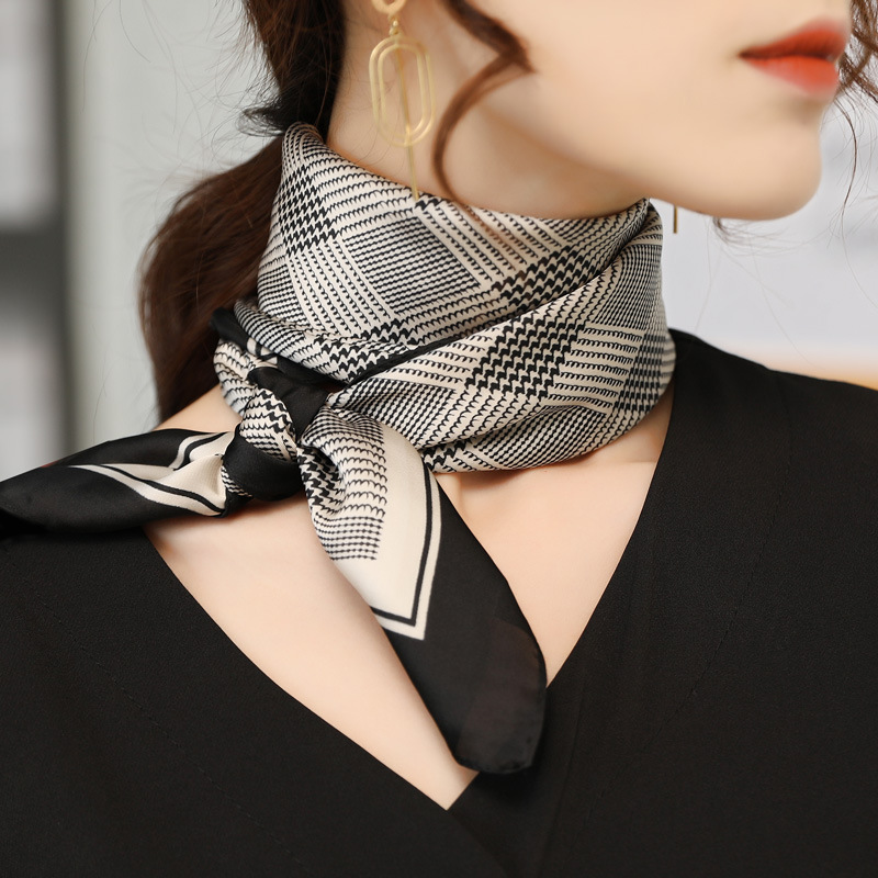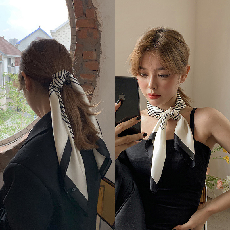 黑白条纹小方巾丝巾女春秋夏季搭配衬衫职业装饰护颈围脖子薄围巾
