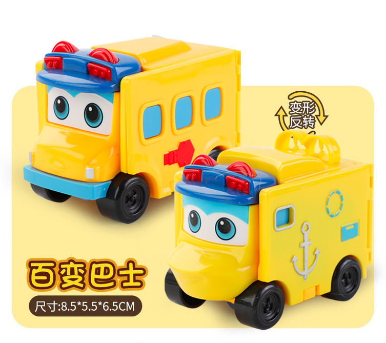 跨境百变校巴歌德可变形套装反反转益智汽车玩具儿童早教车