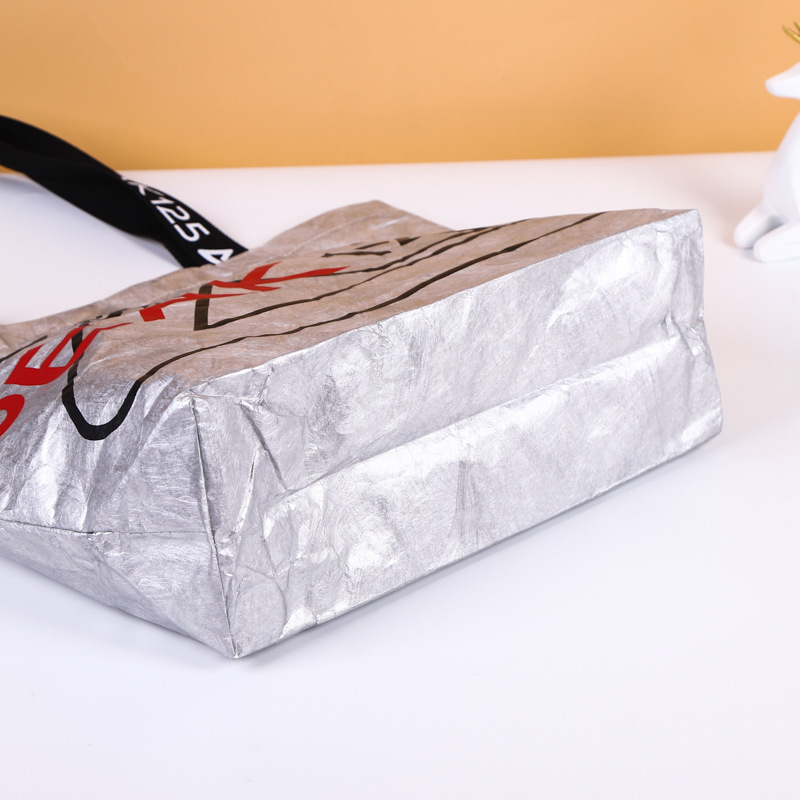 2021年印刷字母杜邦纸手提袋时尚车缝单肩包揉纹手拎袋可定 制