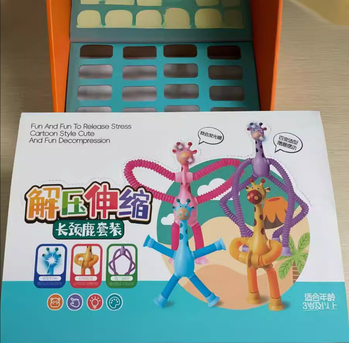 跨境发光百变吸盘长颈鹿伸缩管卡通拉伸管长颈鹿益智新奇解压玩具