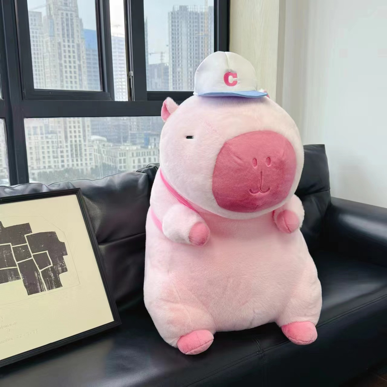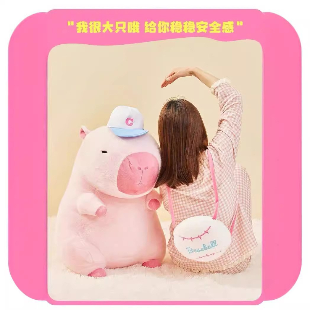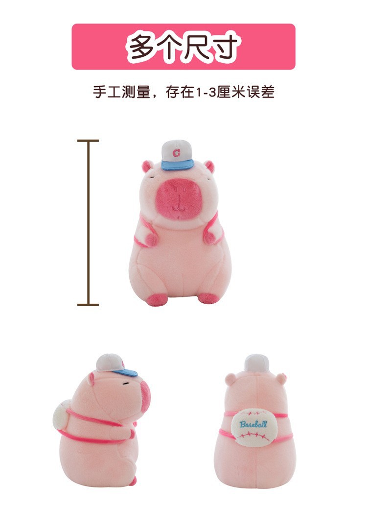 新款卡皮巴拉棒球运动款玩偶粉色水豚毛绒玩具接订单量大可谈