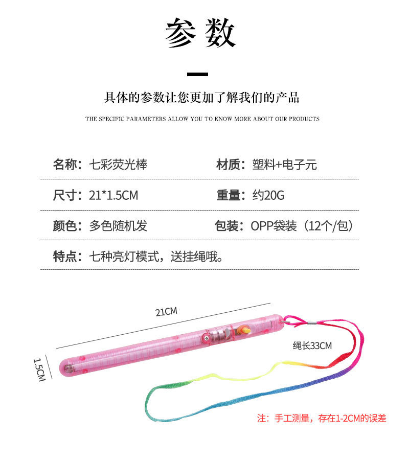 大号透明闪光棒 七彩荧光棒水波棒 带绳棒子 演唱会地摊发光玩具