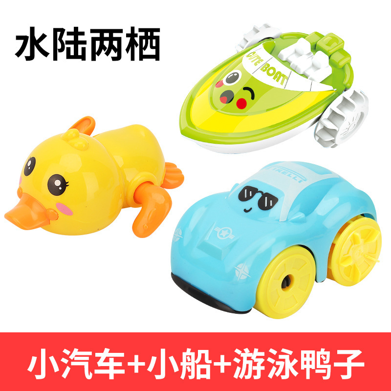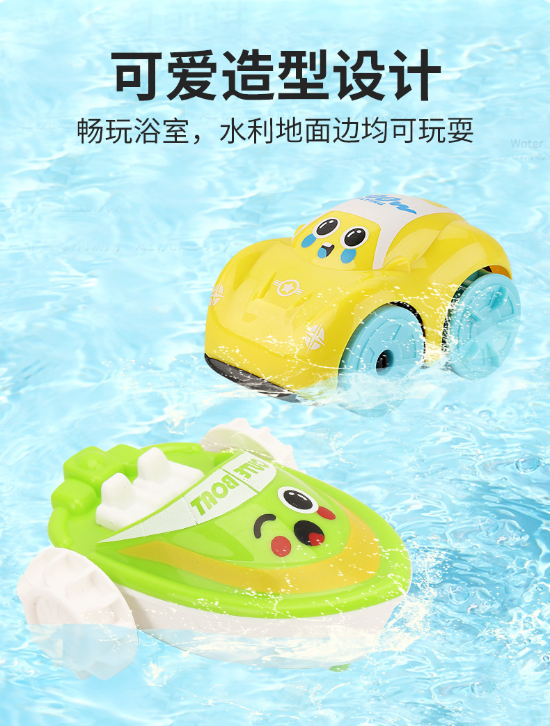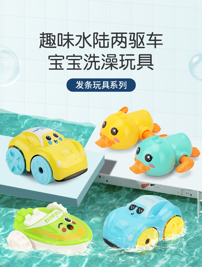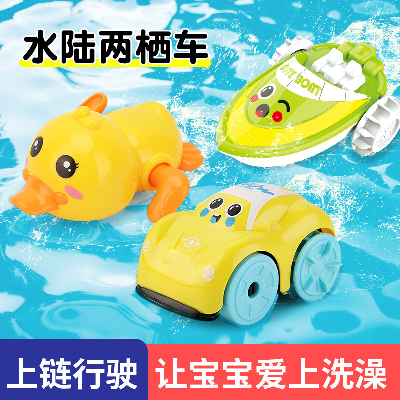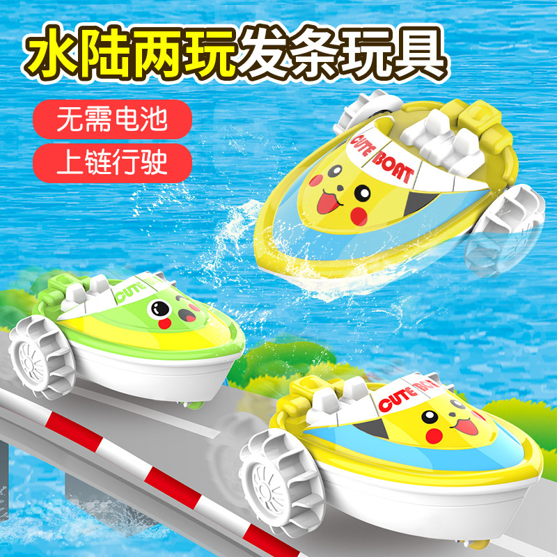 儿童洗澡小玩具上链发条水陆两用小船宝宝浴室洗澡戏水玩具小快艇