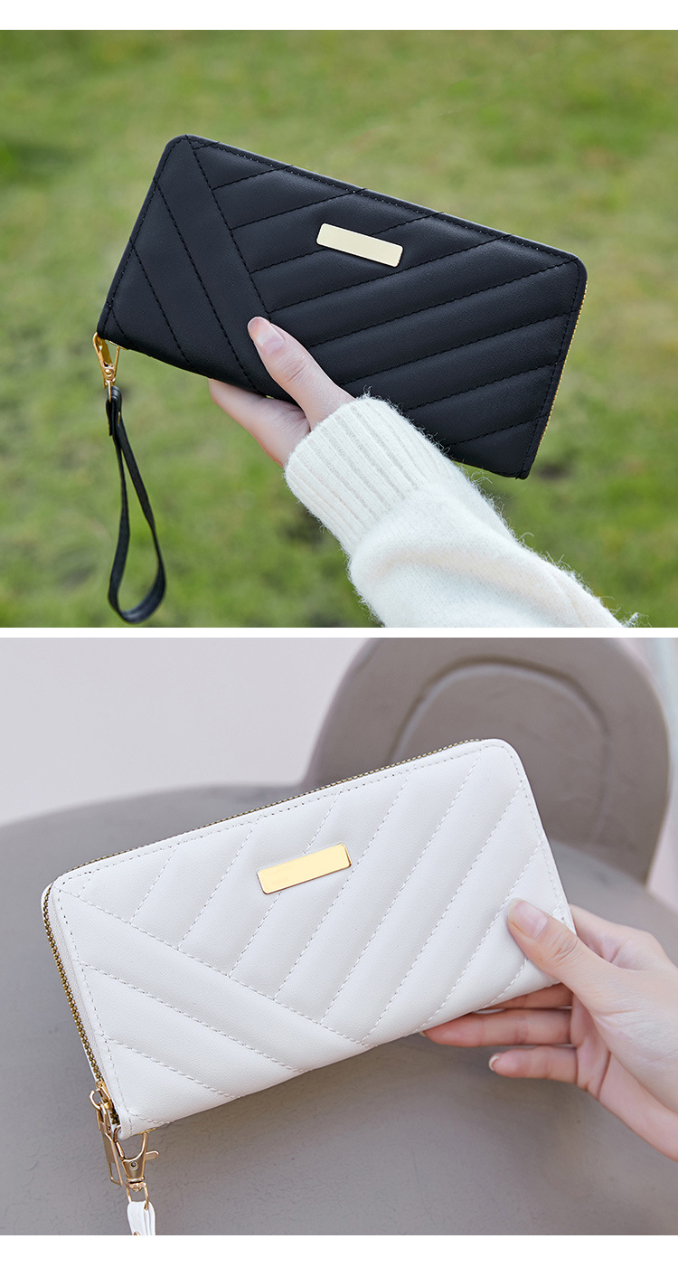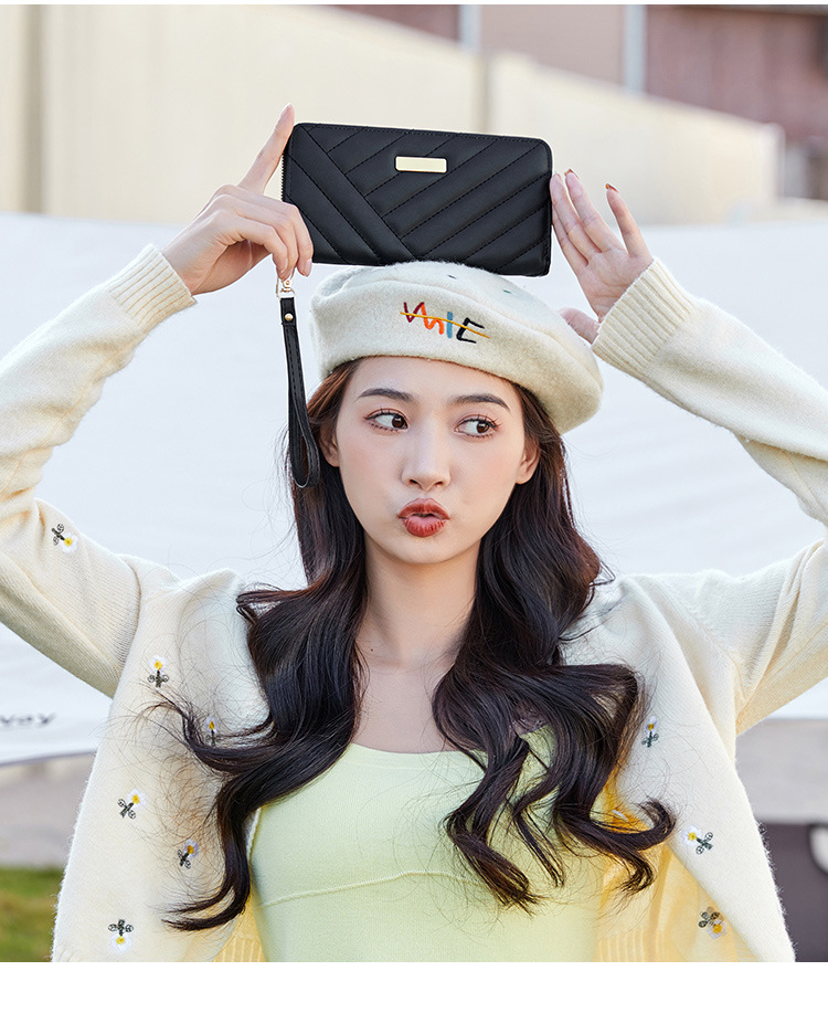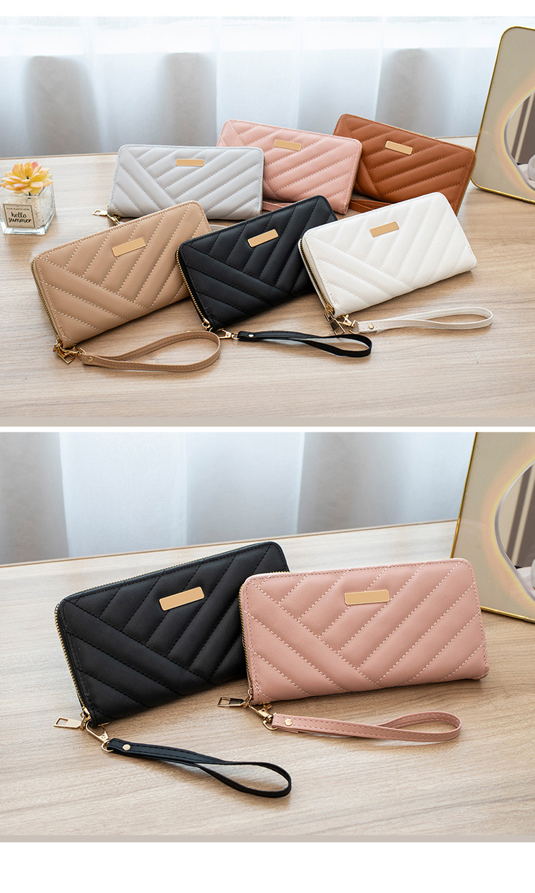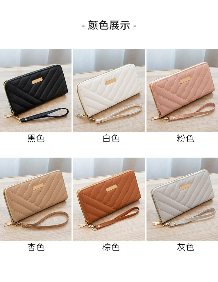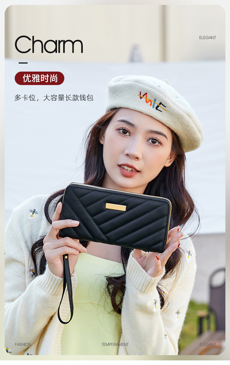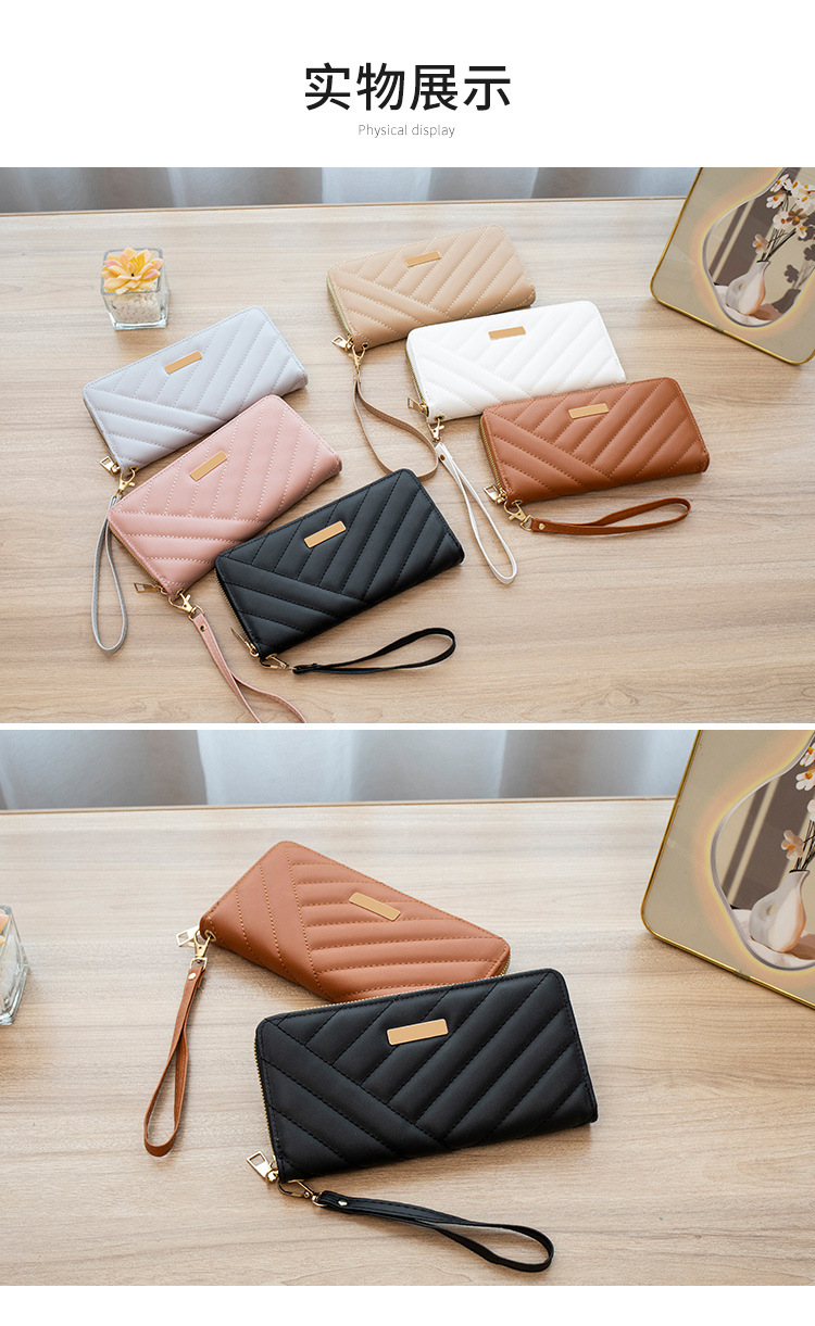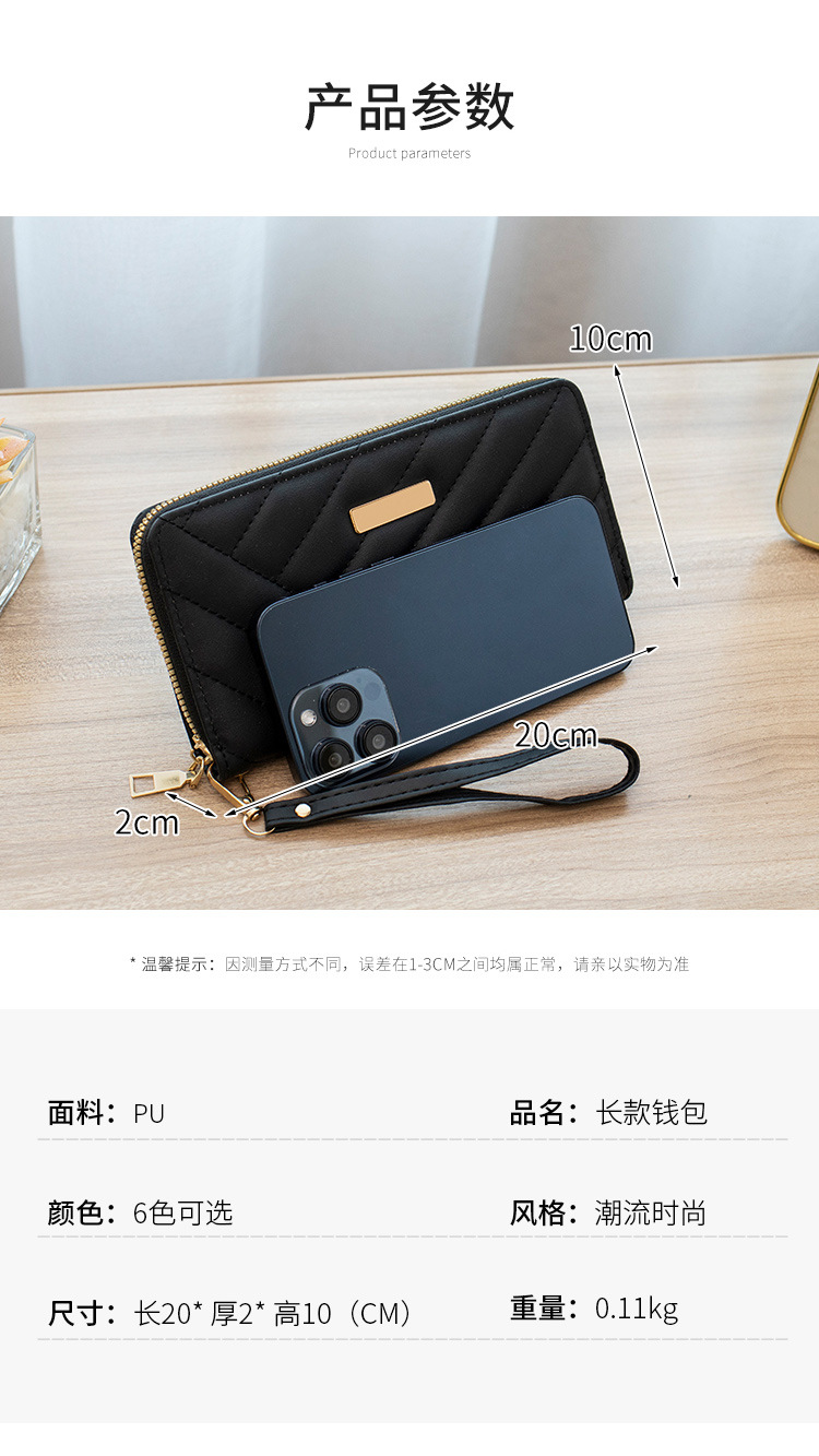 女士长款单拉钱包2023新款斜纹绣花铁片手拿零钱包休闲包一件代发