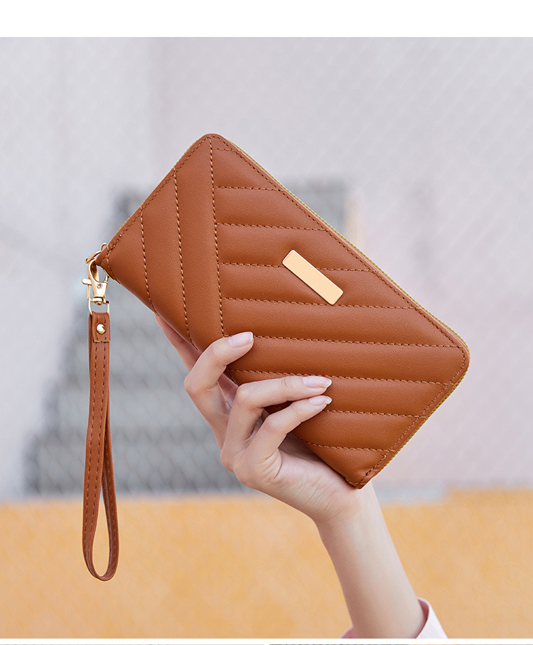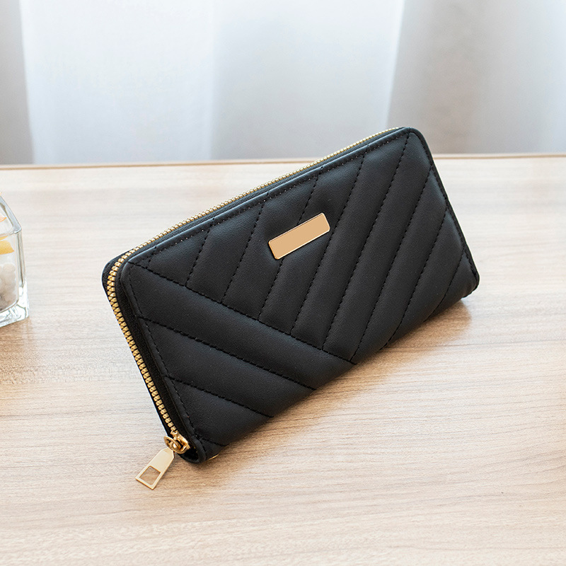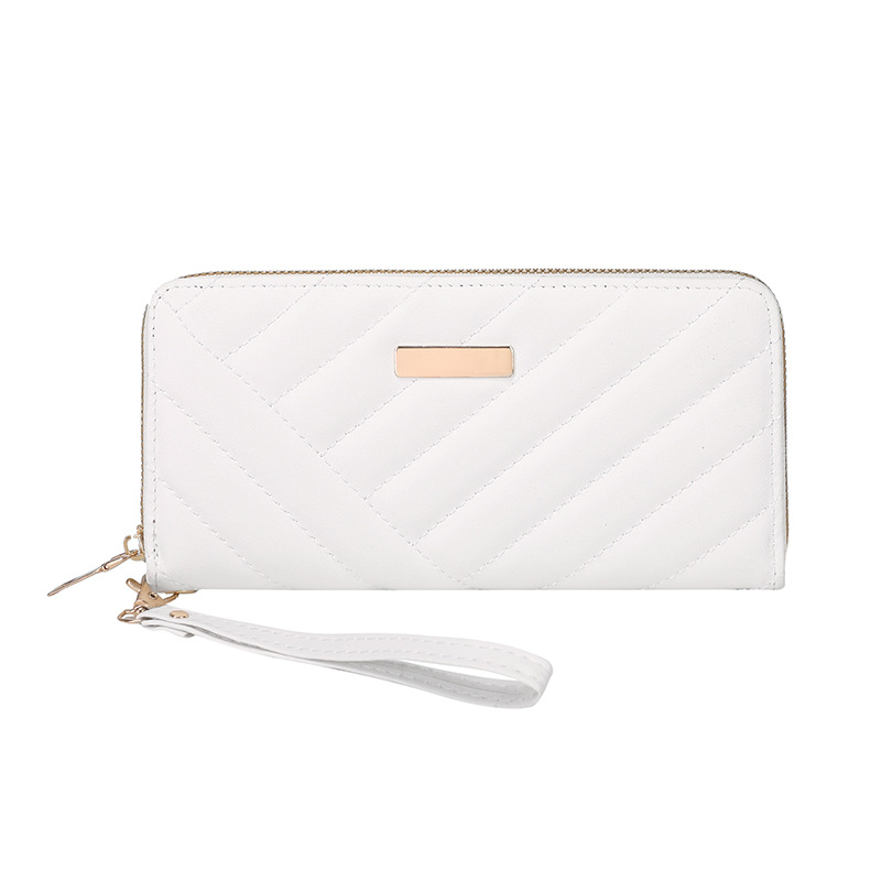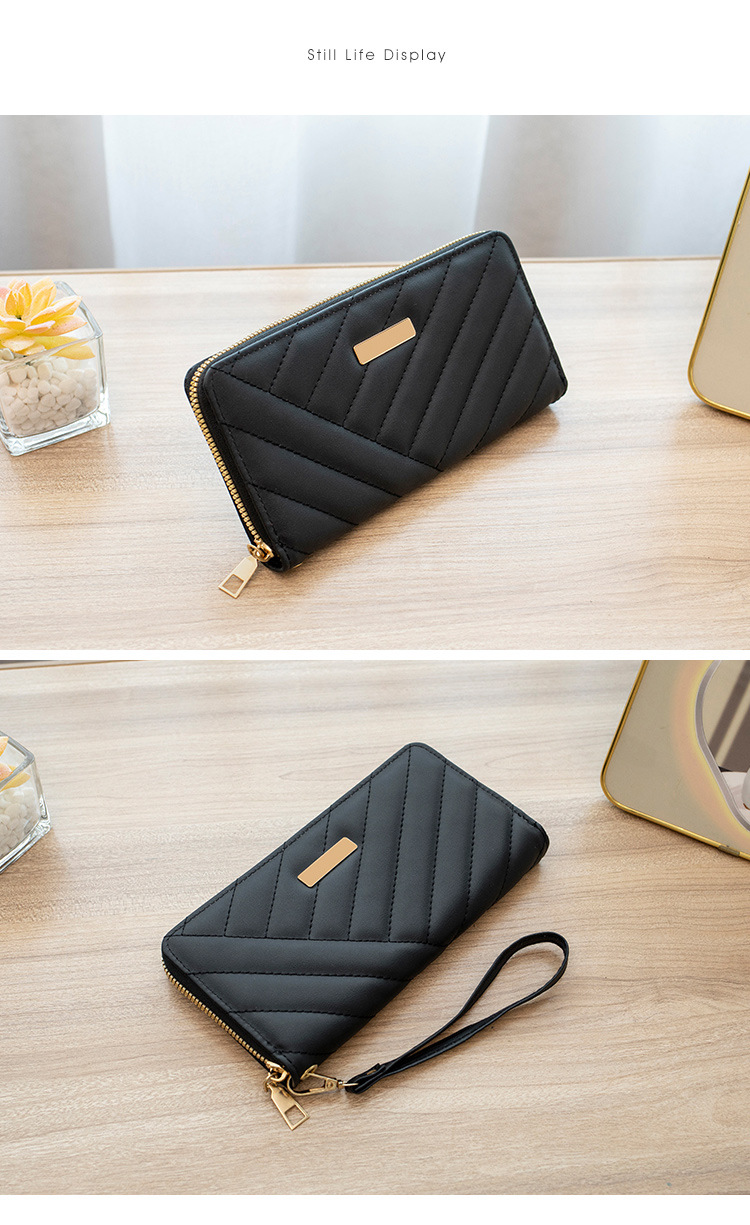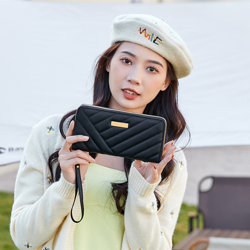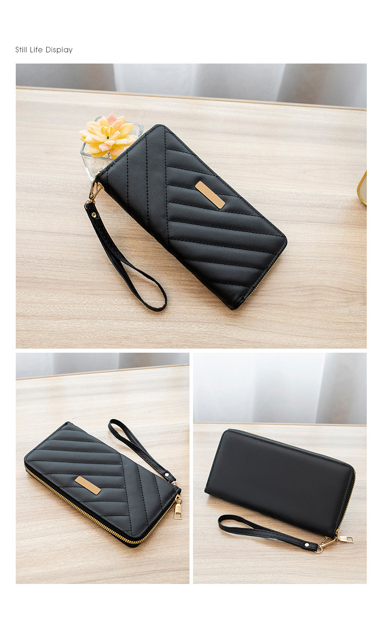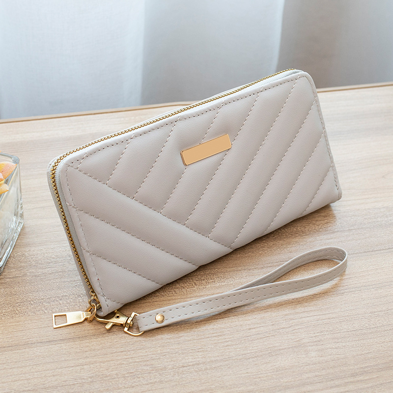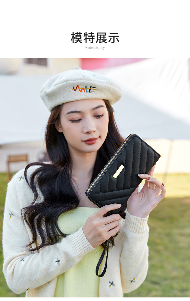 女士长款单拉钱包2023新款斜纹绣花铁片手拿零钱包休闲包一件代发