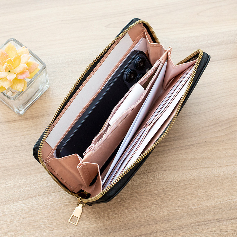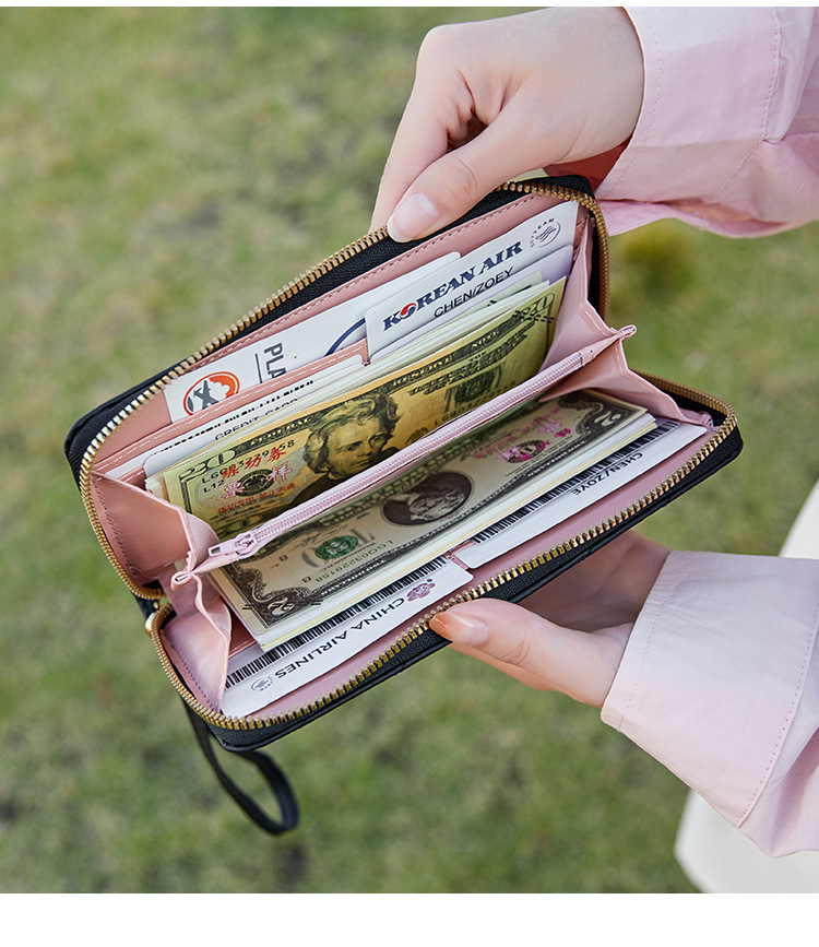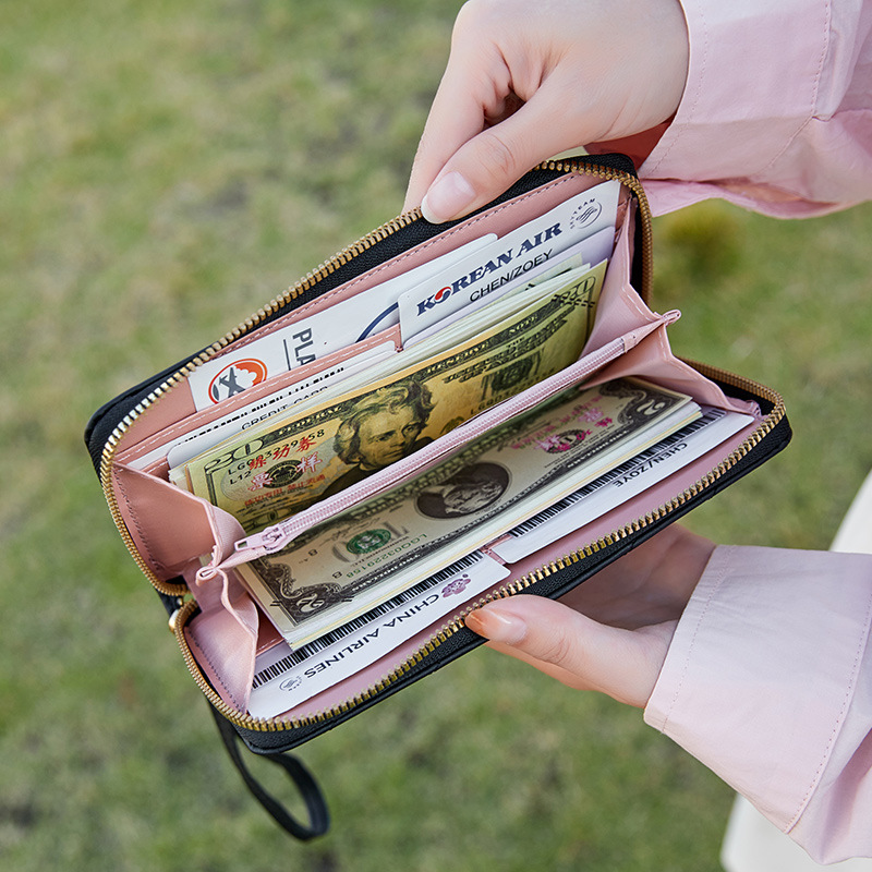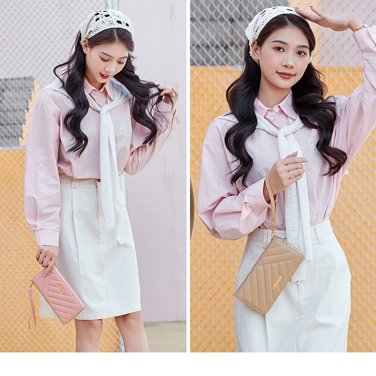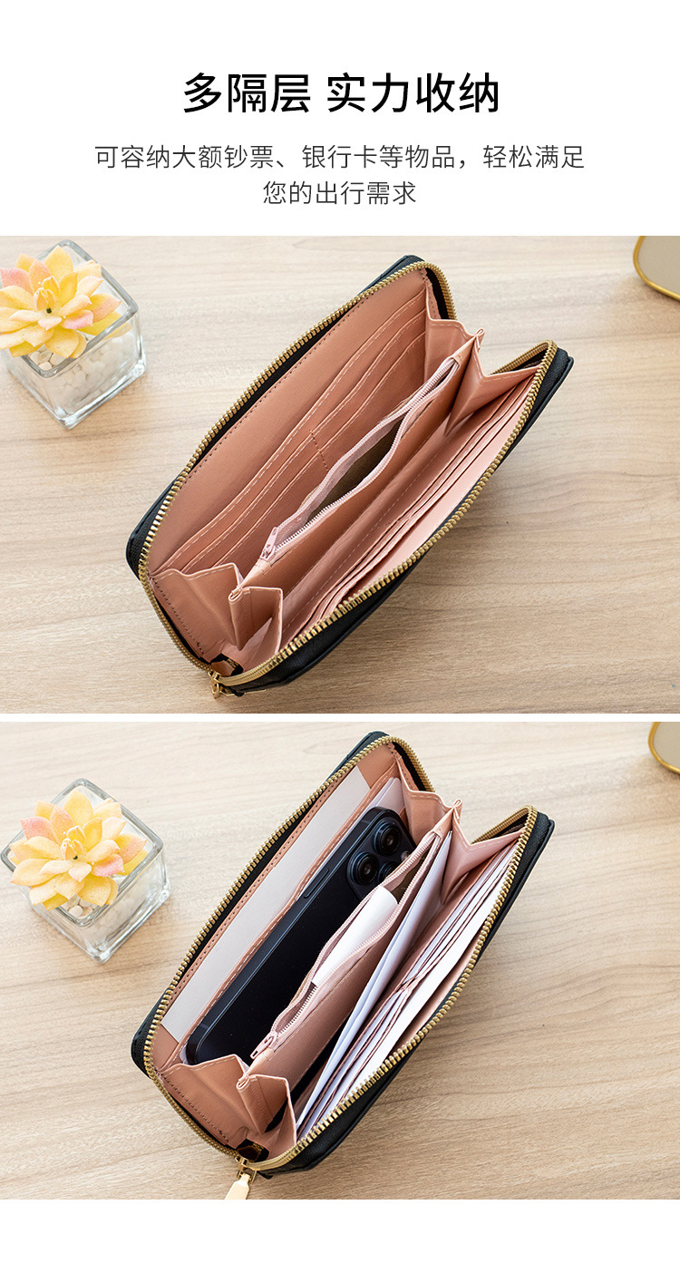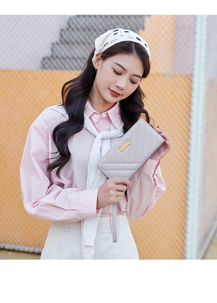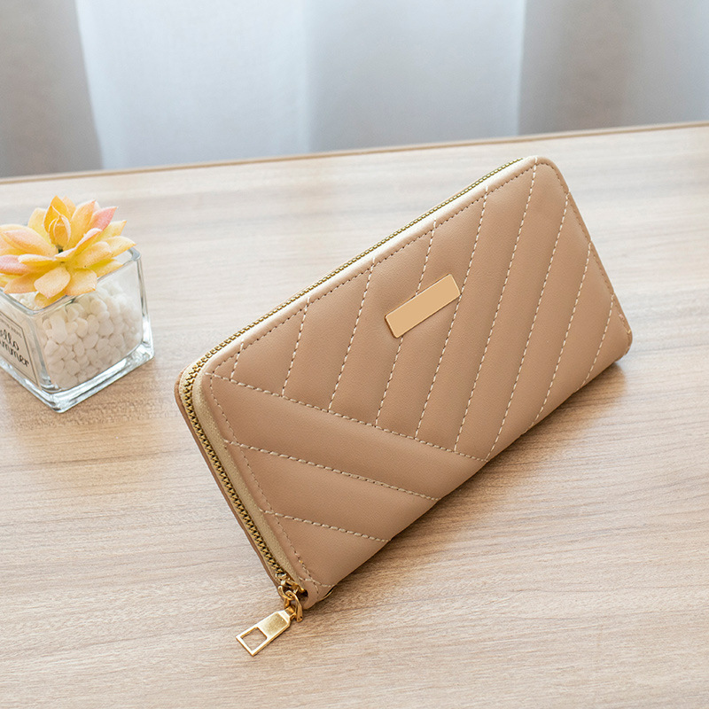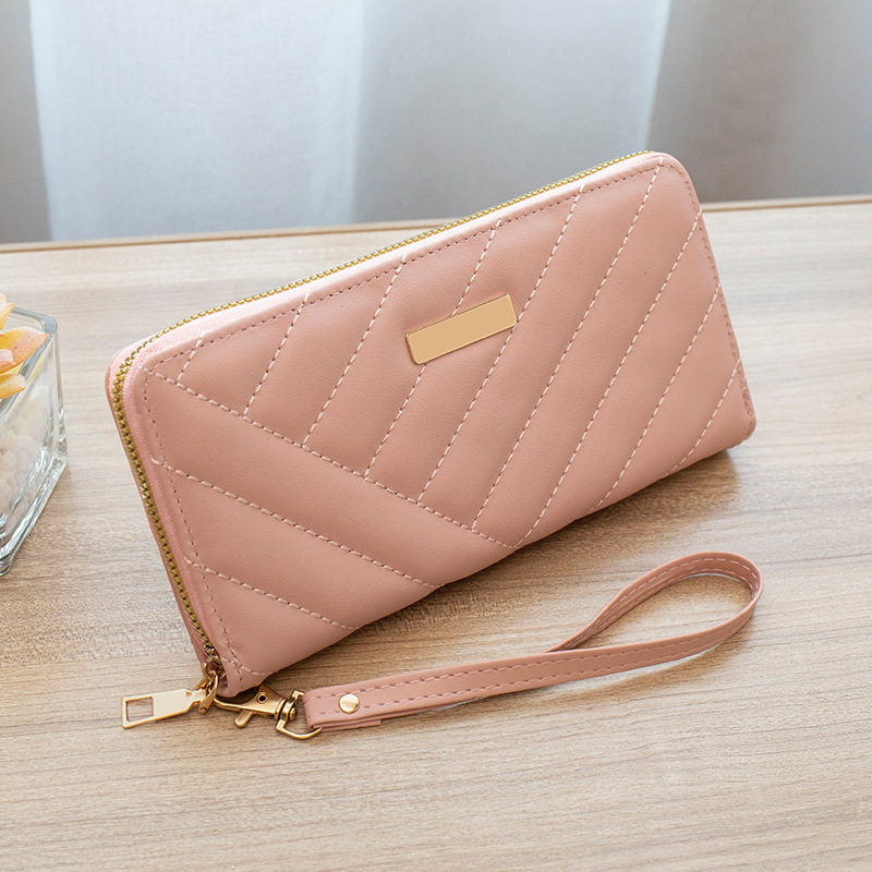 女士长款单拉钱包2023新款斜纹绣花铁片手拿零钱包休闲包一件代发