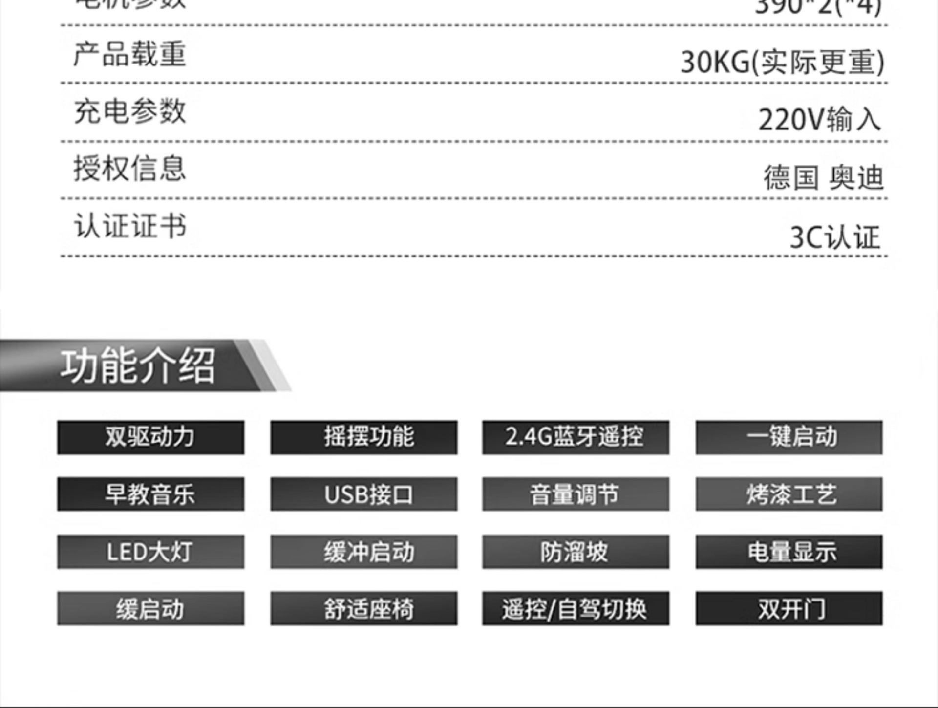 奥迪婴儿童电动车四轮汽车遥控玩具车双人可坐人男女小孩宝宝童车