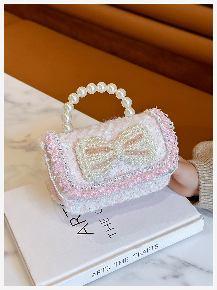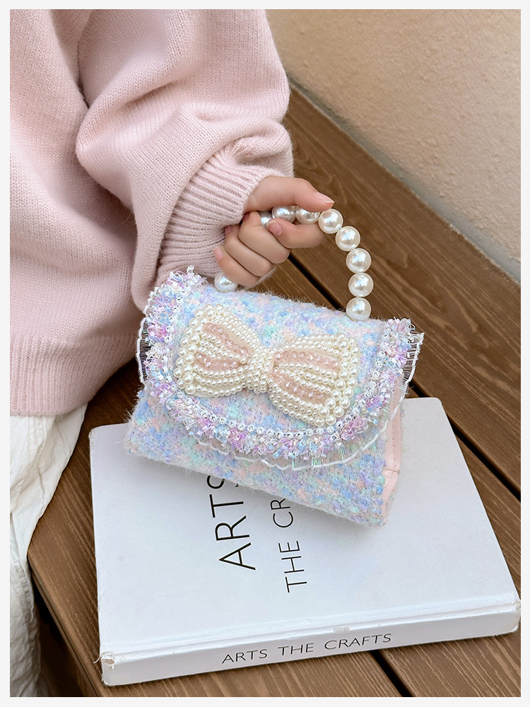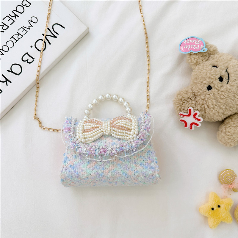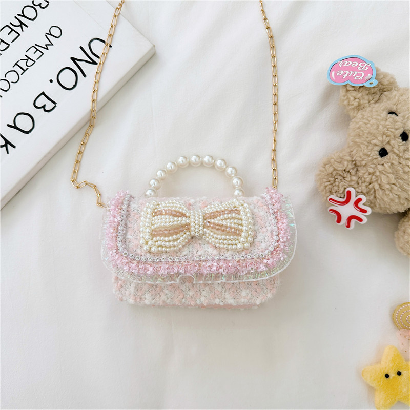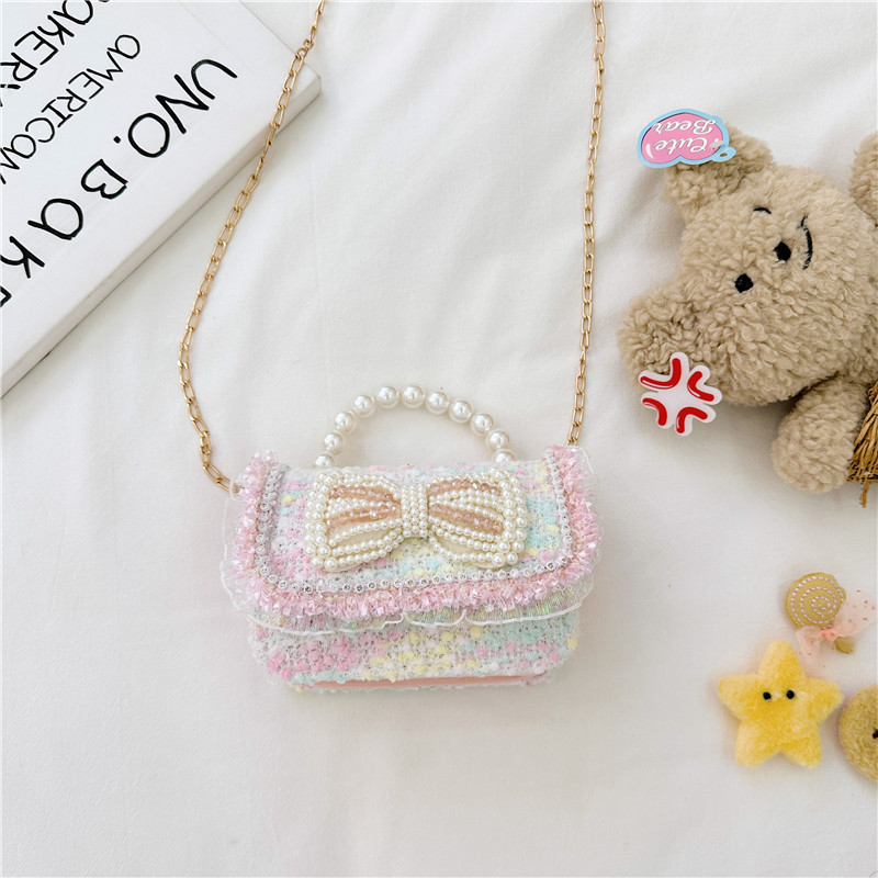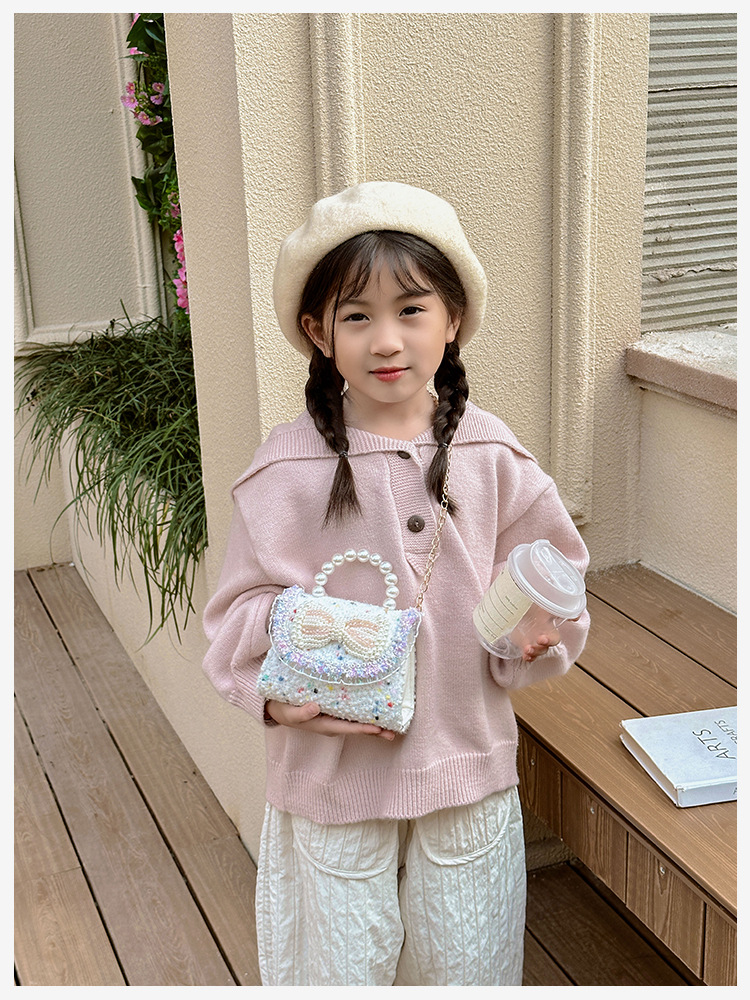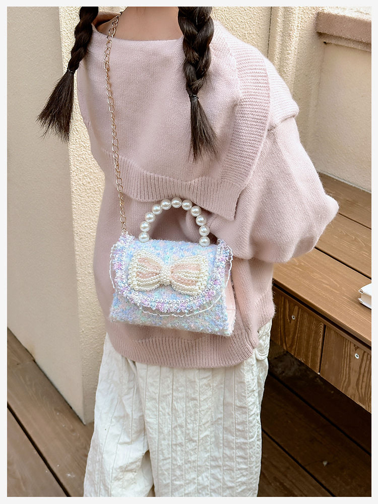 儿童包包小女童2023时尚单肩包卡通珍珠蝴蝶结斜挎包迷你零钱包
