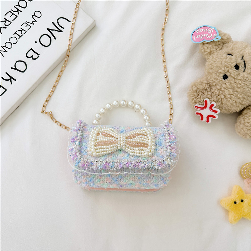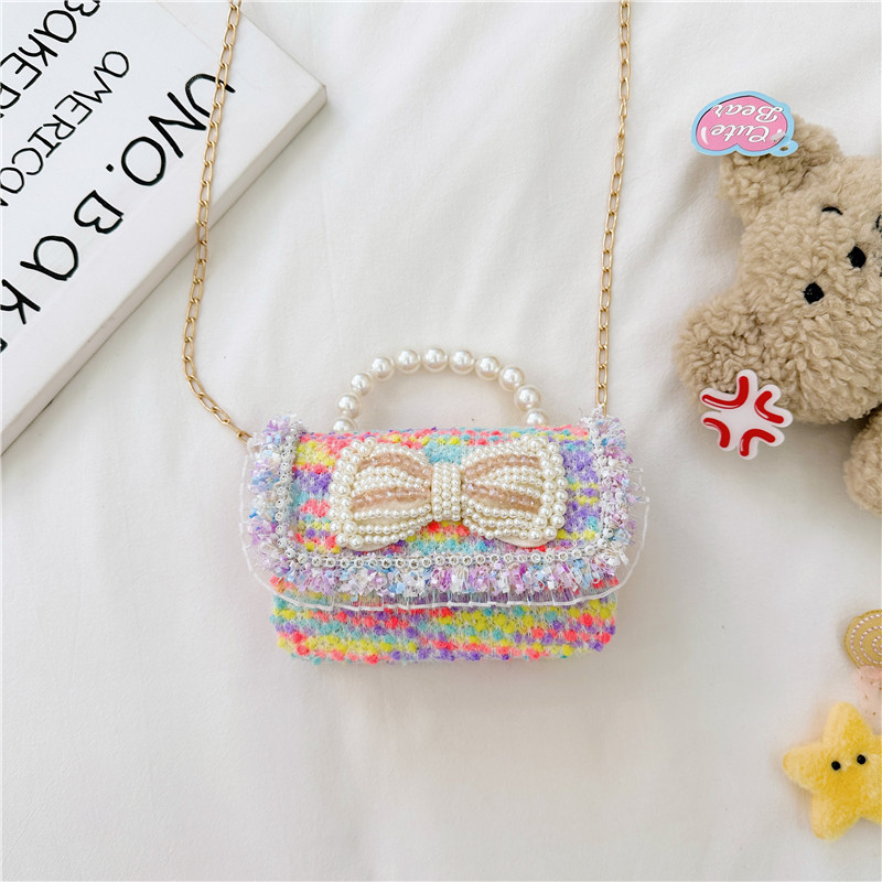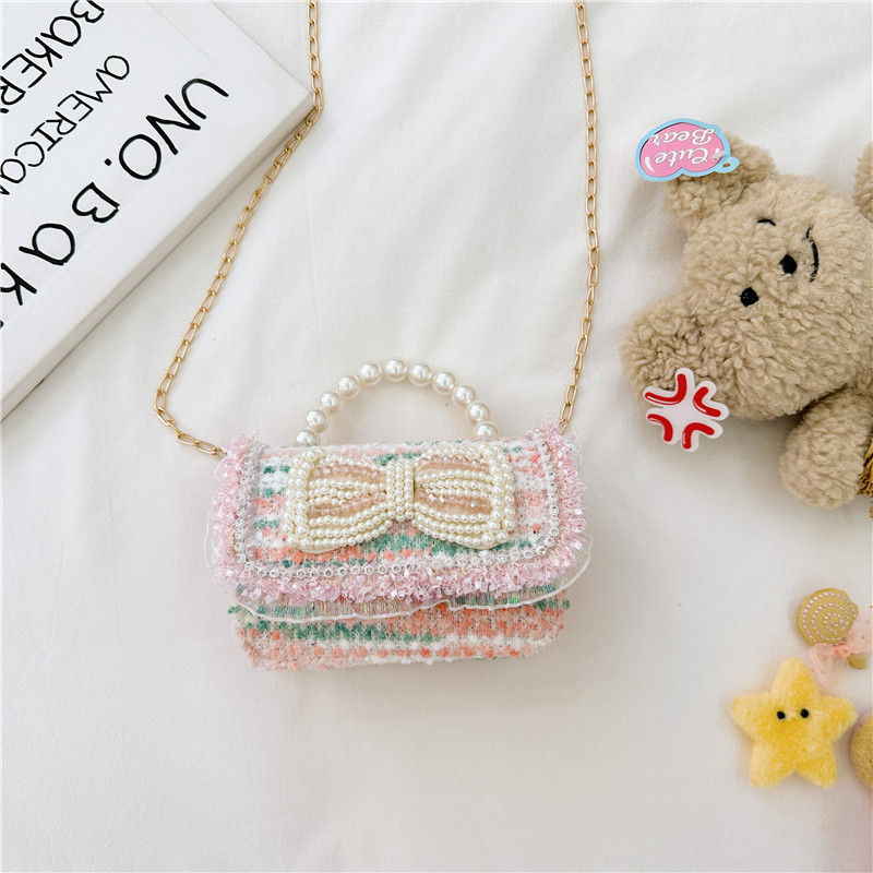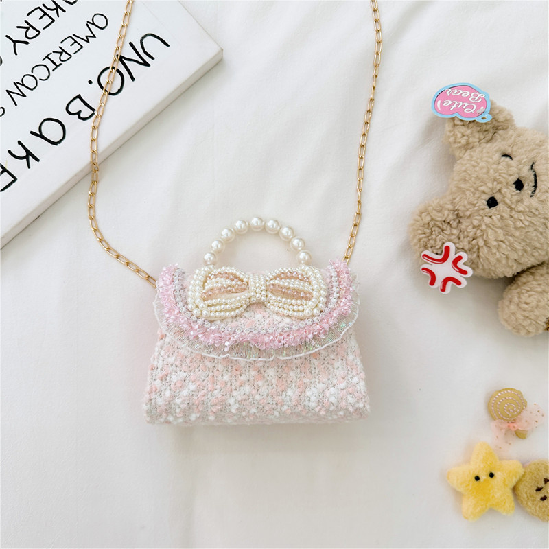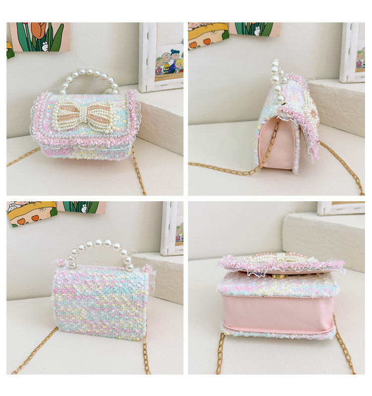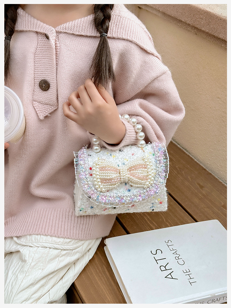 儿童包包小女童2023时尚单肩包卡通珍珠蝴蝶结斜挎包迷你零钱包