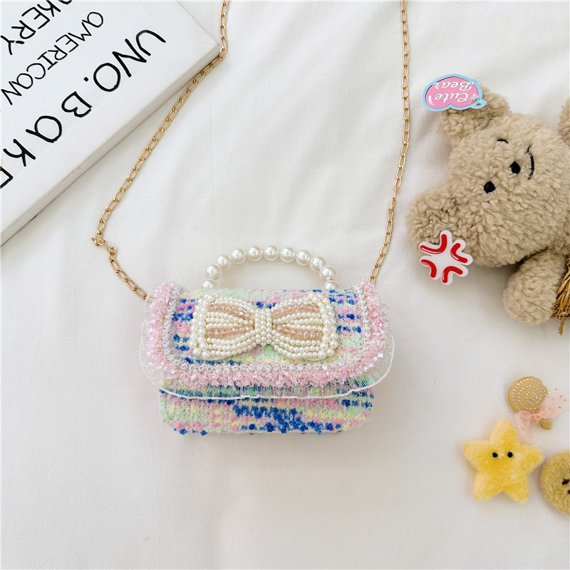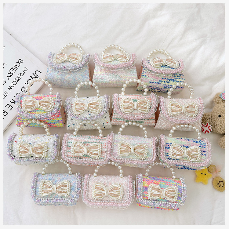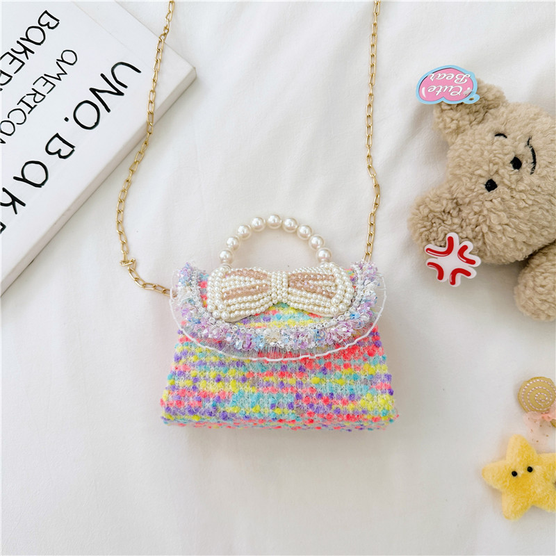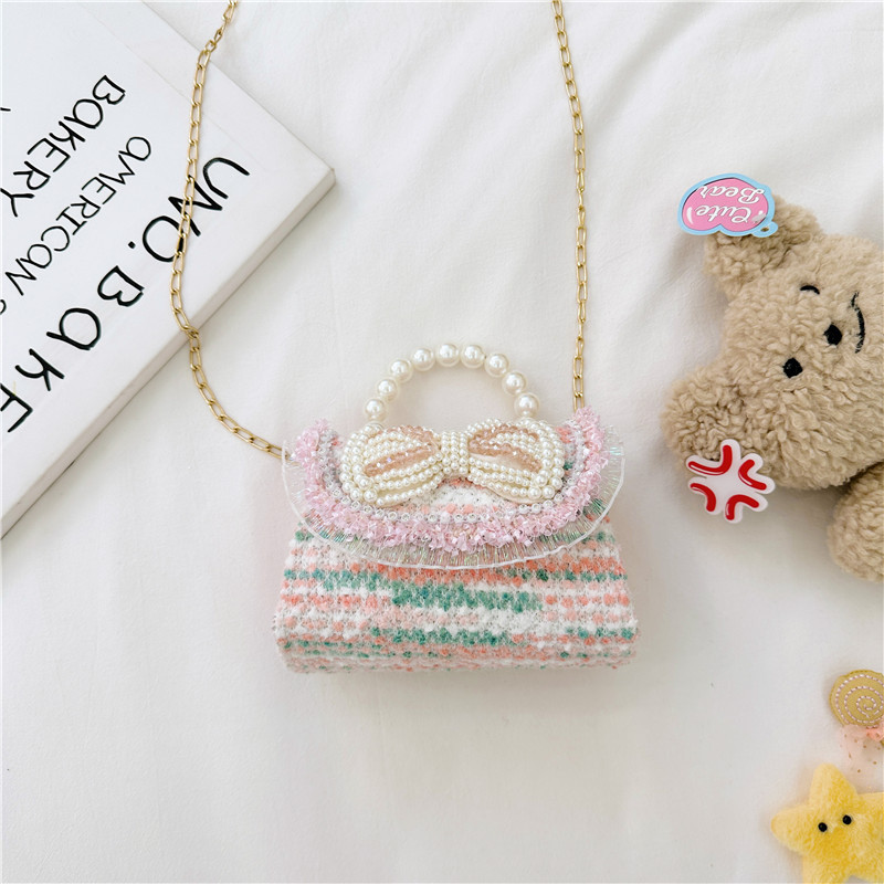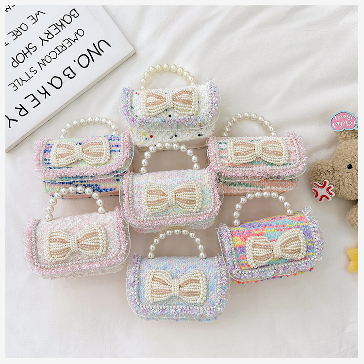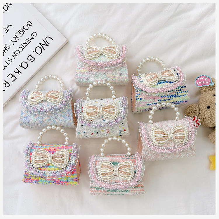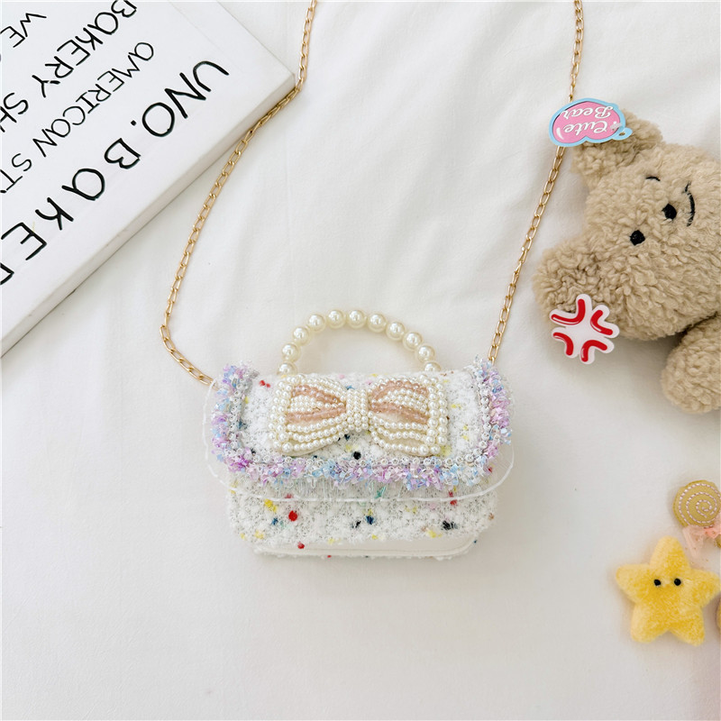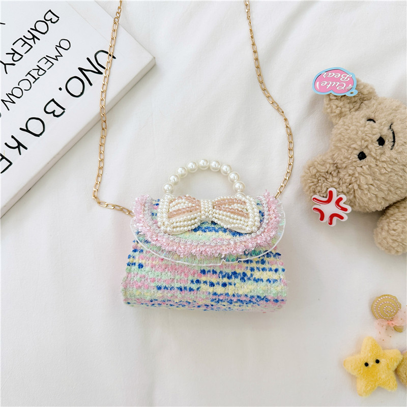 儿童包包小女童2023时尚单肩包卡通珍珠蝴蝶结斜挎包迷你零钱包