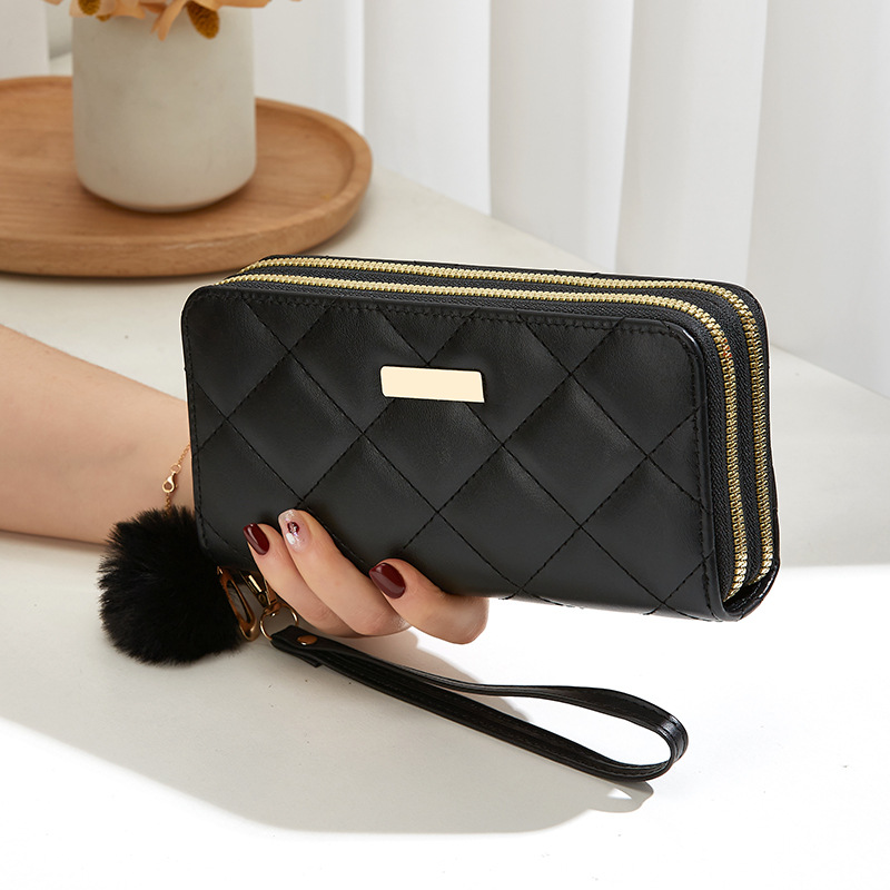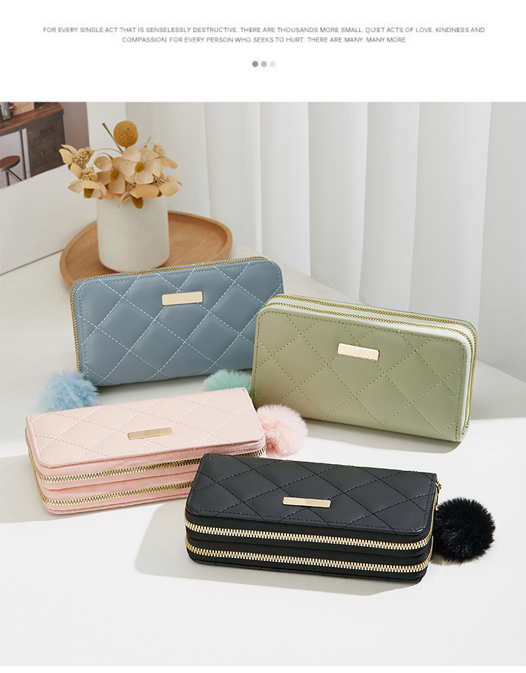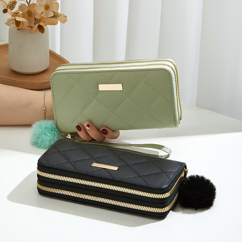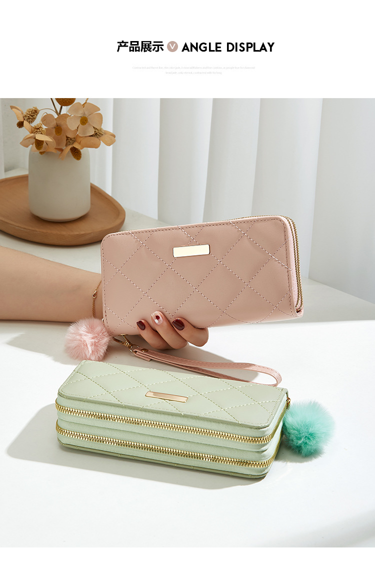 外贸新款钱包女双拉链短款手拿包时尚简约大容量双层钱夹手机包