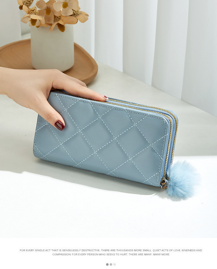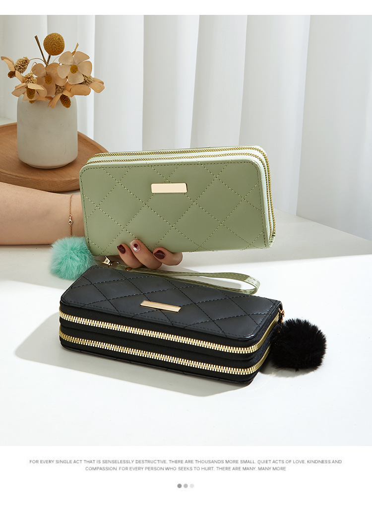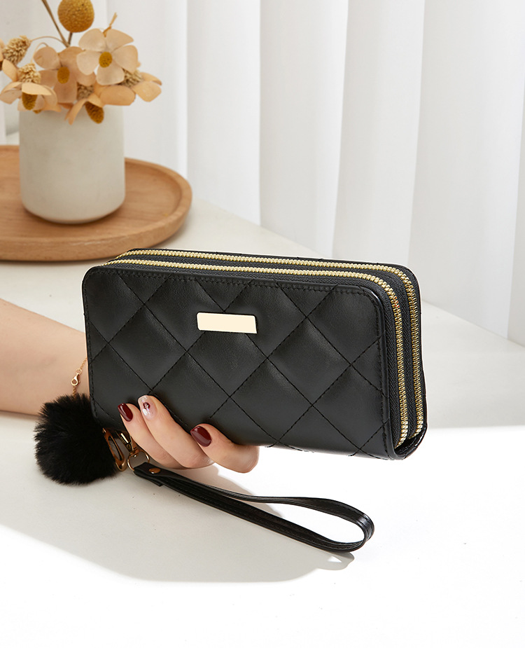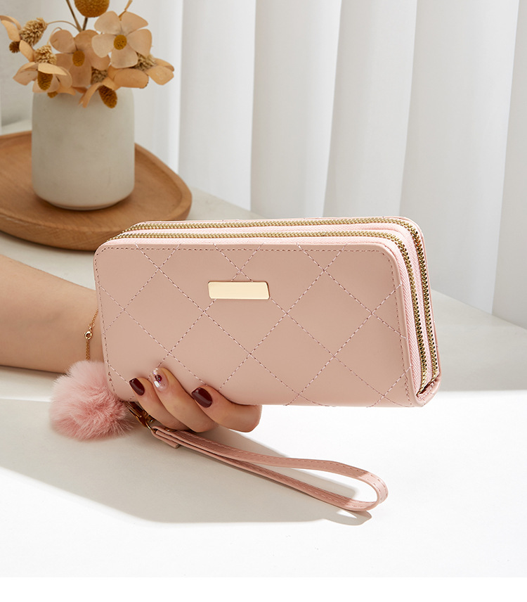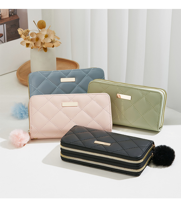 外贸新款钱包女双拉链短款手拿包时尚简约大容量双层钱夹手机包