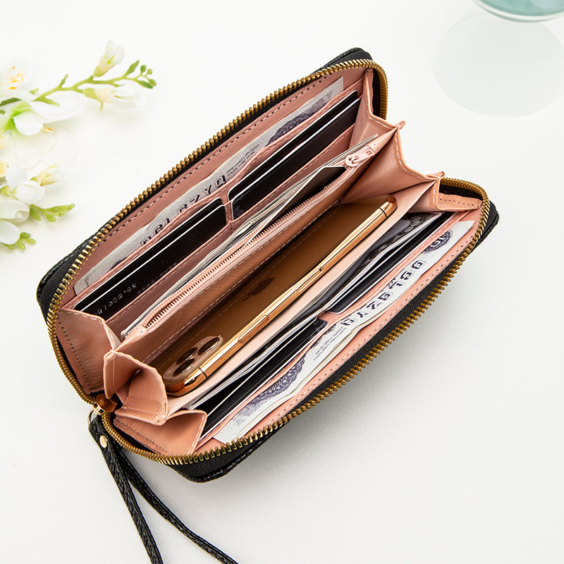 新款女士钱包女长款韩版手拿包绣花质感拉链大容量钱夹手机包皮夹