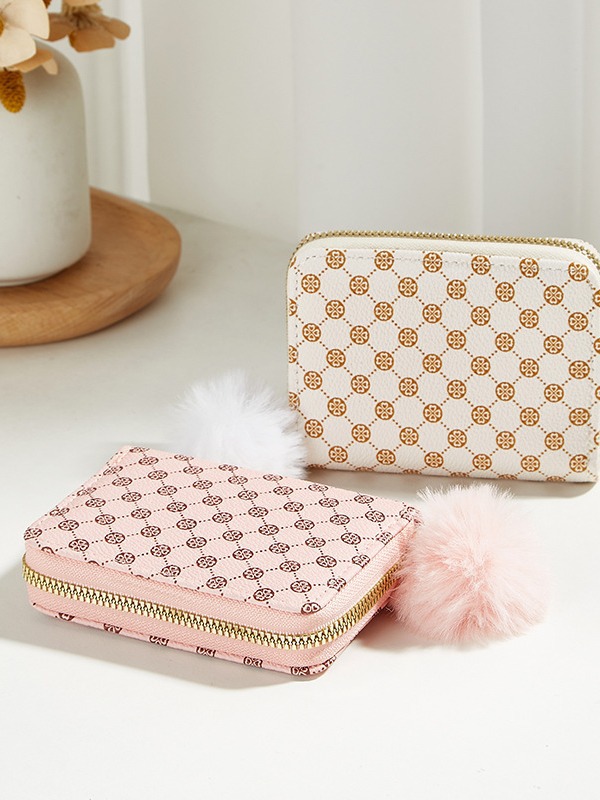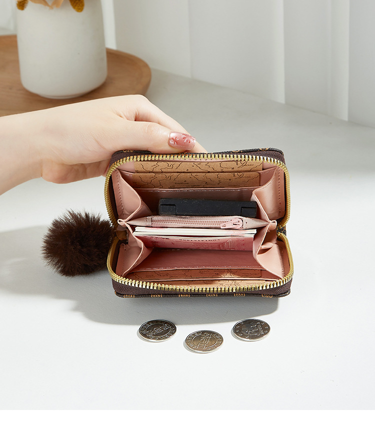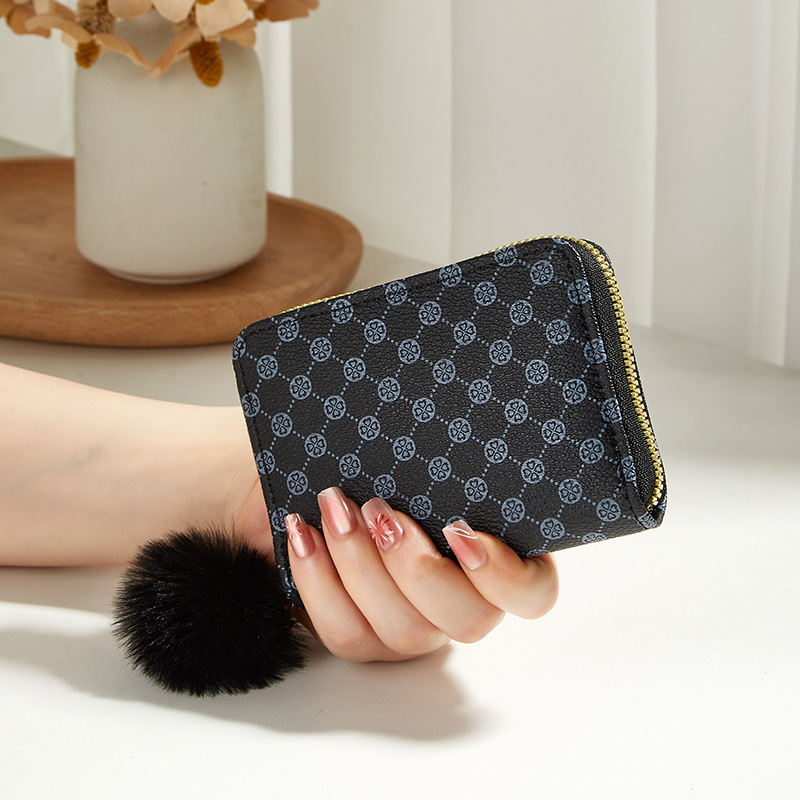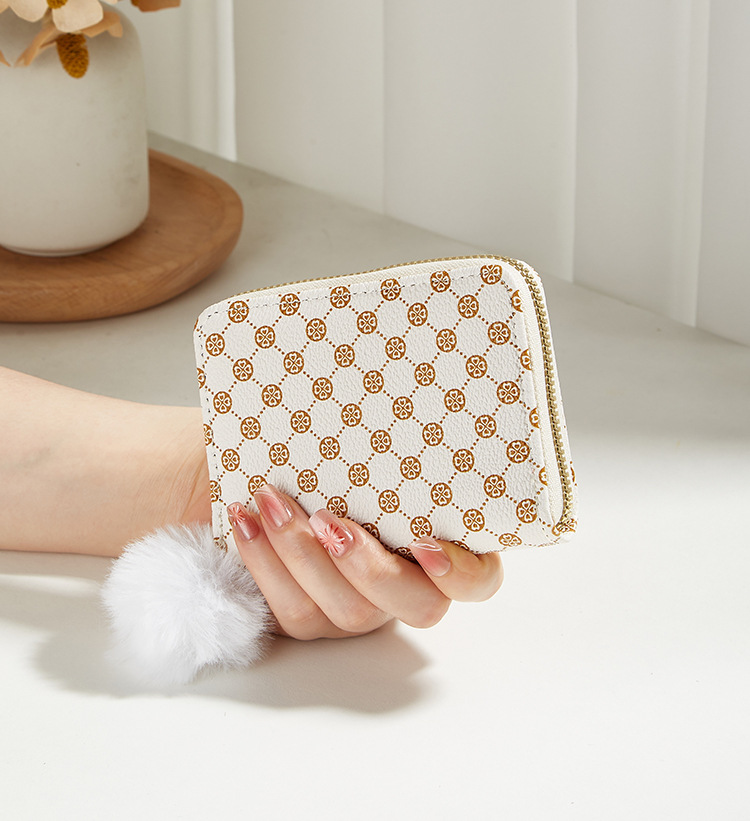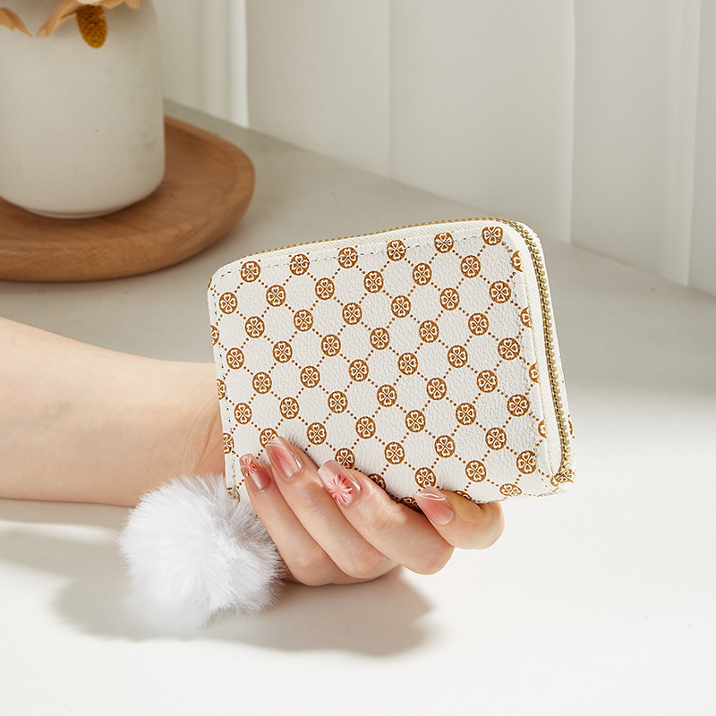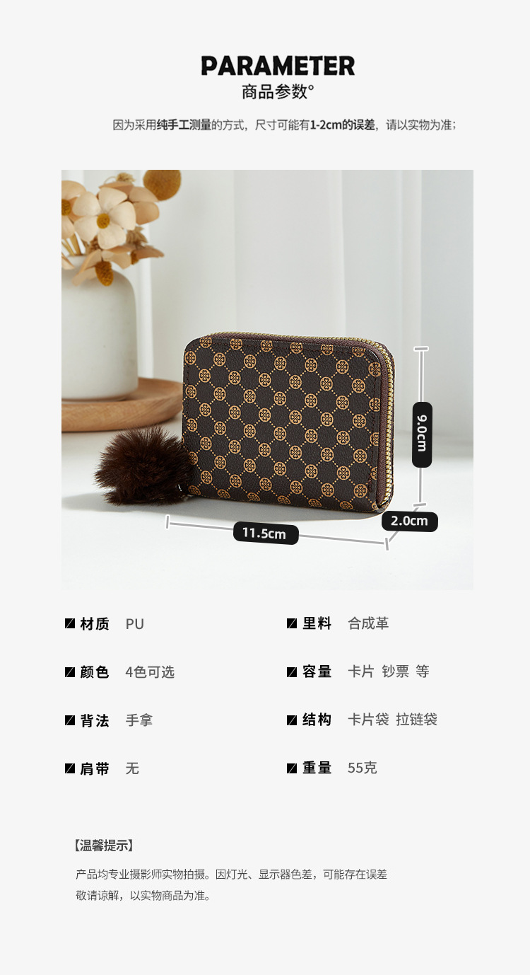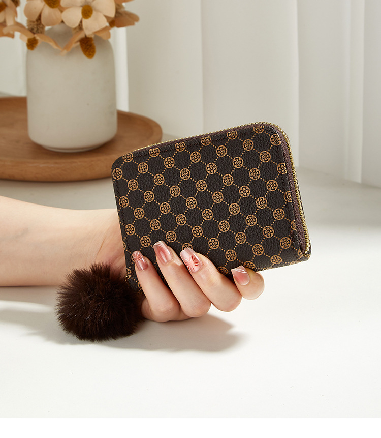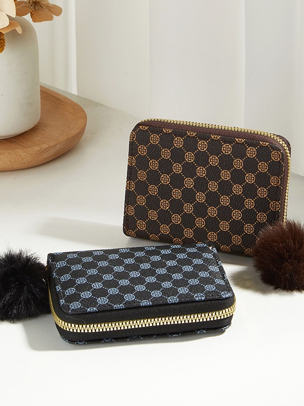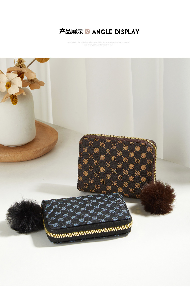 2024新款复古handbags女士拉链短款圆点时尚简约零钱包