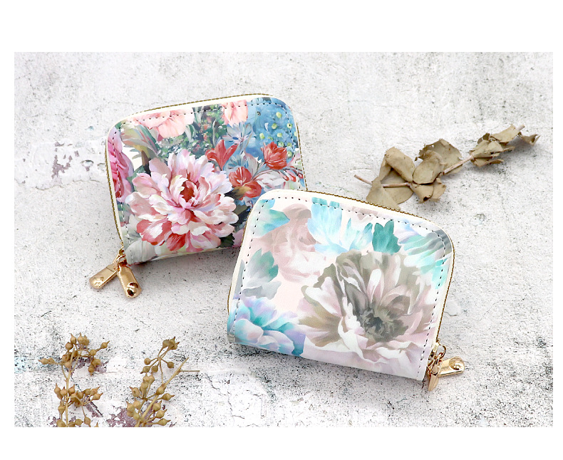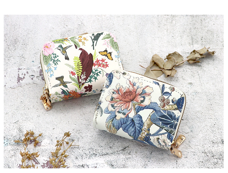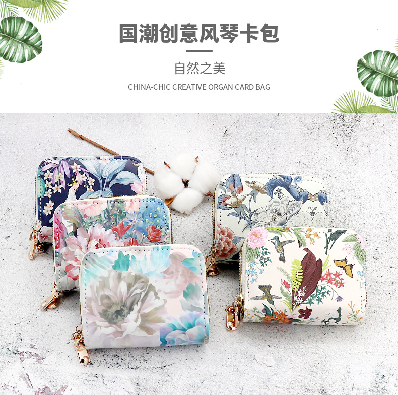 2024新款国风女士钱包大容量多功能卡包创意花朵小卡夹拉链证件包