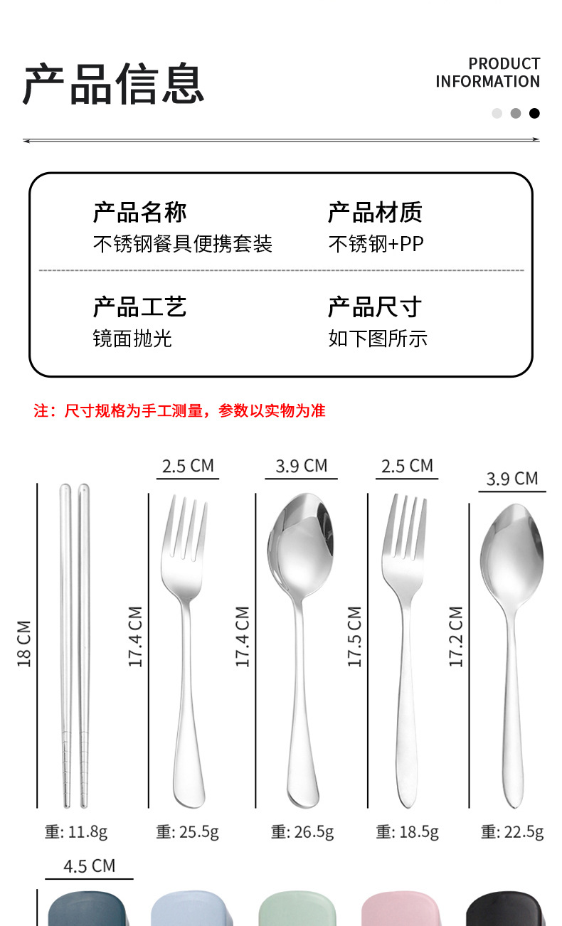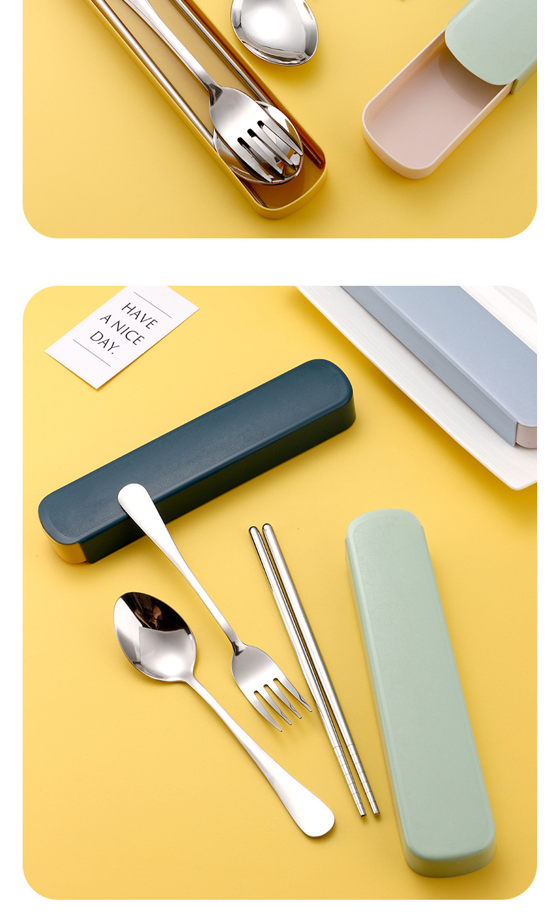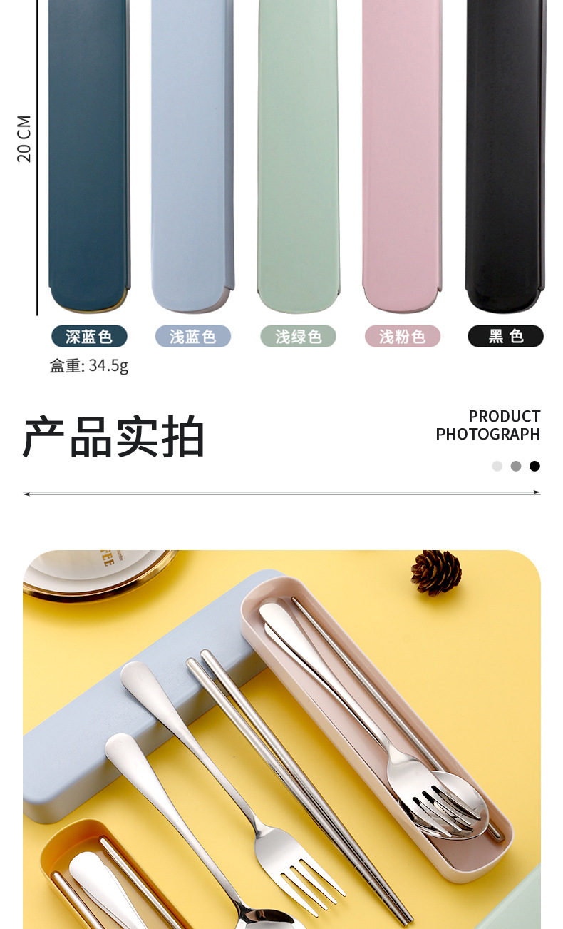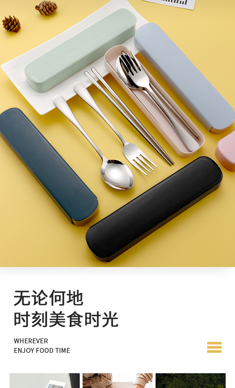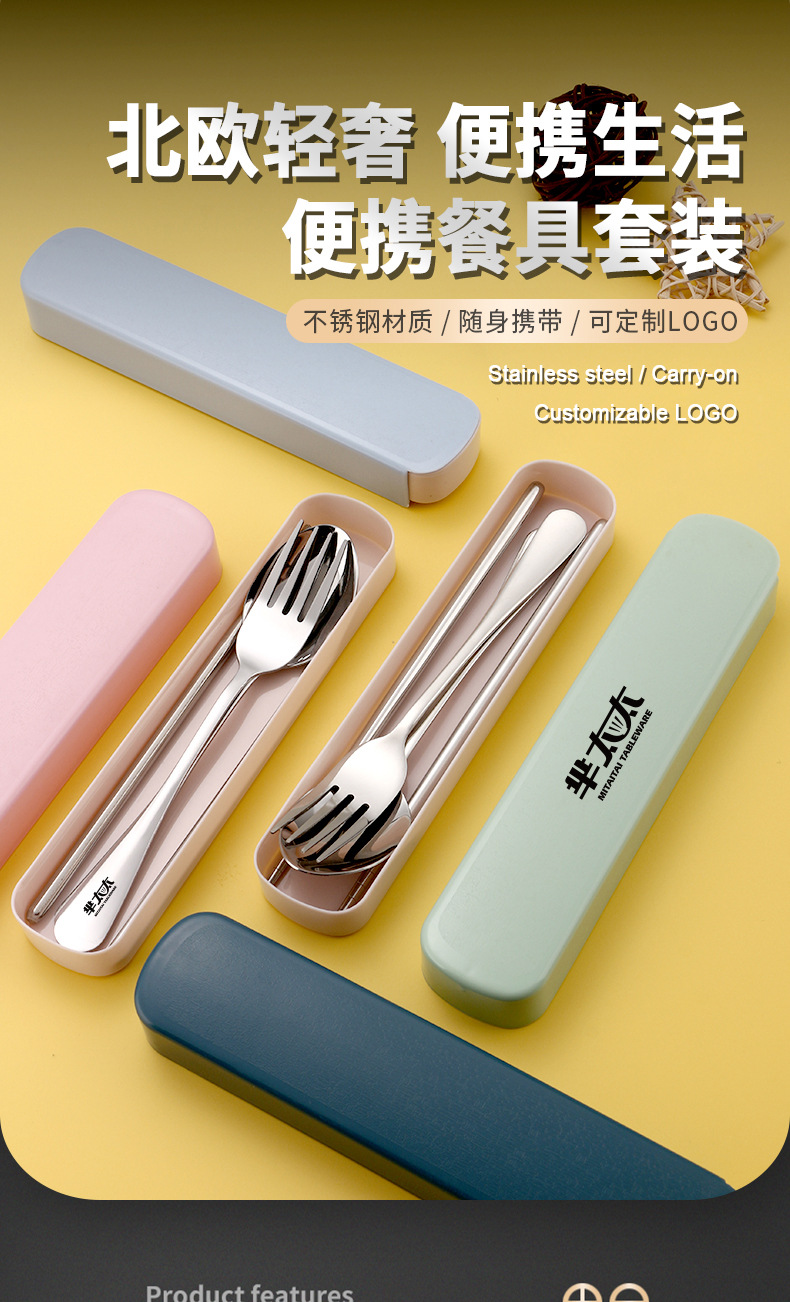贸点工厂直营MD-T001不锈钢便携勺子叉子筷子学生户外旅行三件套