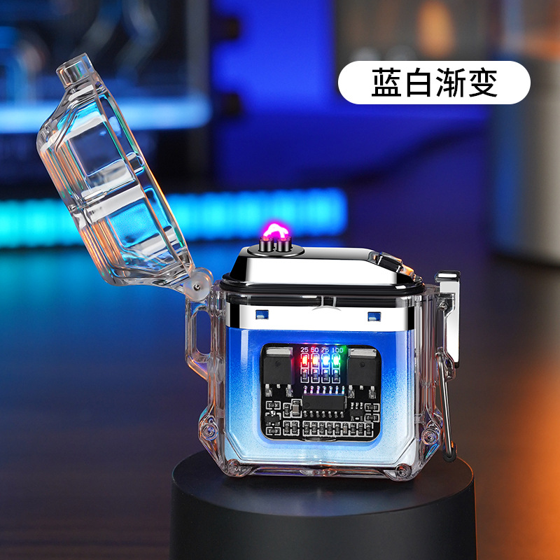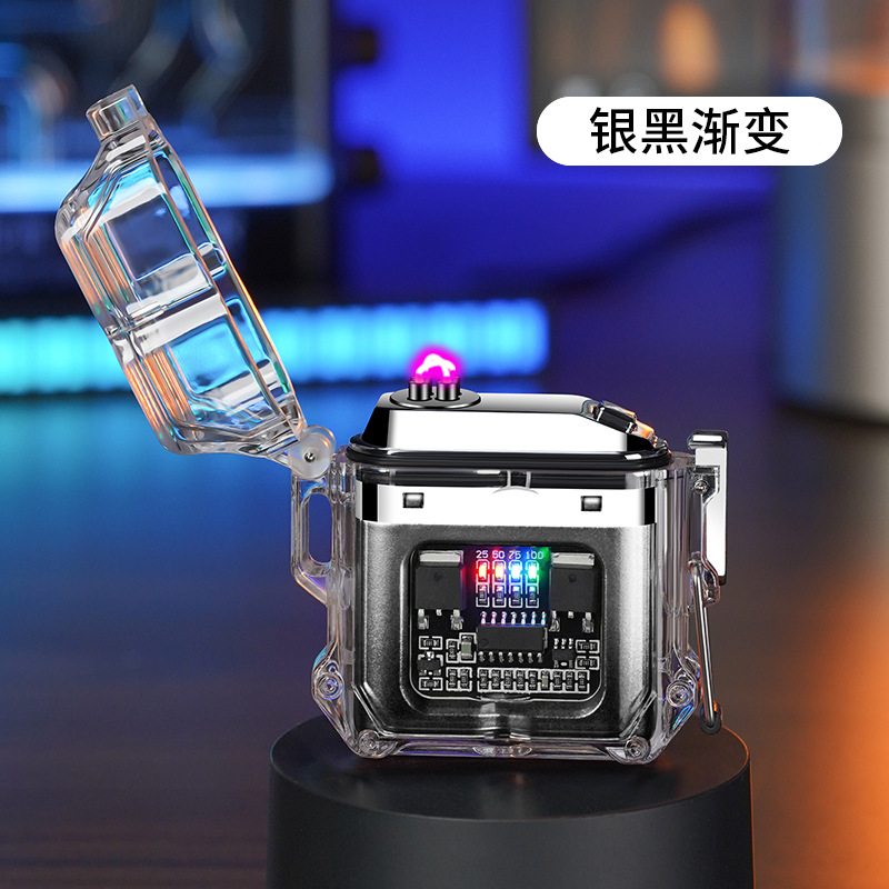 新款透明壳电量显示充电打火机户外防水跨境打火机货源批发
