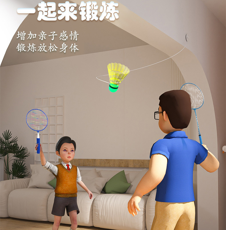 羽毛球单人训练器回弹自打室内发光线吸盘家庭一个人打羽毛球神器