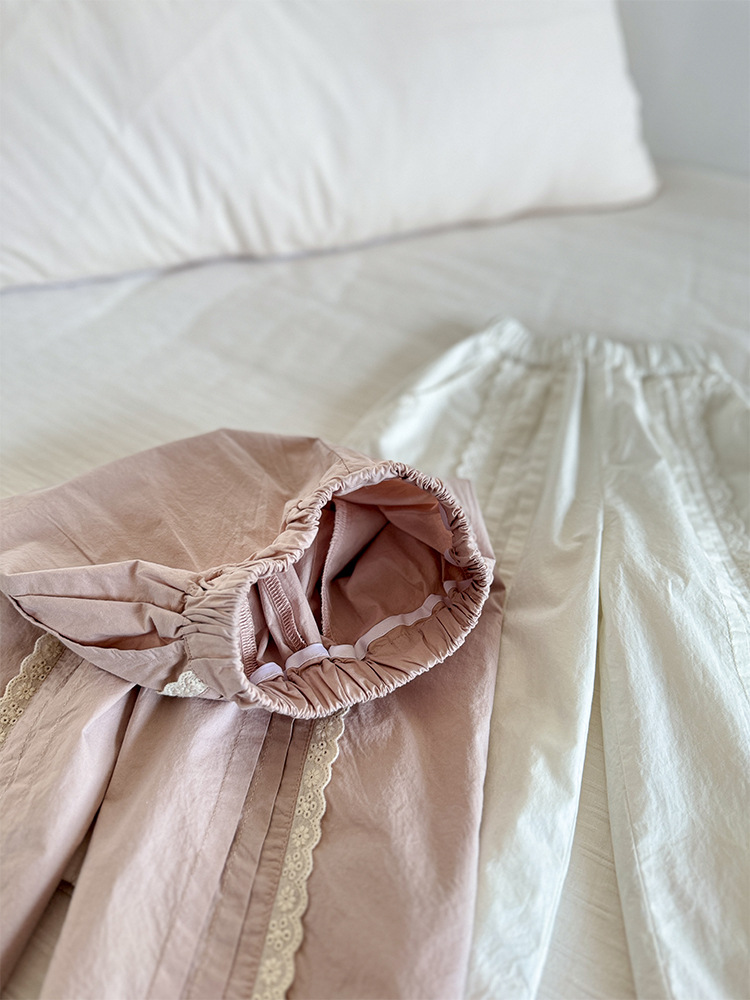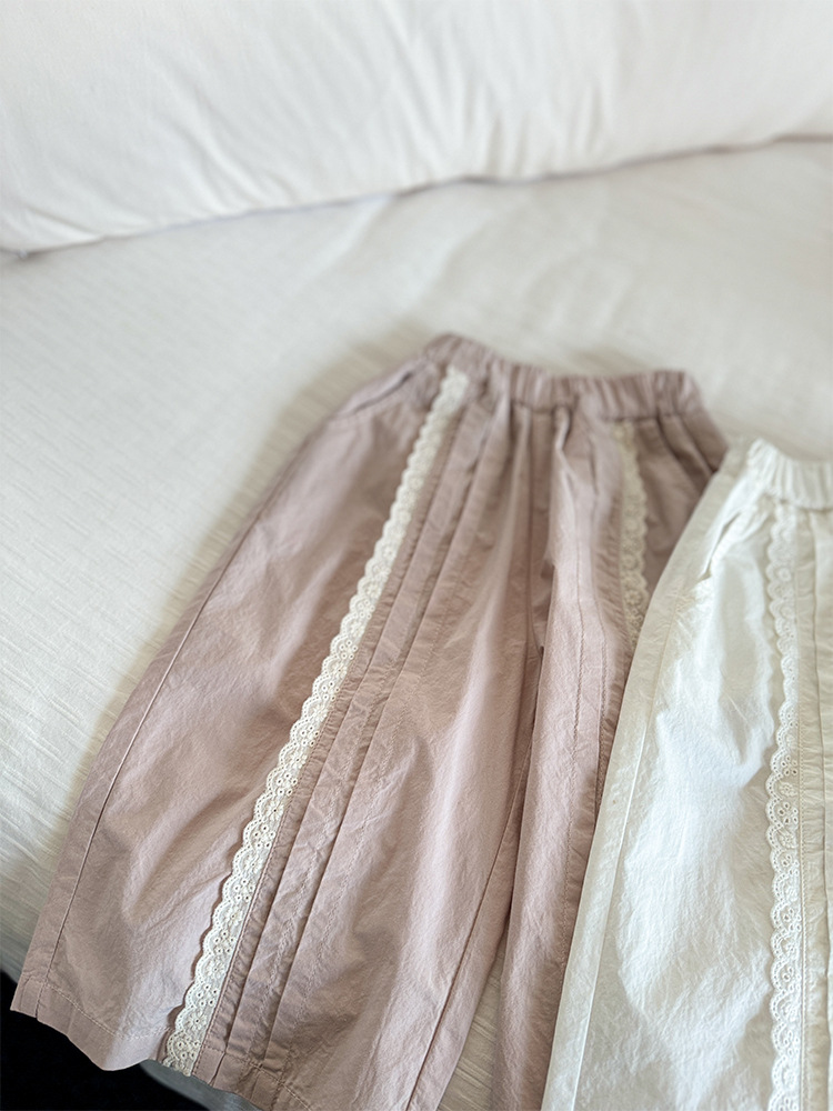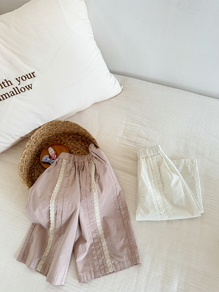 2024年新款夏款儿童女童韩版百搭田园蕾丝花边直筒阔腿裤