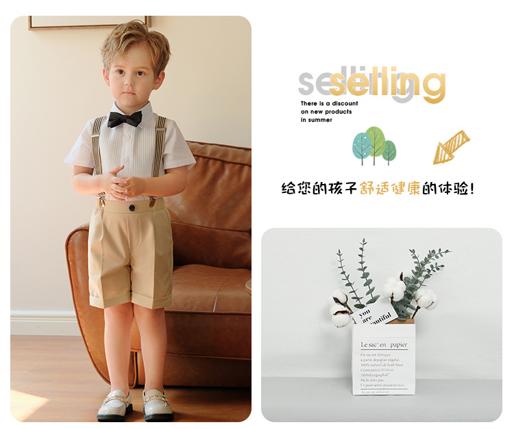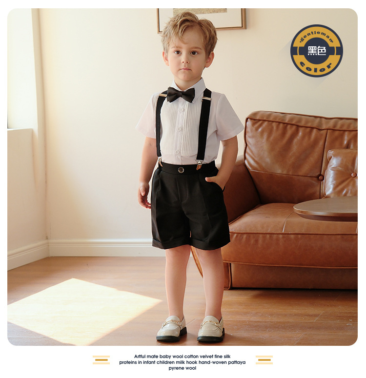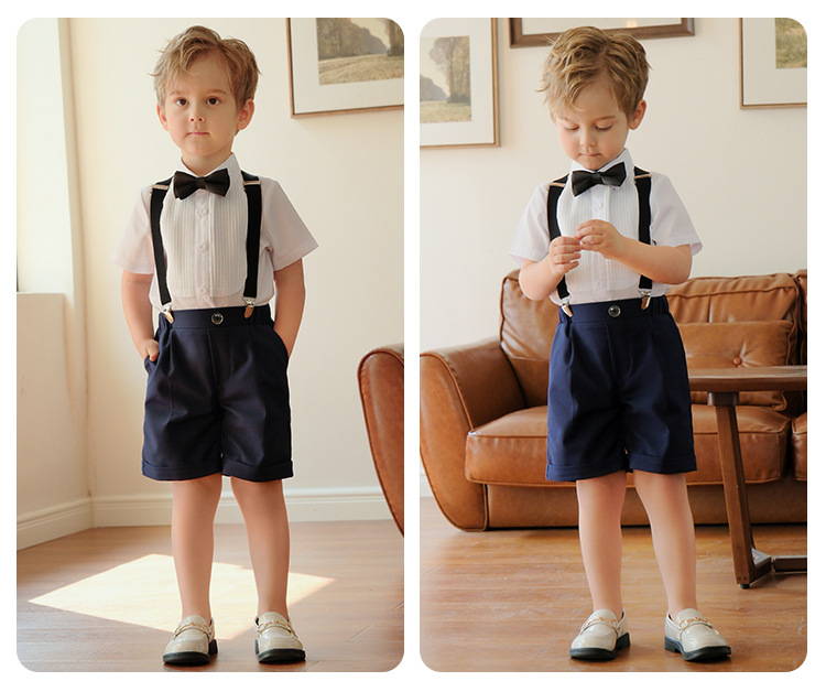 儿童背带裤套装夏季新款男童六一主持演出服宝宝帅气周岁花童礼服