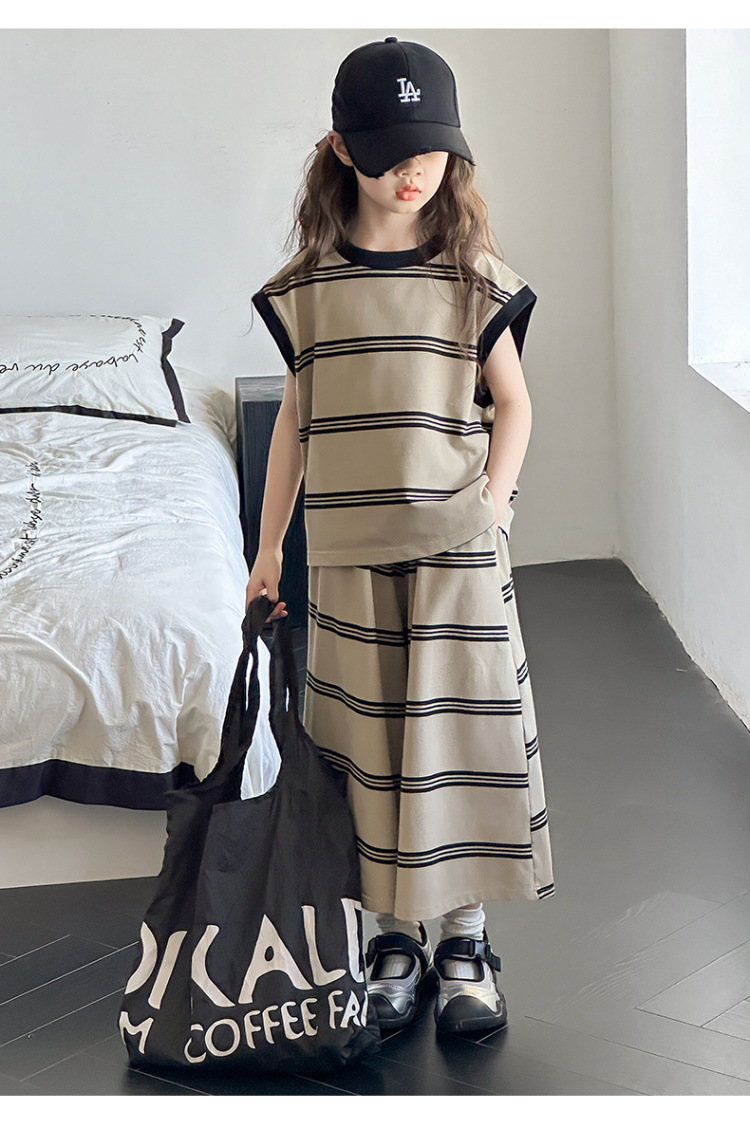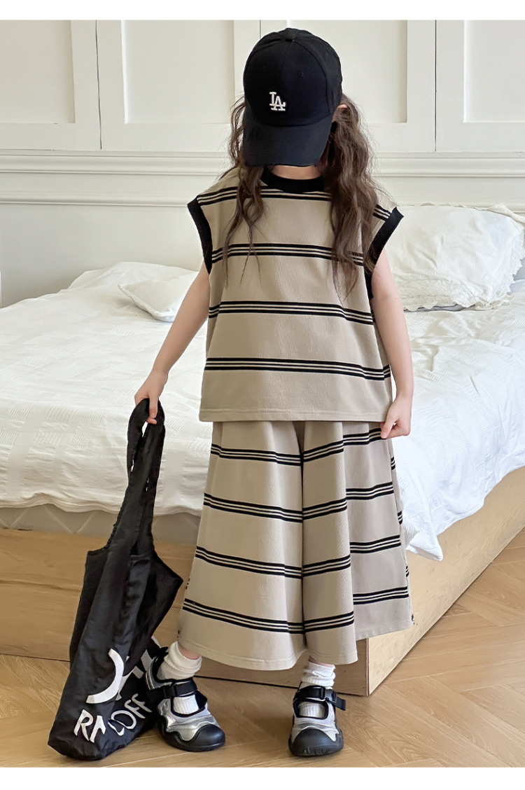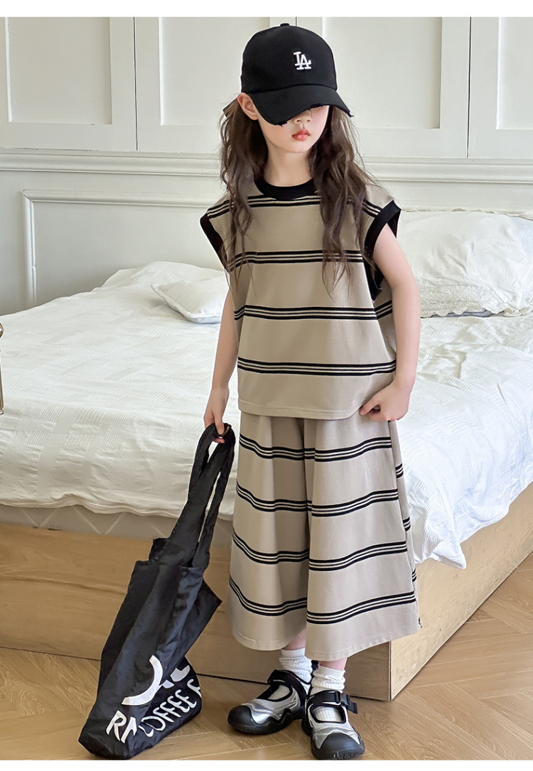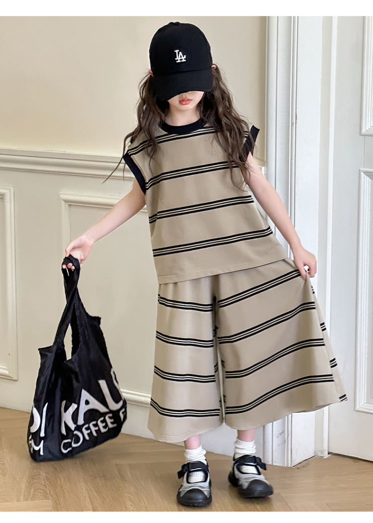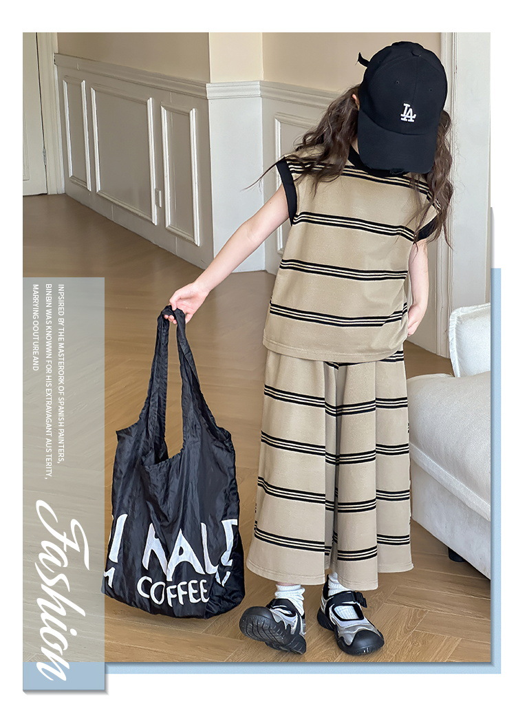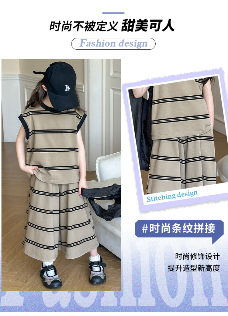 女童夏季套装2024新款儿童时髦洋气夏装大童无袖背心阔腿裤两件套