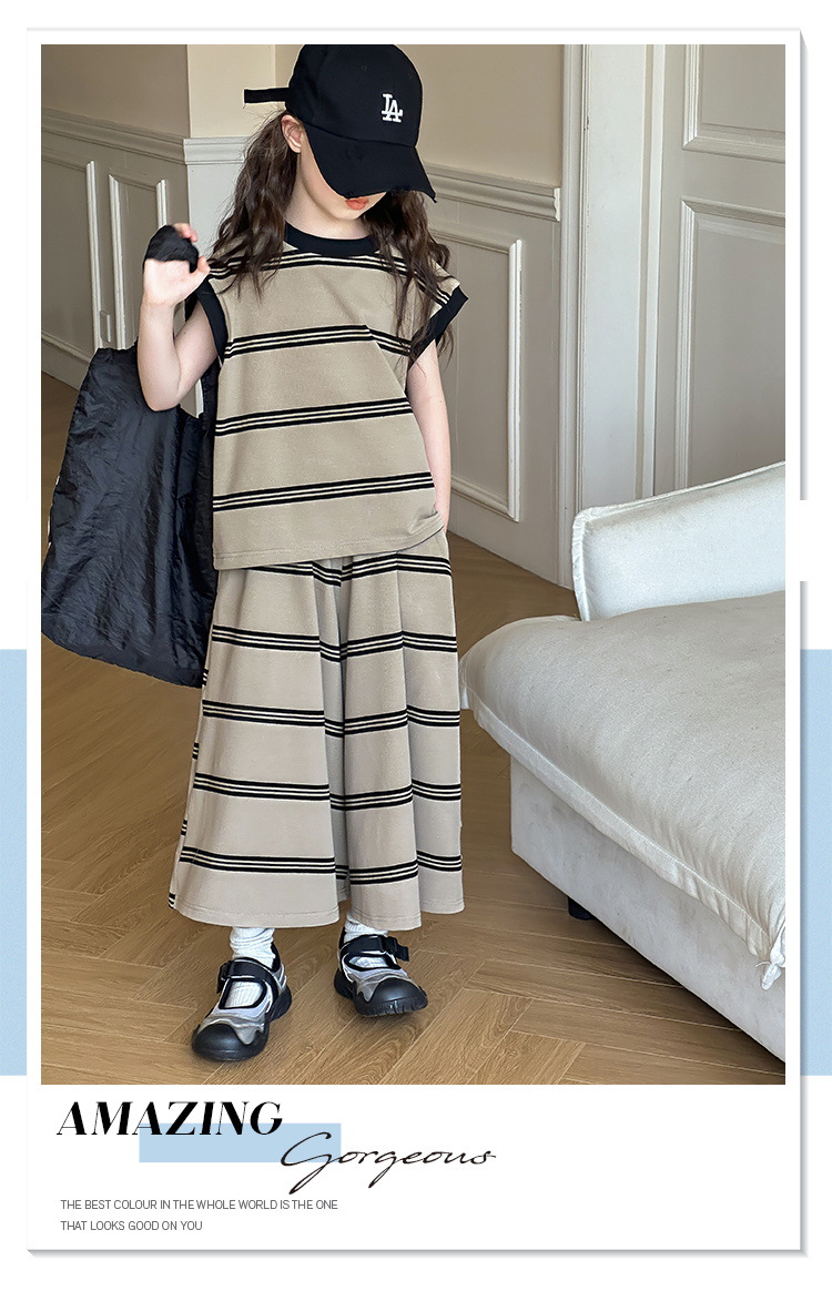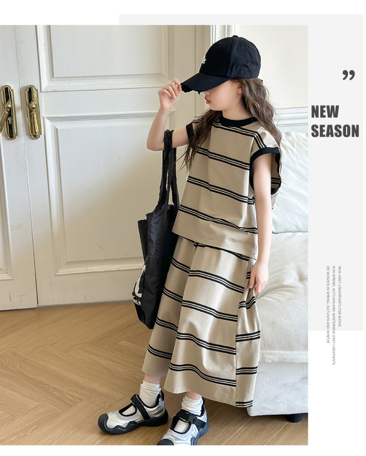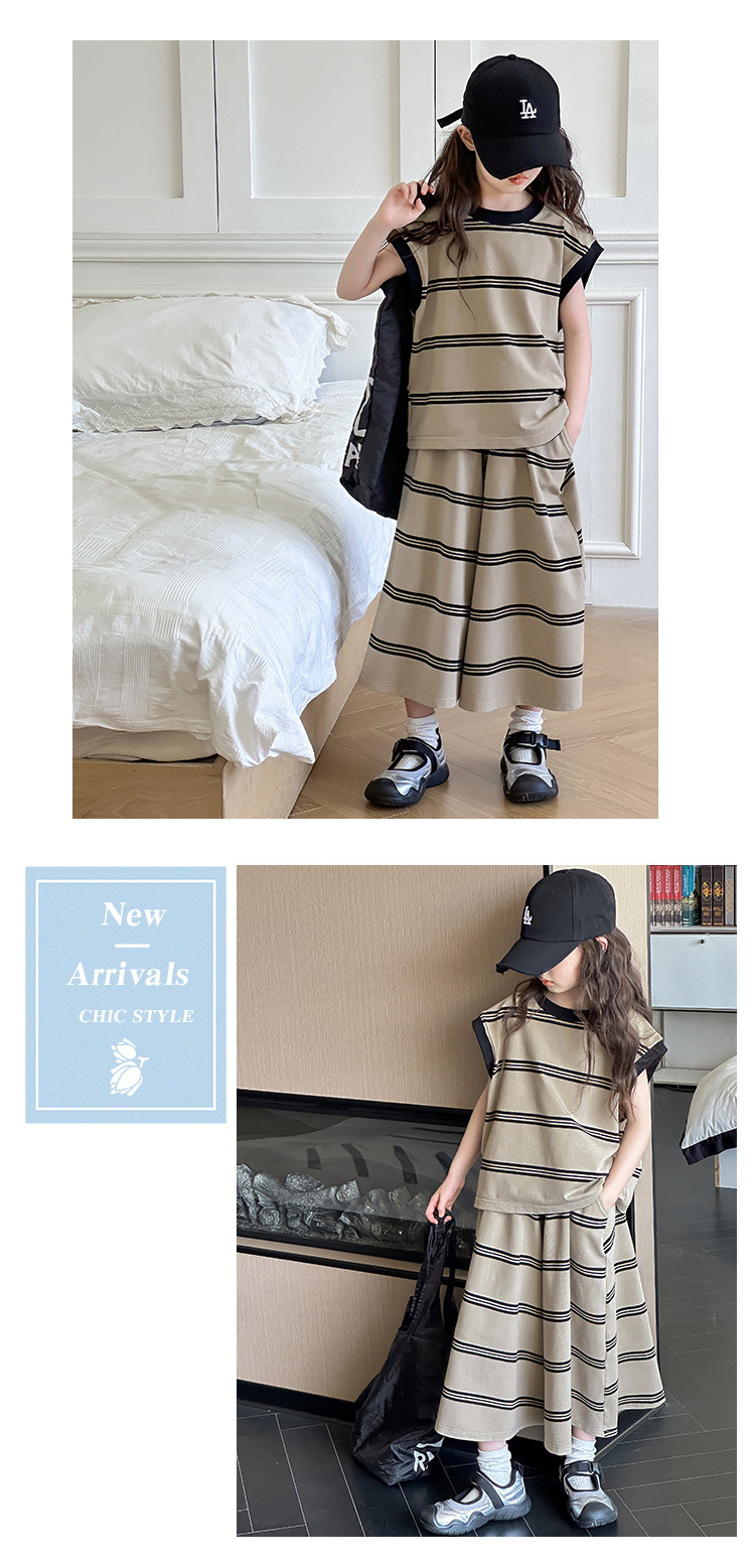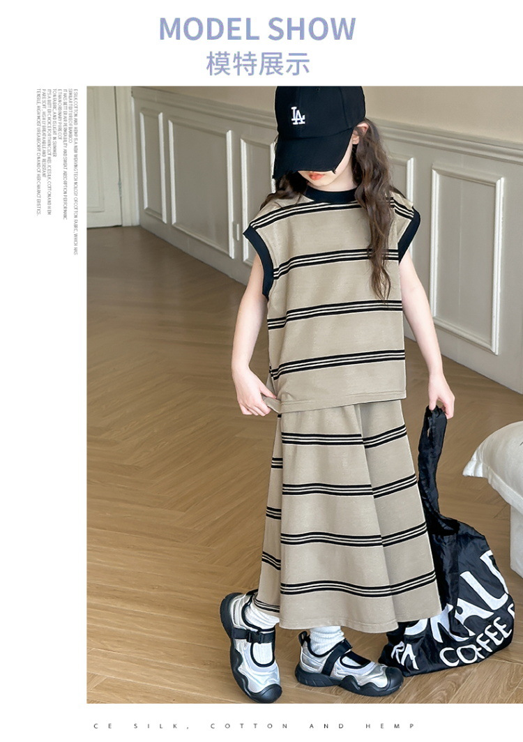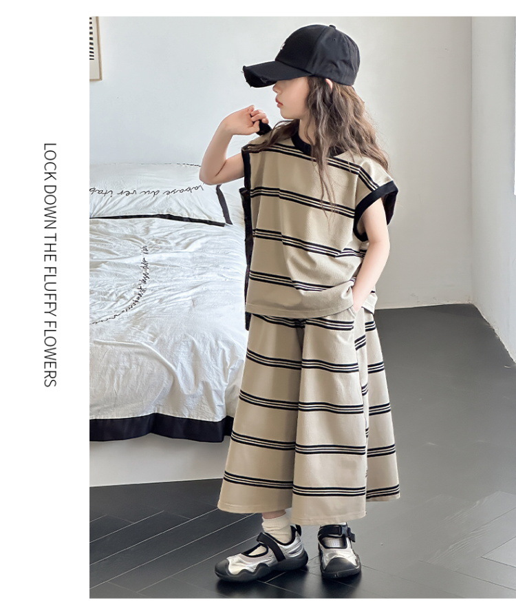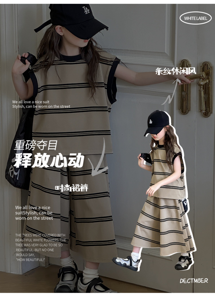 女童夏季套装2024新款儿童时髦洋气夏装大童无袖背心阔腿裤两件套