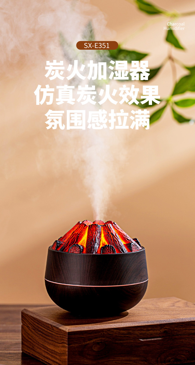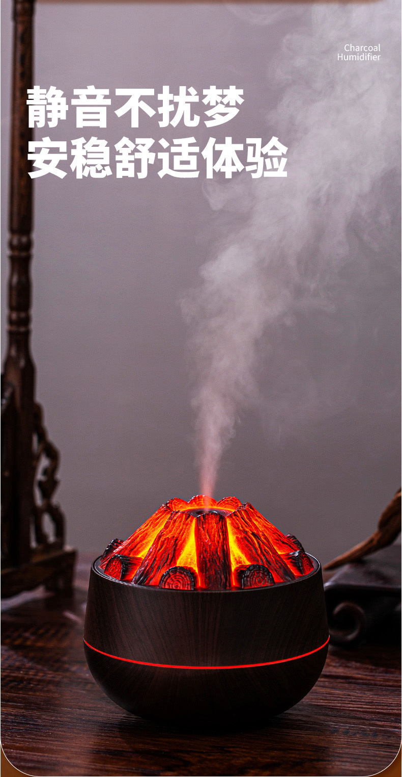 外贸专供创意仿真炭火加湿器氛围灯 卧室桌面USB便携式香薰加湿器