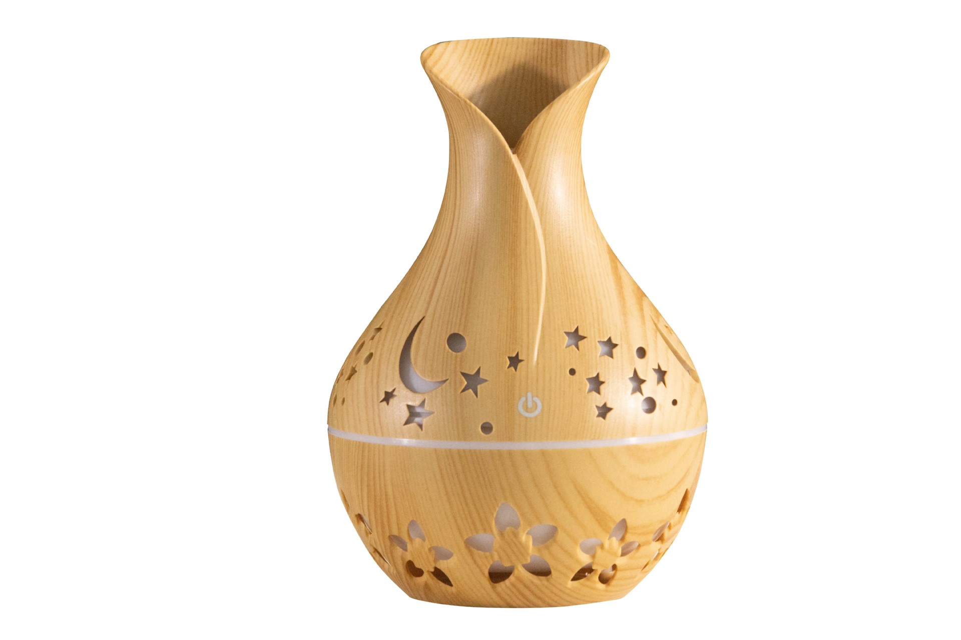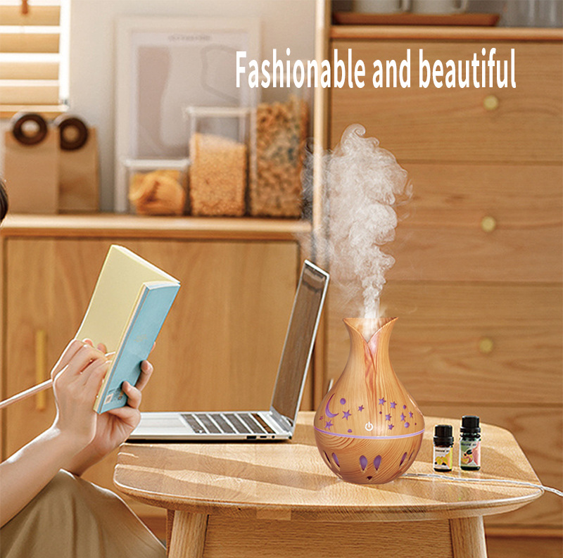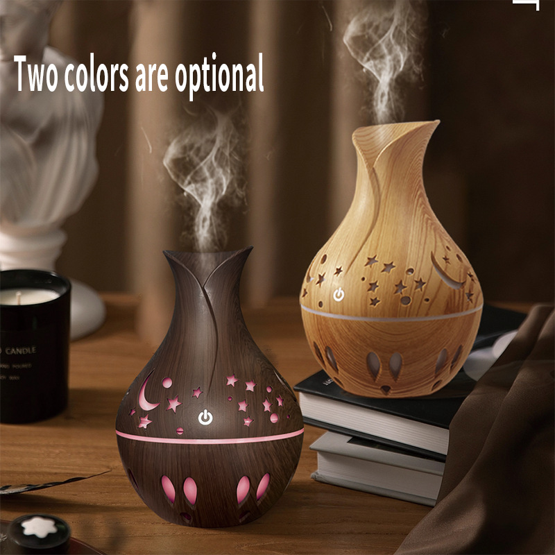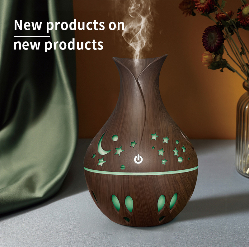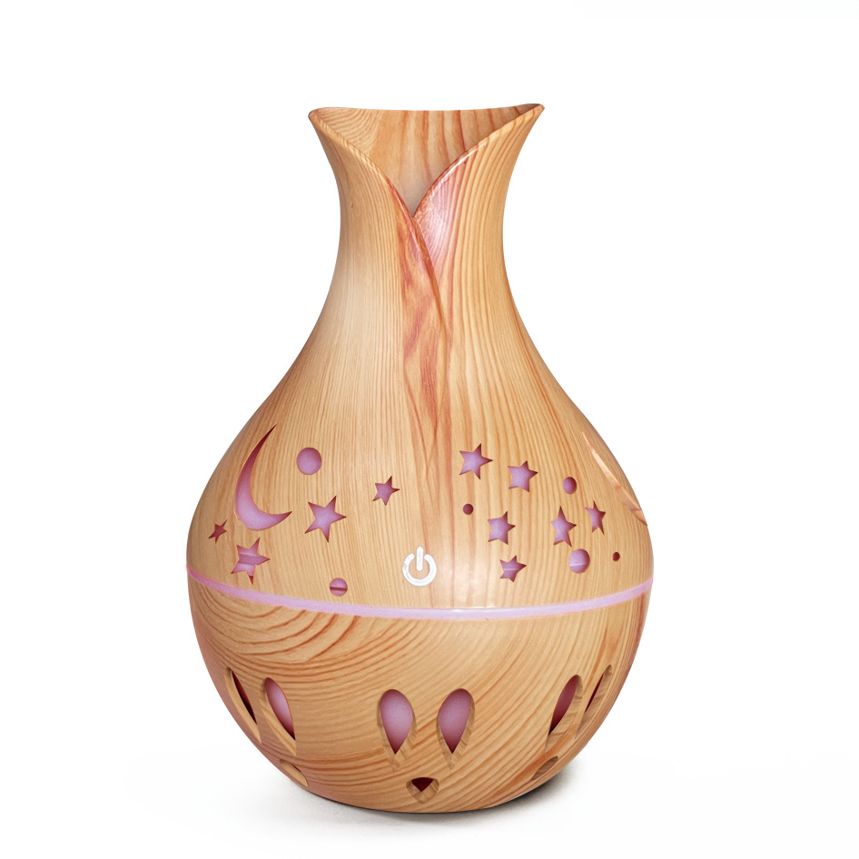 新款130ml小花瓶星星月亮镂空木纹空气加湿器创意雾化扩散器
