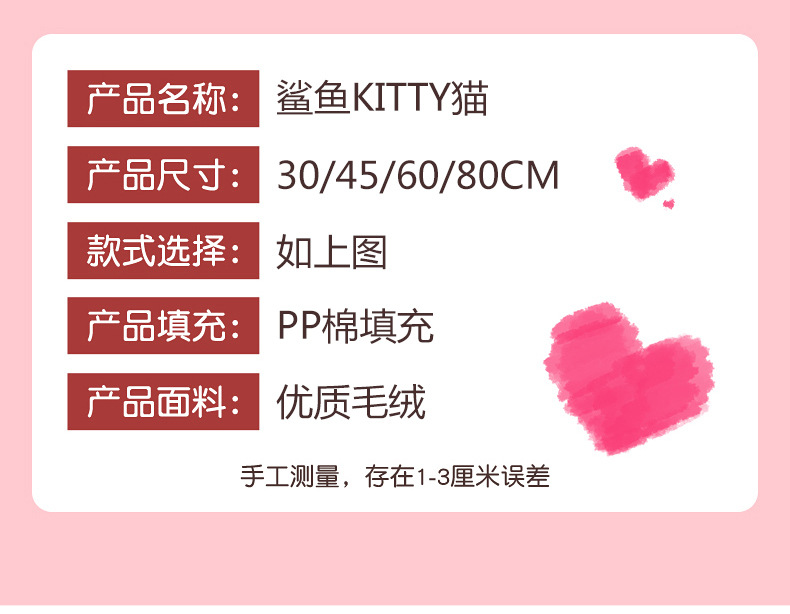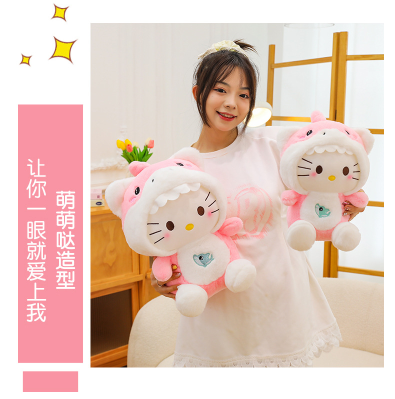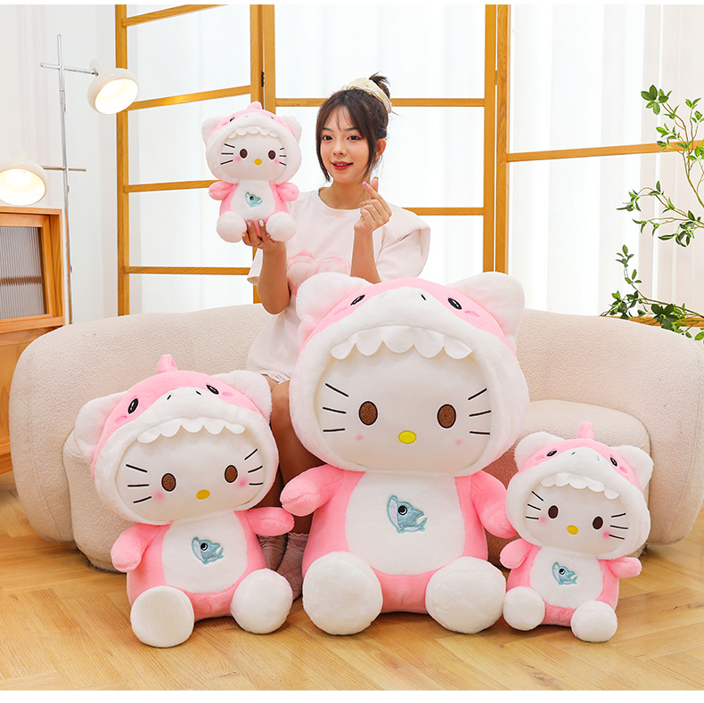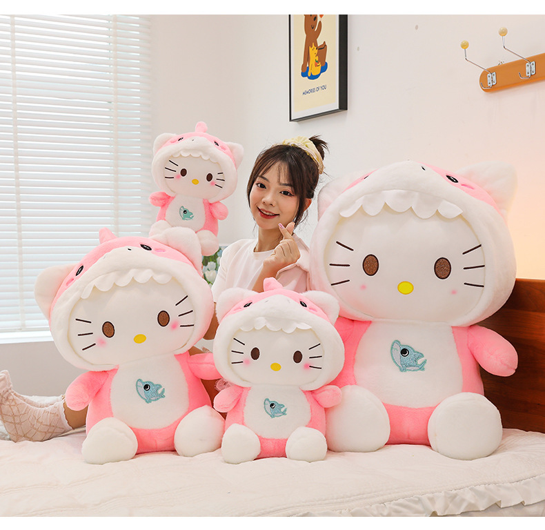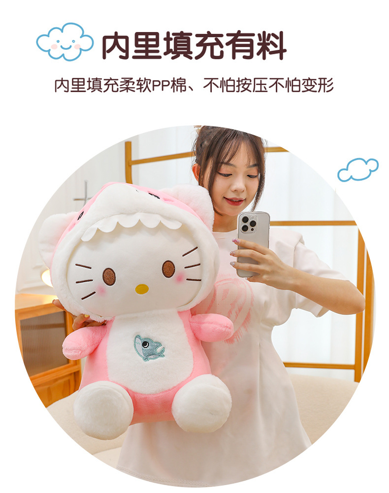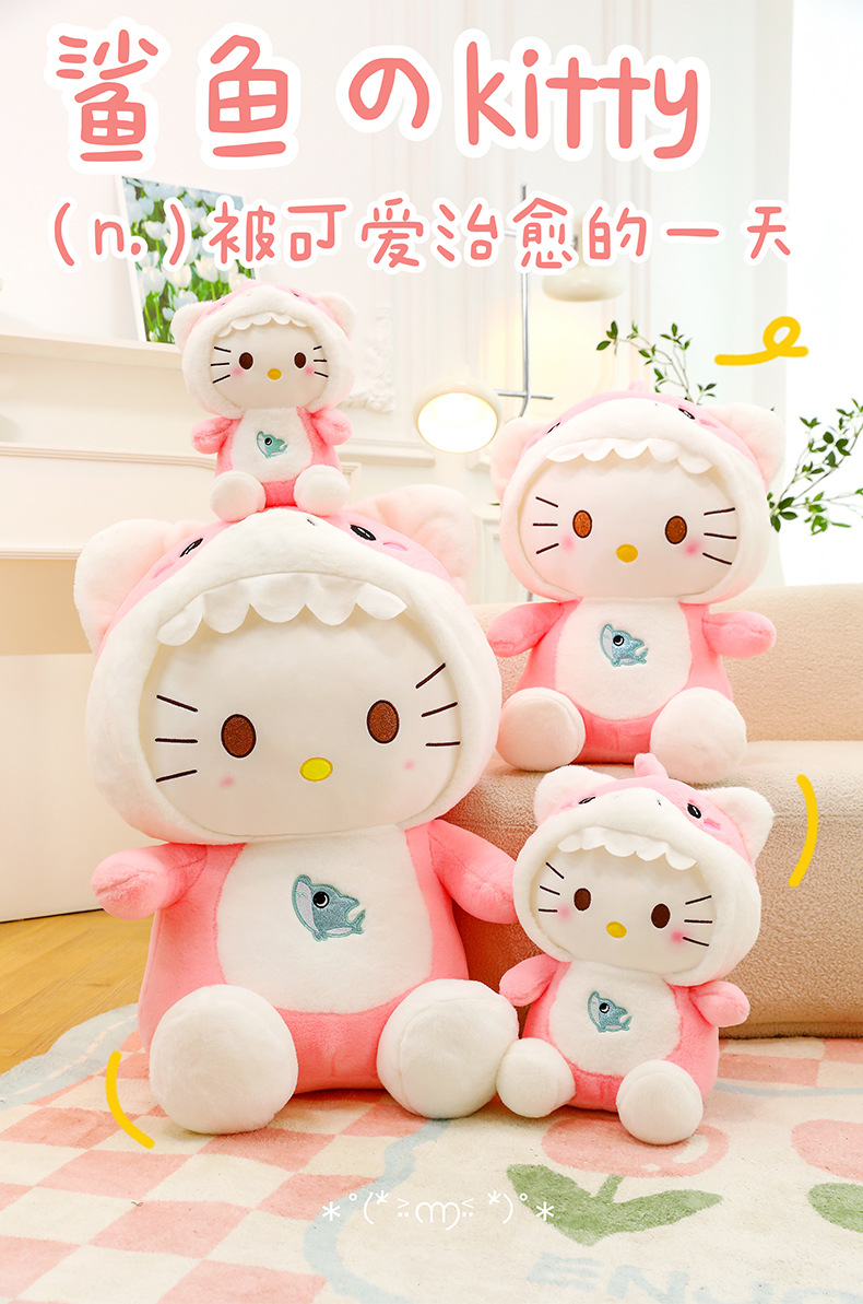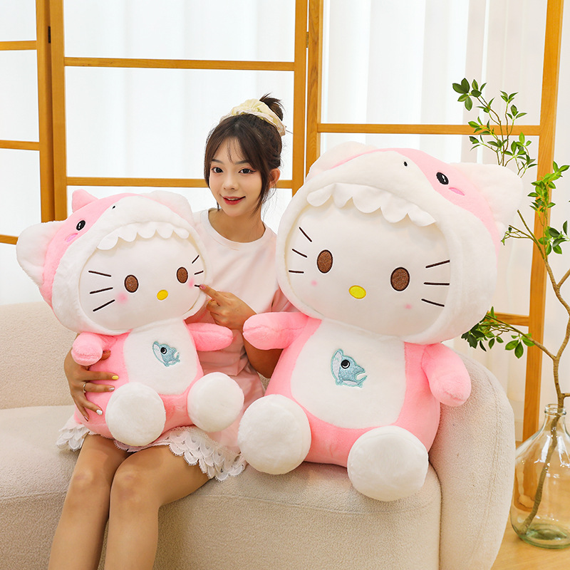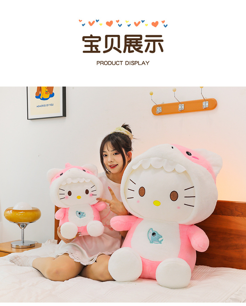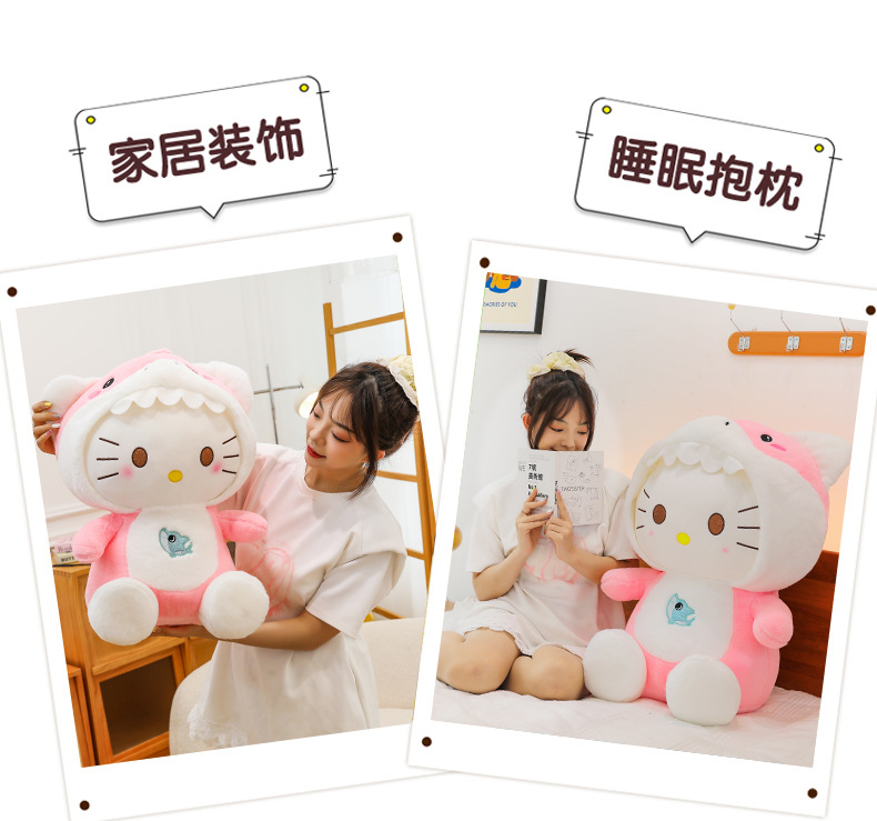 新款鲨鱼kt猫变身520送女友生日礼物毛绒玩具睡觉抱枕玩偶公仔