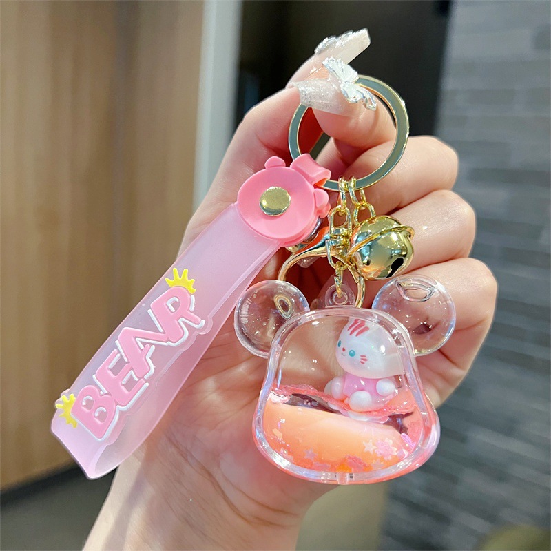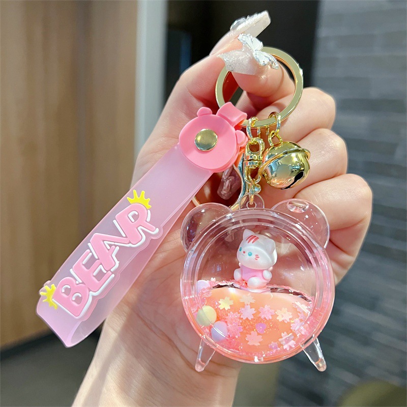 入油粉色猫咪奶茶杯流沙瓶钥匙扣可爱少女心猫咪精致液体流沙批发
