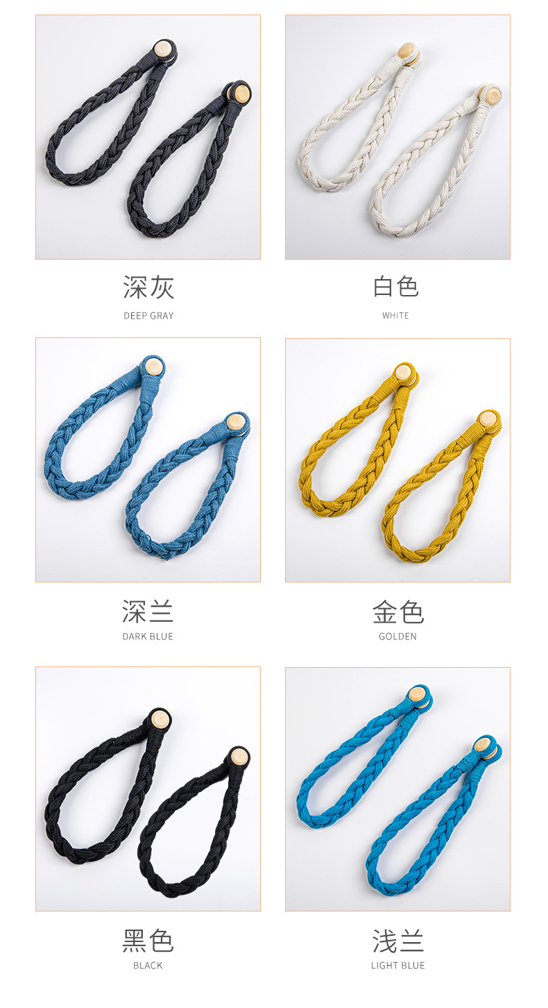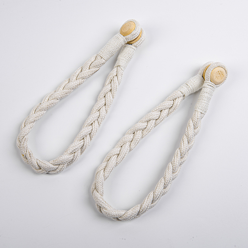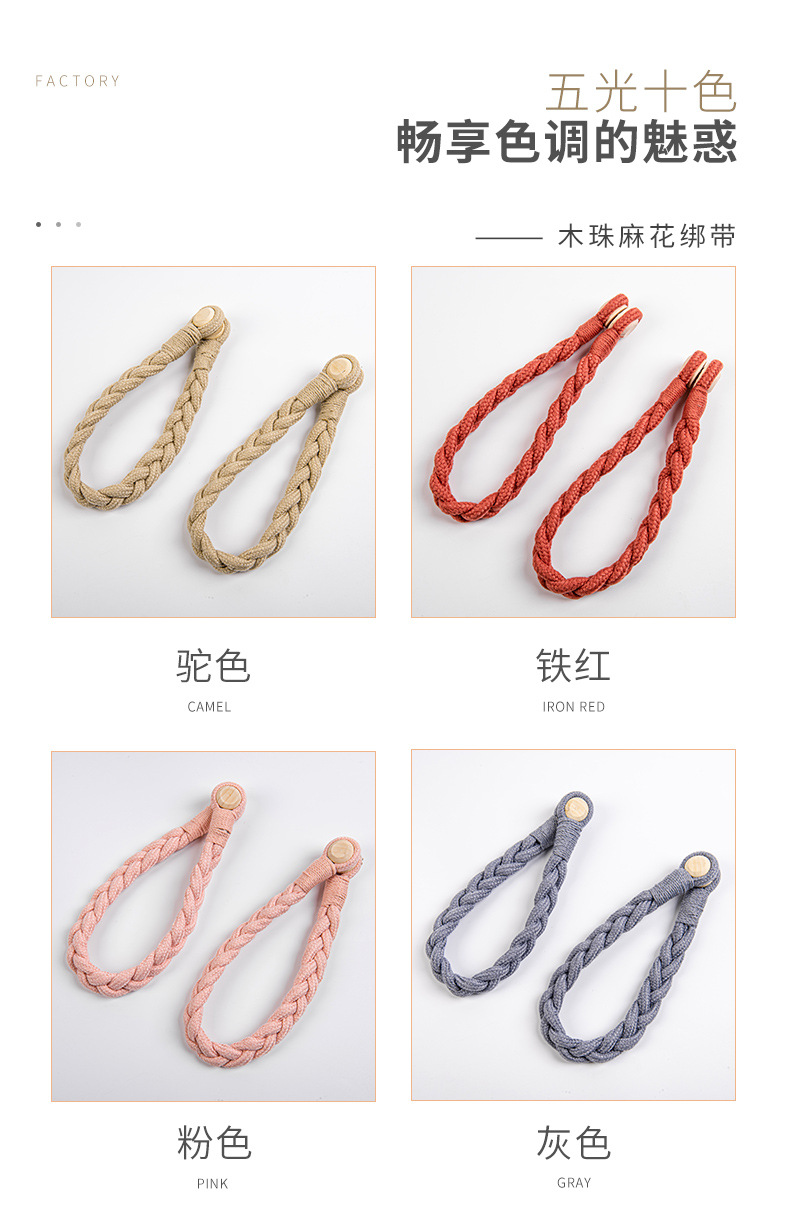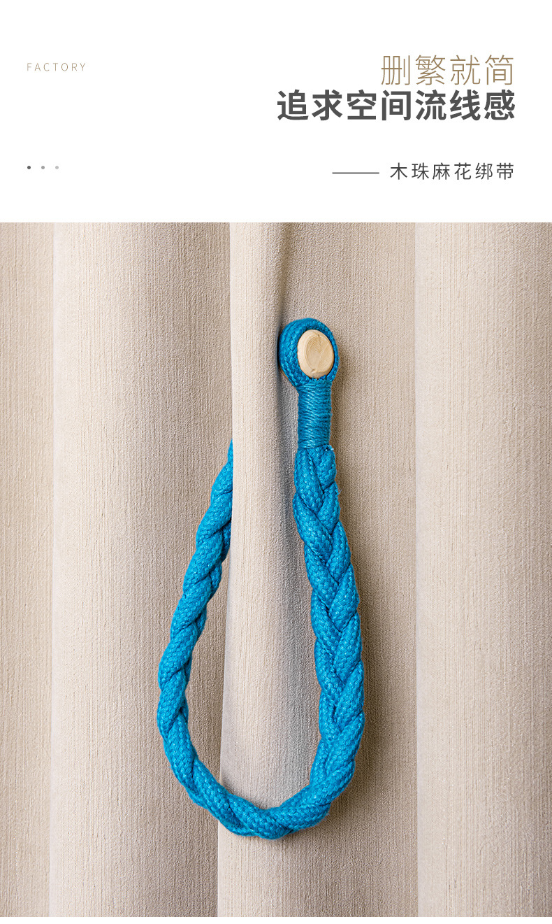 棉绳木珠麻花窗帘磁扣现货 外贸量大免打孔免安装窗帘绑带窗帘扣