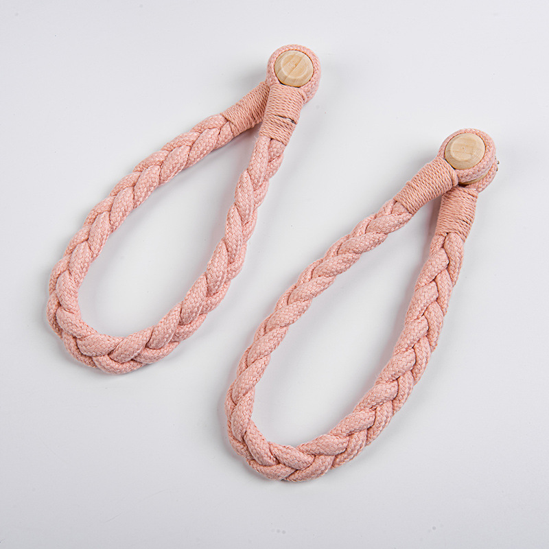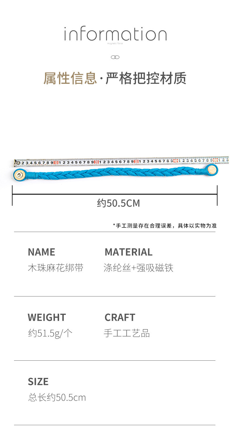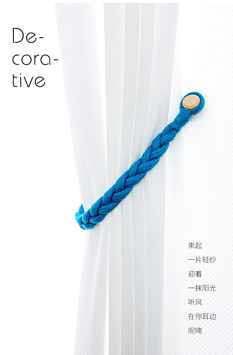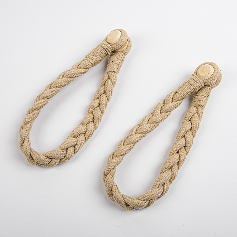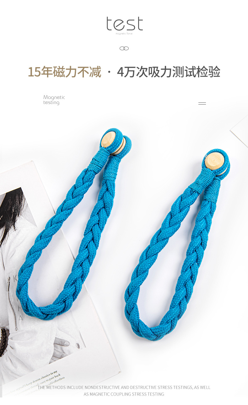 棉绳木珠麻花窗帘磁扣现货 外贸量大免打孔免安装窗帘绑带窗帘扣