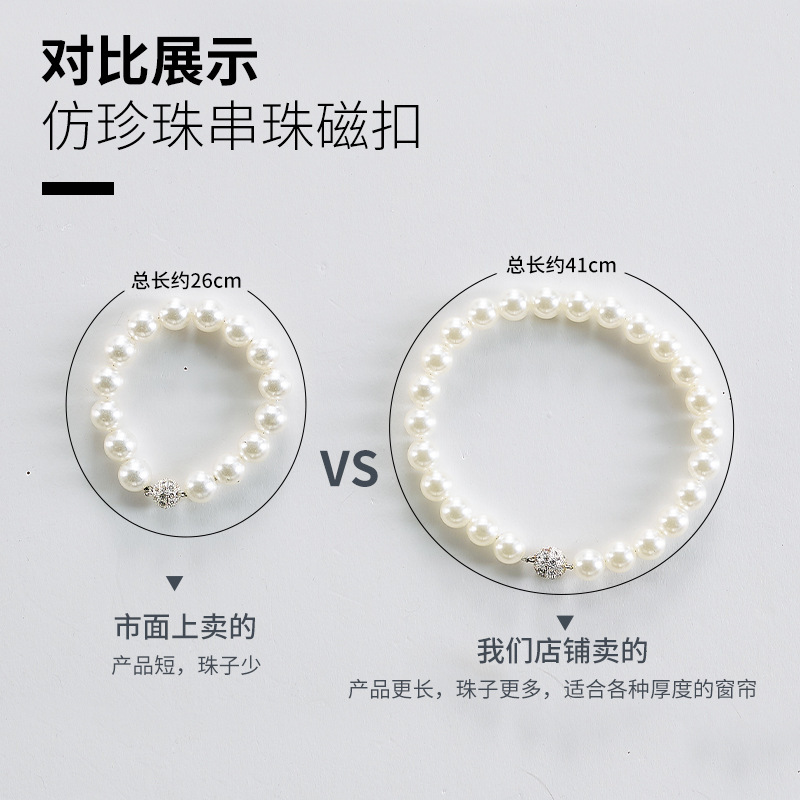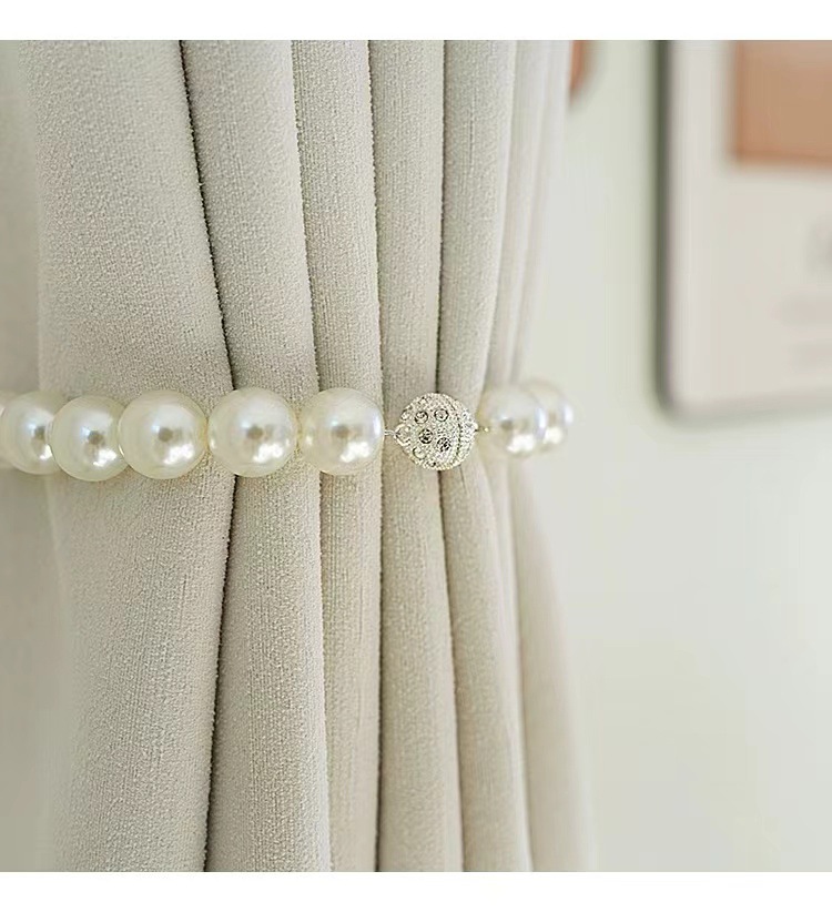 现代简约北欧风仿珍珠项链窗帘磁扣 免打孔免安装窗帘绑带窗帘扣