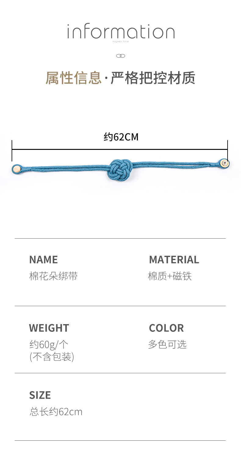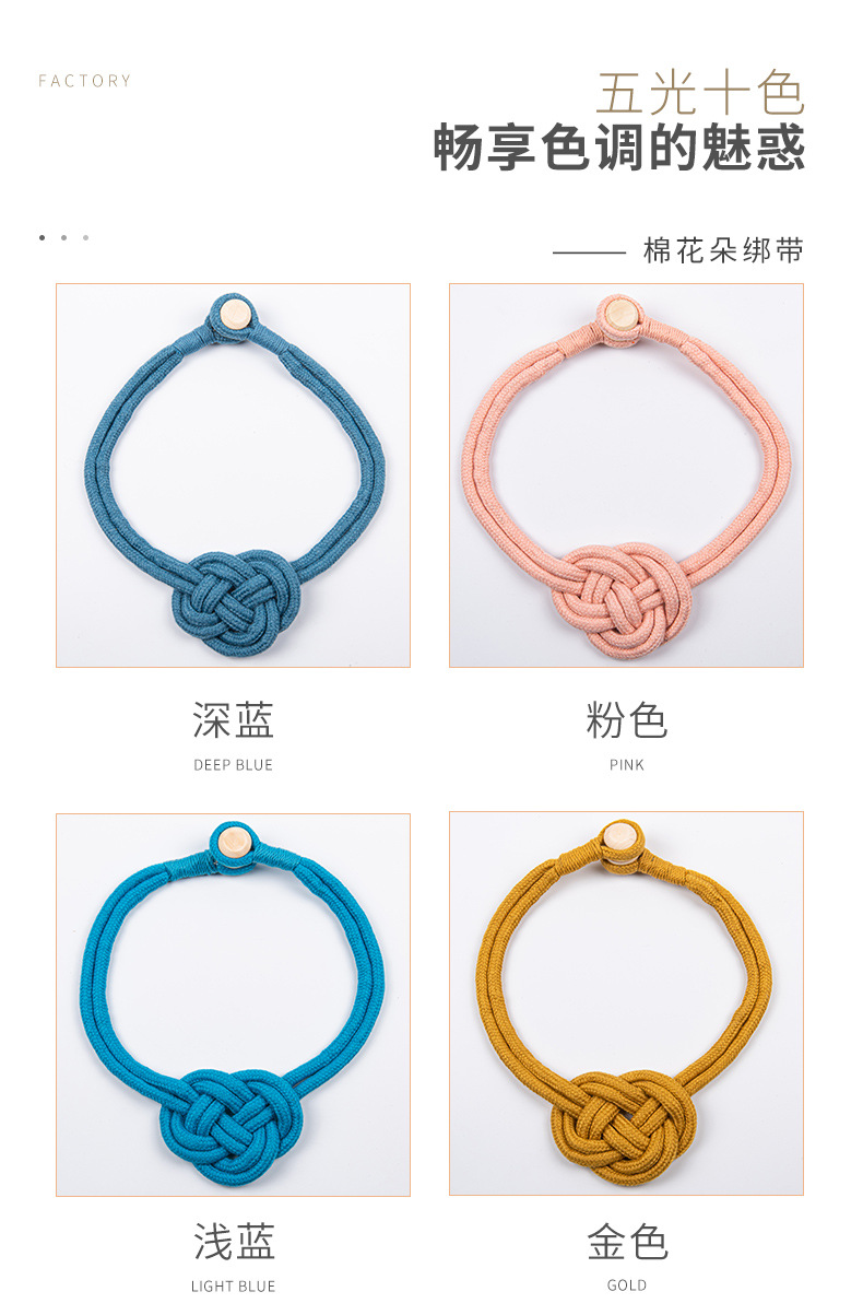 新款简约棉花朵棉绳窗帘磁扣绑带 跨境免打孔免安装窗帘磁吸扣