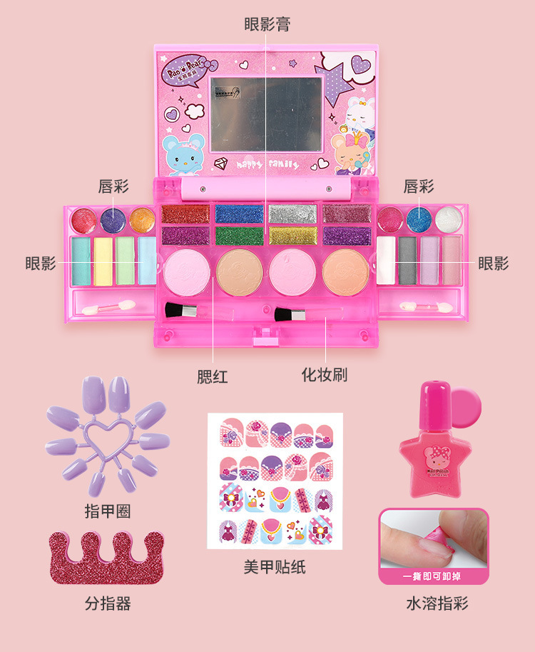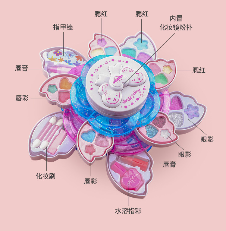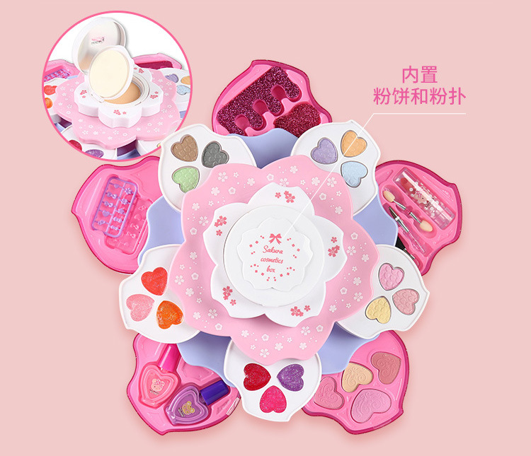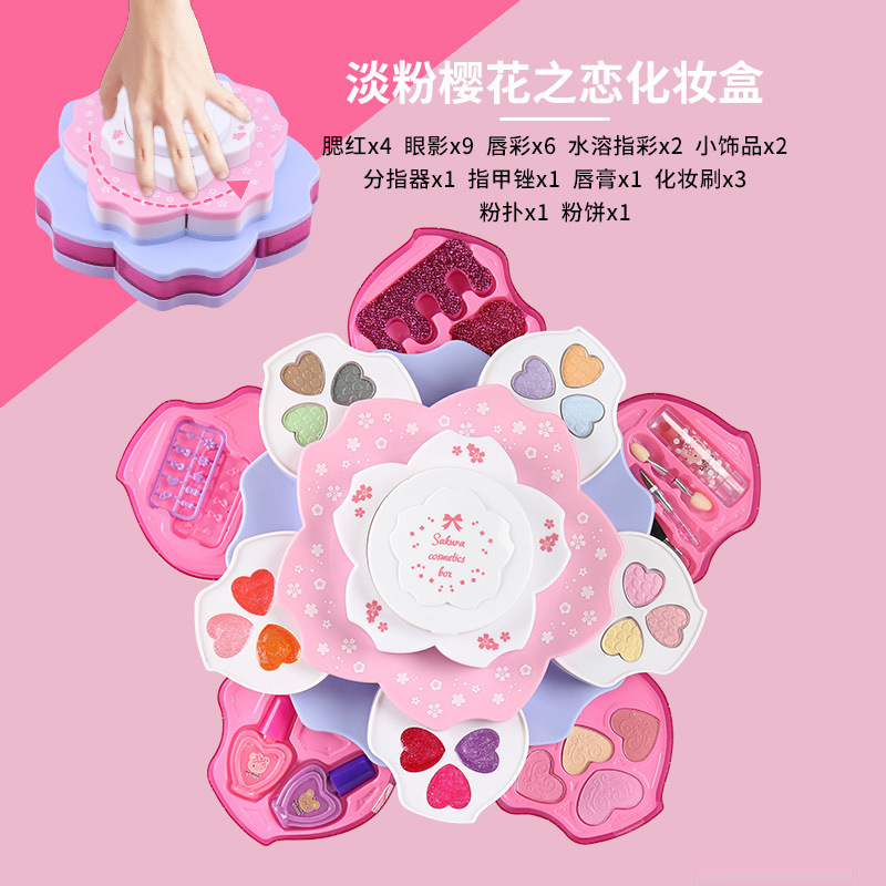 跨境女孩子化妆品旋转玩具盒手提包儿童公主彩妆过家家玩具套装