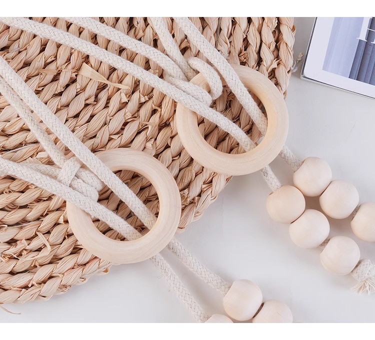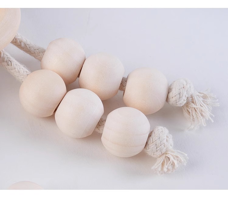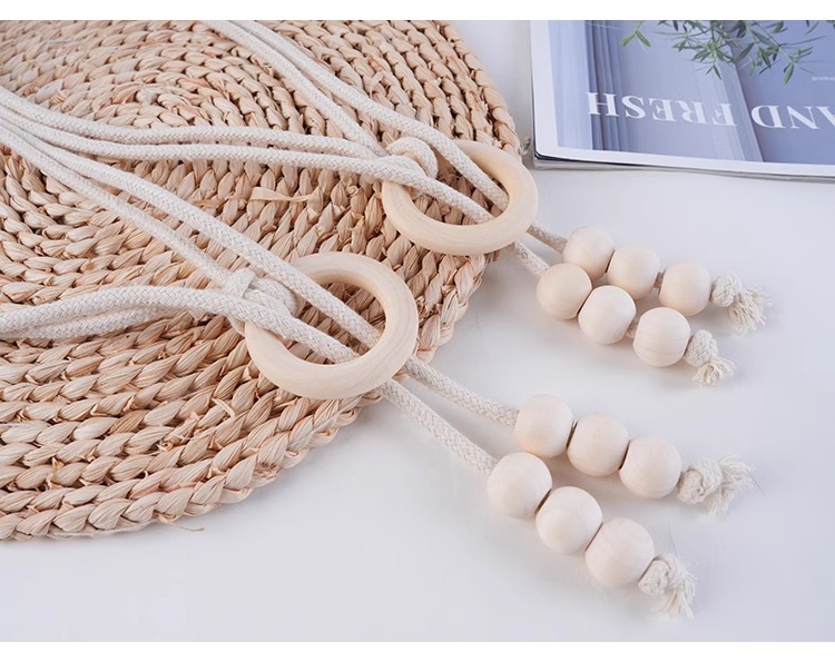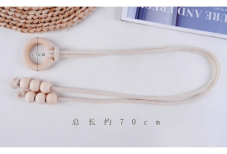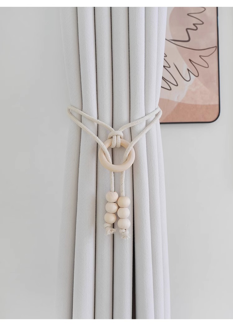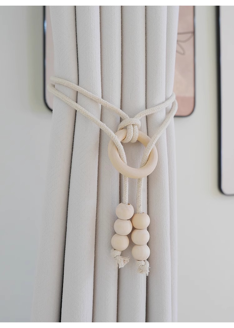 现代简约北欧风木珠串窗帘绑带现货批发 免打孔免安装窗帘绑带