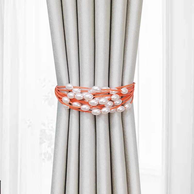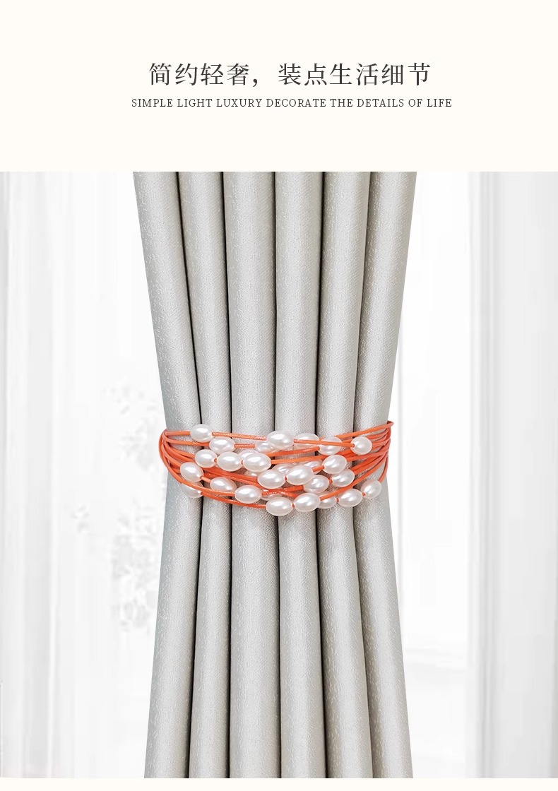 现代简约北欧风小珍珠串窗帘绑带批发 跨境窗帘绑绳配件扎带系带