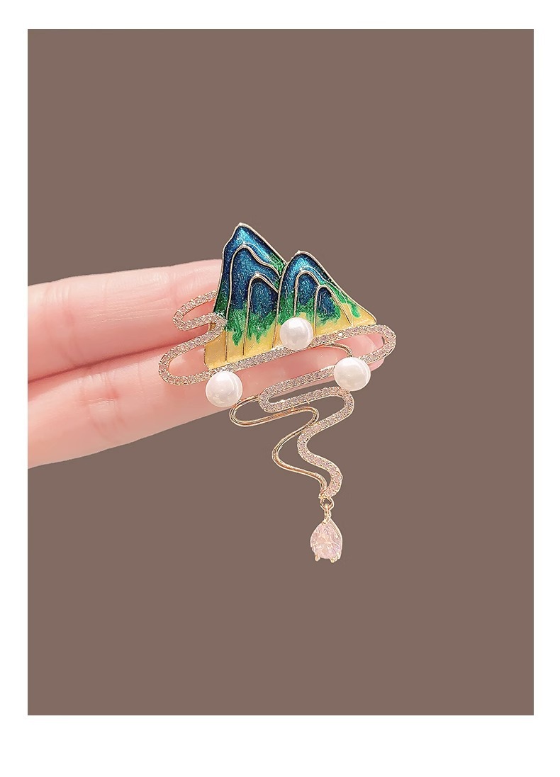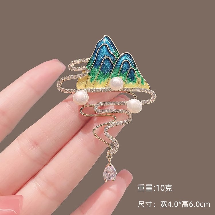 中国风潮复古名画千里江山图流苏胸针汉服旗袍压襟高级感礼品别针